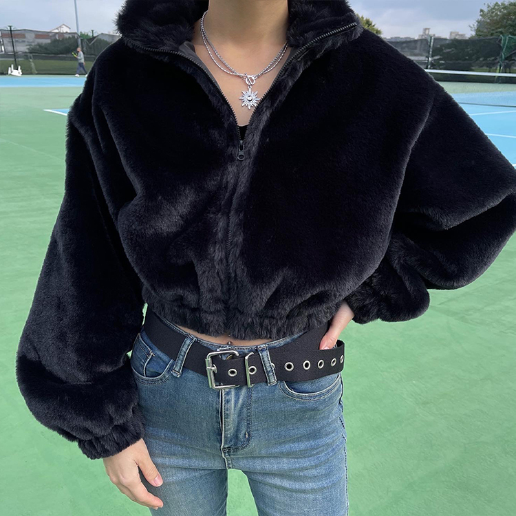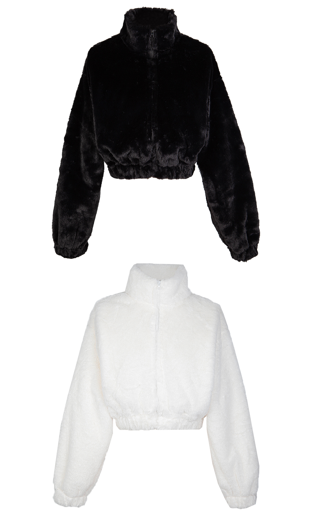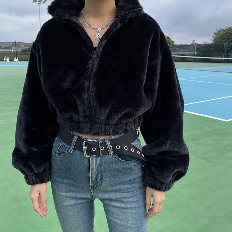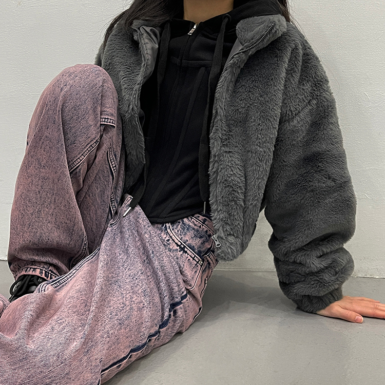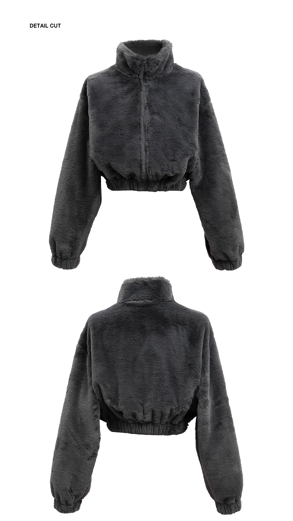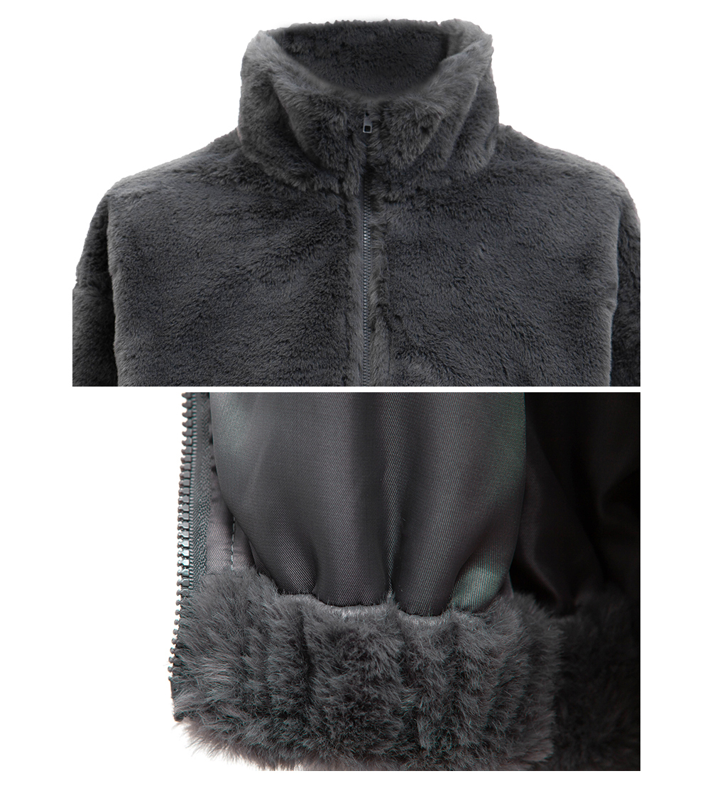 小立領,柔軟舒適毛毛觸感,正面拉鍊門襟,手袖與下擺彈性束口,短款,有內裡。