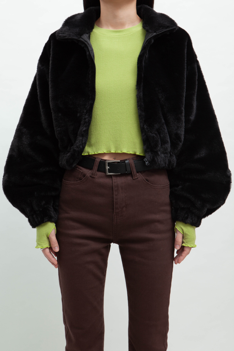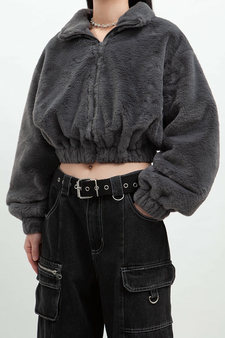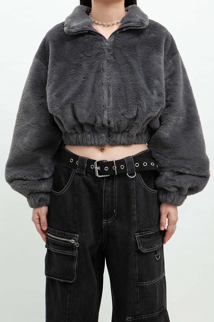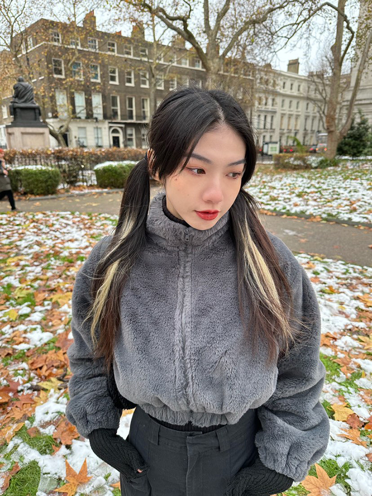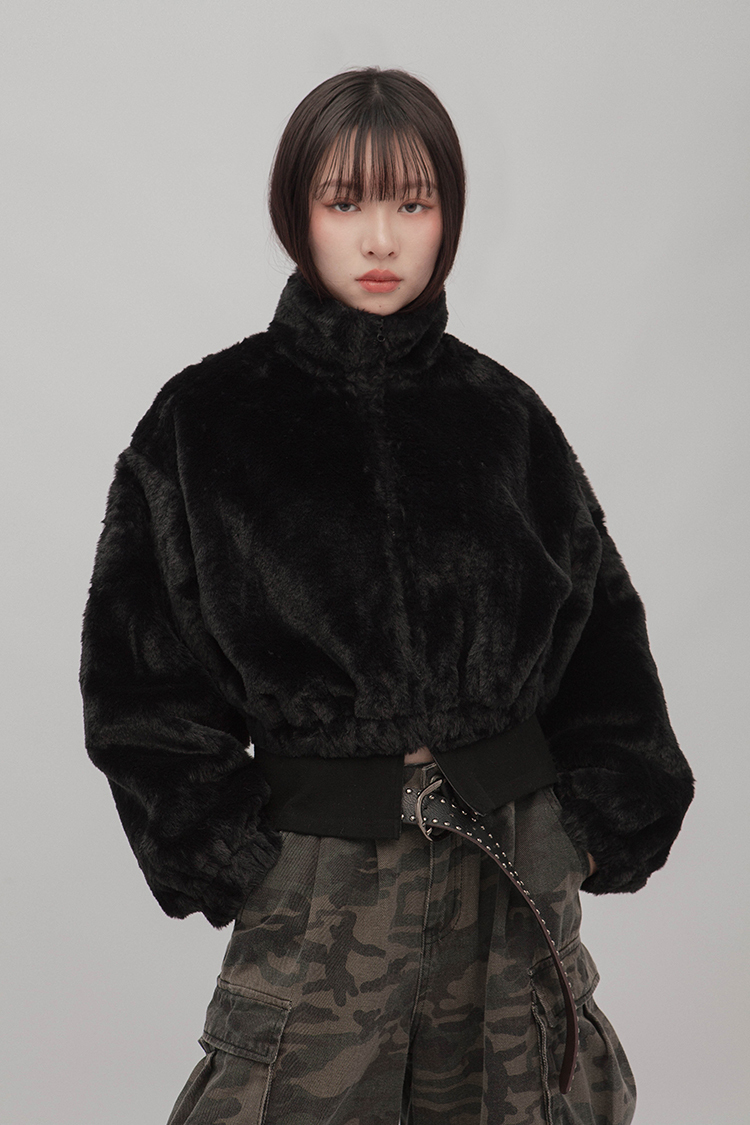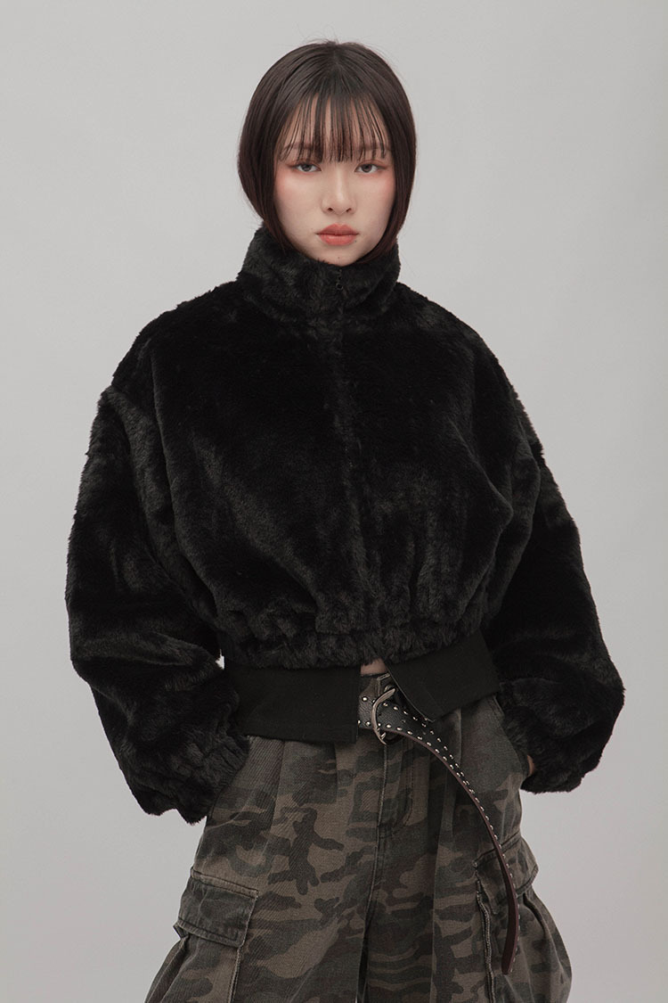 小立領,柔軟舒適毛毛觸感,正面拉鍊門襟,手袖與下擺彈性束口,短款,有內裡。