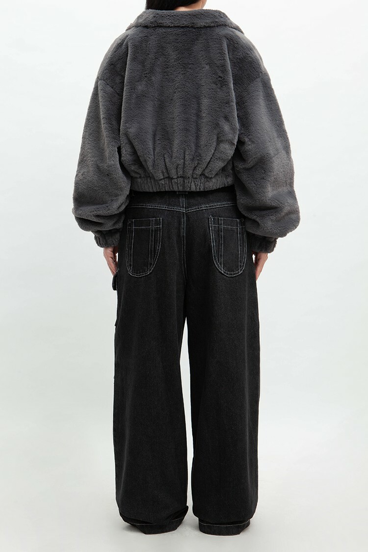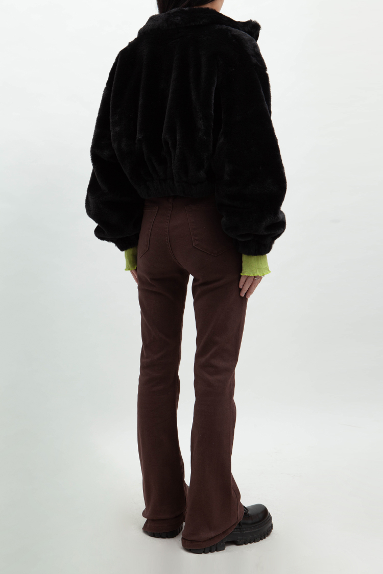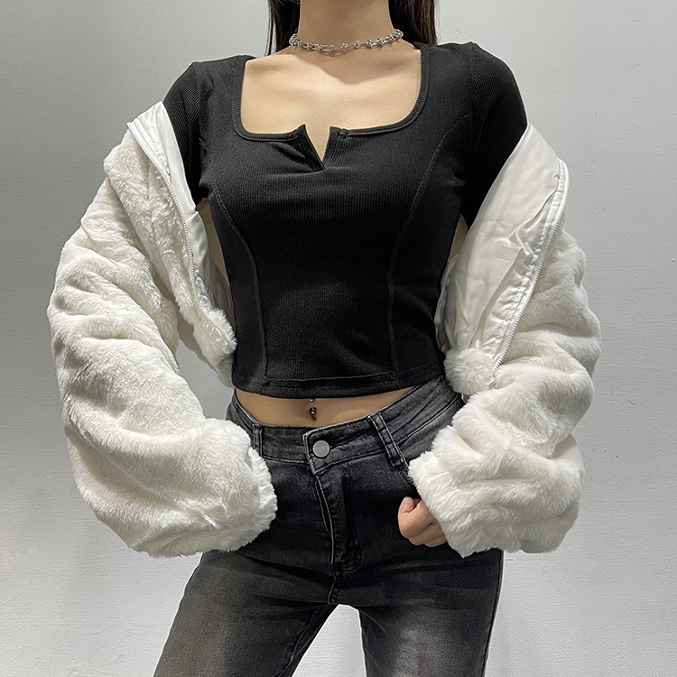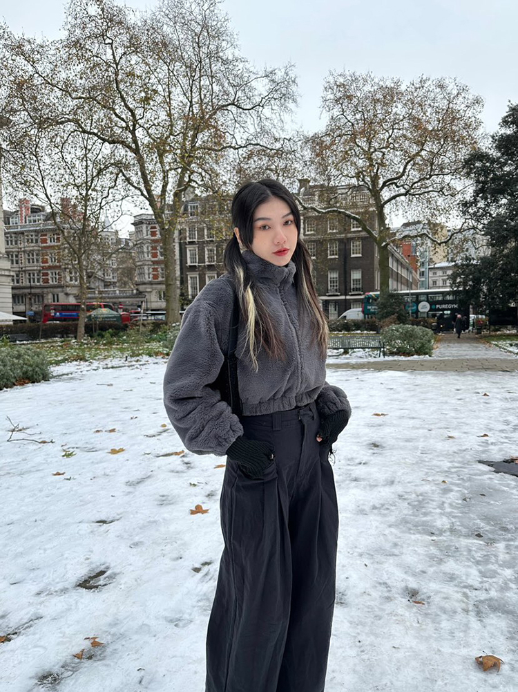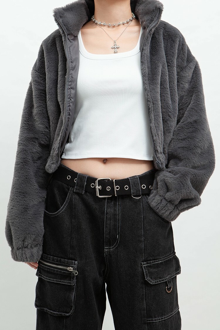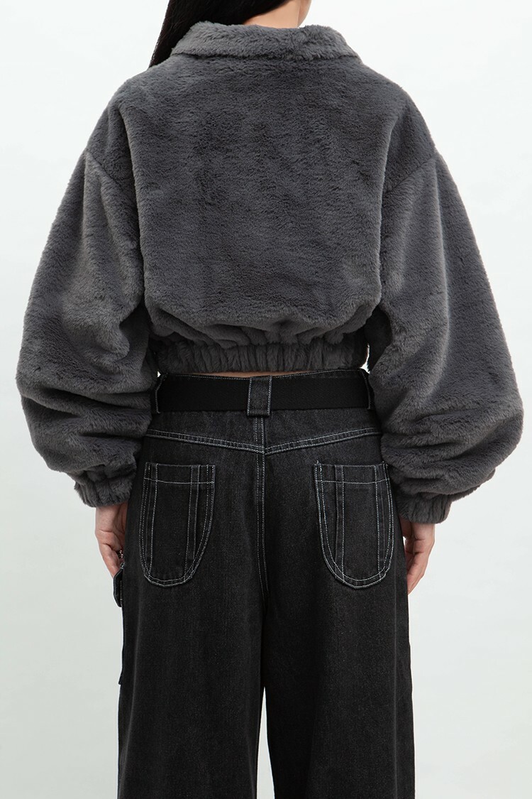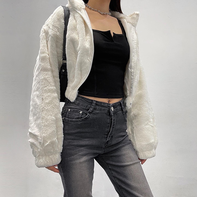 小立領,柔軟舒適毛毛觸感,正面拉鍊門襟,手袖與下擺彈性束口,短款,有內裡。