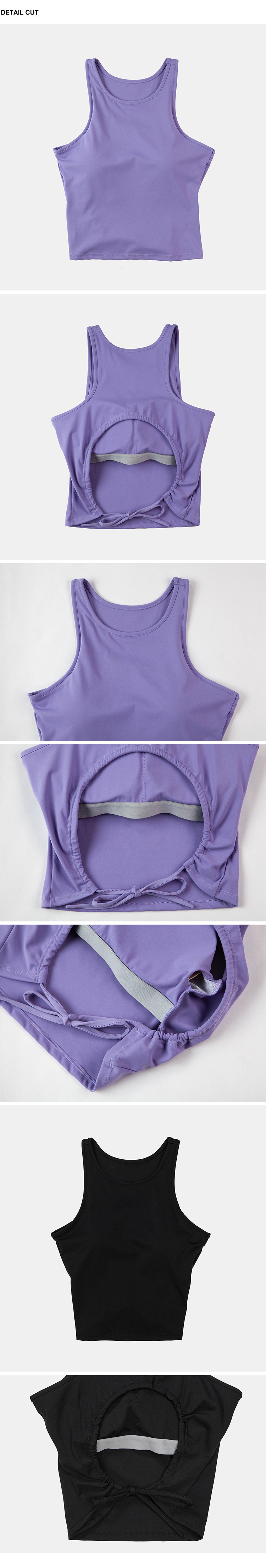 圓領,窄肩,短版露腰長度,背面具有引人注目的綁繩設計,展現美背,可以根據個人需要進行調整,為你的穿著增添個性化風格,可拆胸墊,不論高強度的運動,或是日常穿搭都能輕鬆駕馭,絕對是理想的選擇。