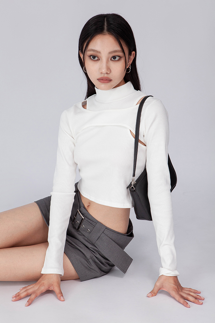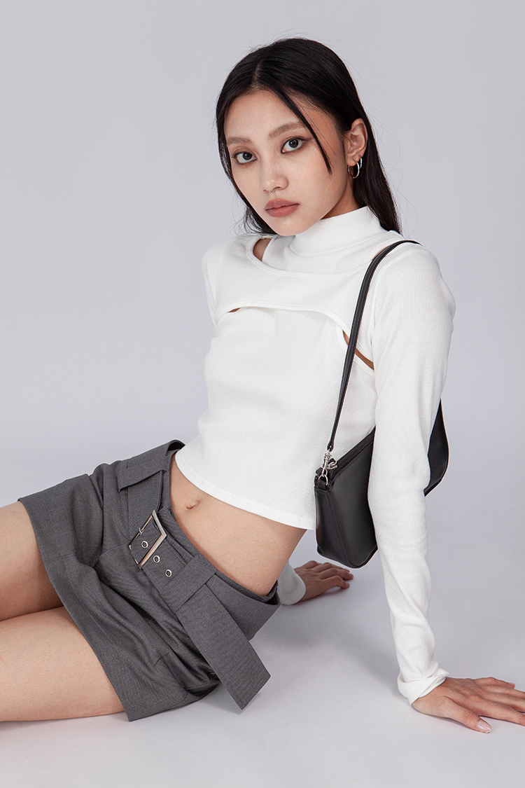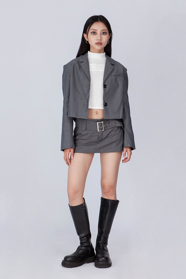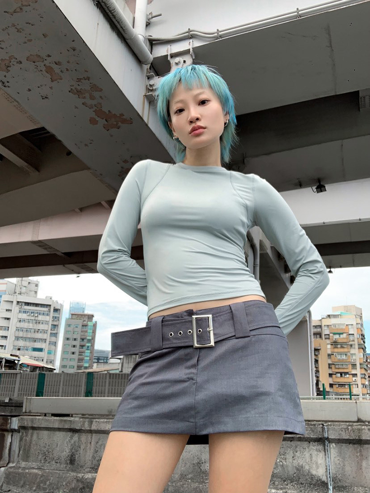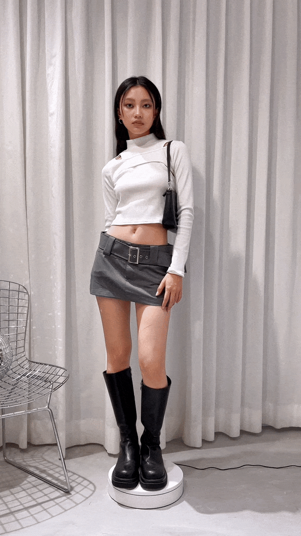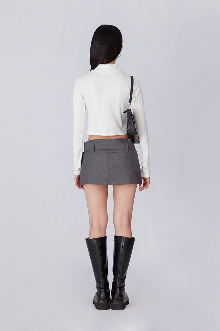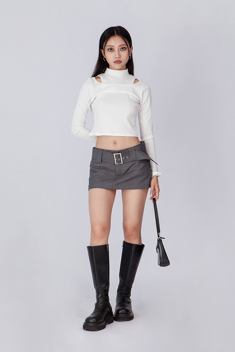簡約低腰迷你裙,拉鍊閉合,寬腰帶環設計,附腰帶、安全褲,微A字廓形,工作再忙,也要時髦日常。