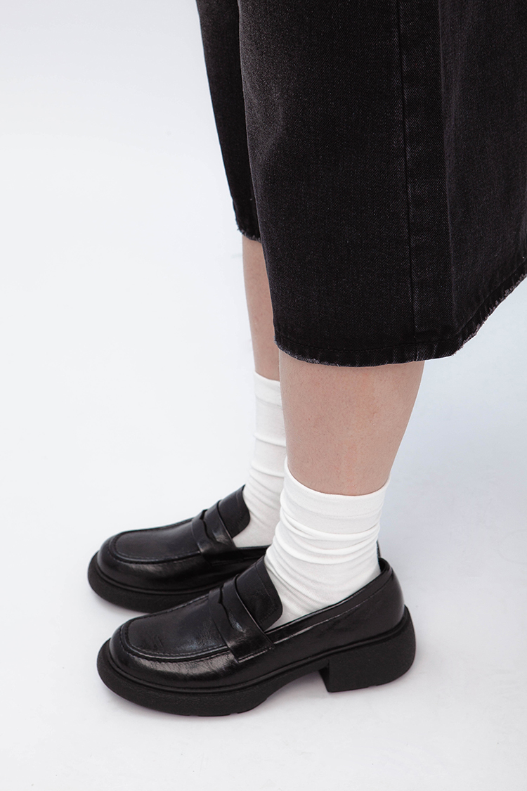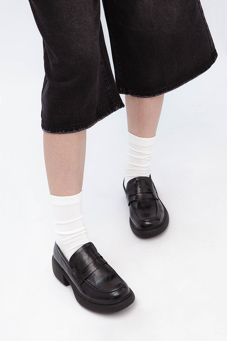 復古厚底樂福鞋,以簡約圓頭設計與低跟厚底打造時髦舒適的雙重享受。質感皮革融入現代風格,隨性搭配牛仔褲、裙裝或休閒褲,輕鬆駕馭。防滑鞋底,穩定支撐,細膩的皮革紋理,低調中流露出細節質感,必備的經典單品。