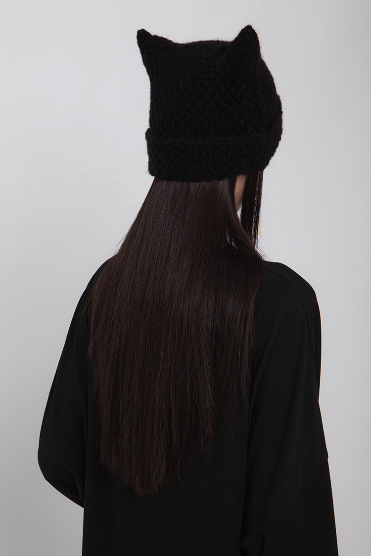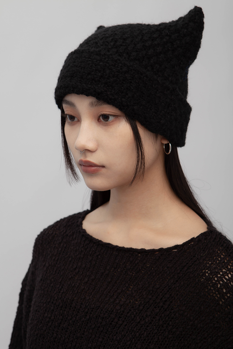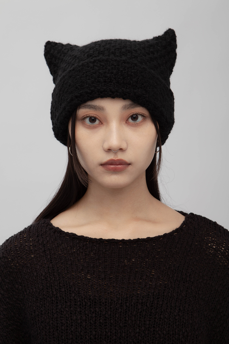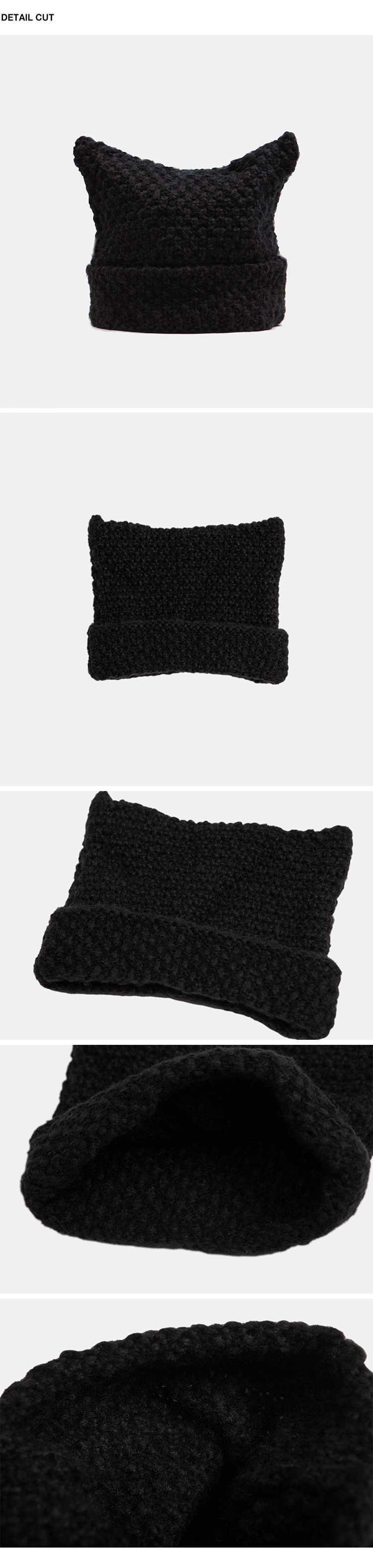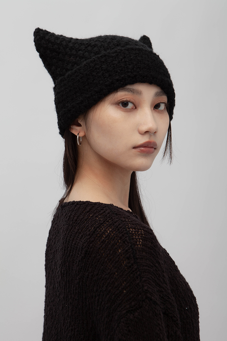 粗毛線針織帽,貓耳朵輪廓,翻邊帽沿,又暖又萌。