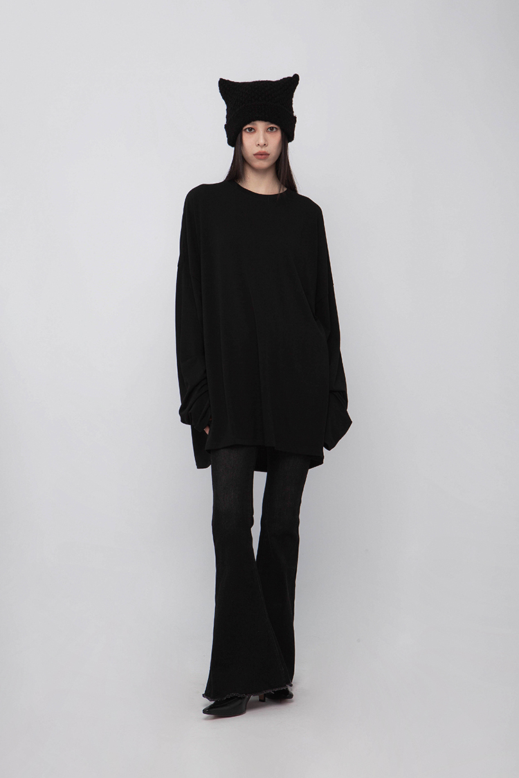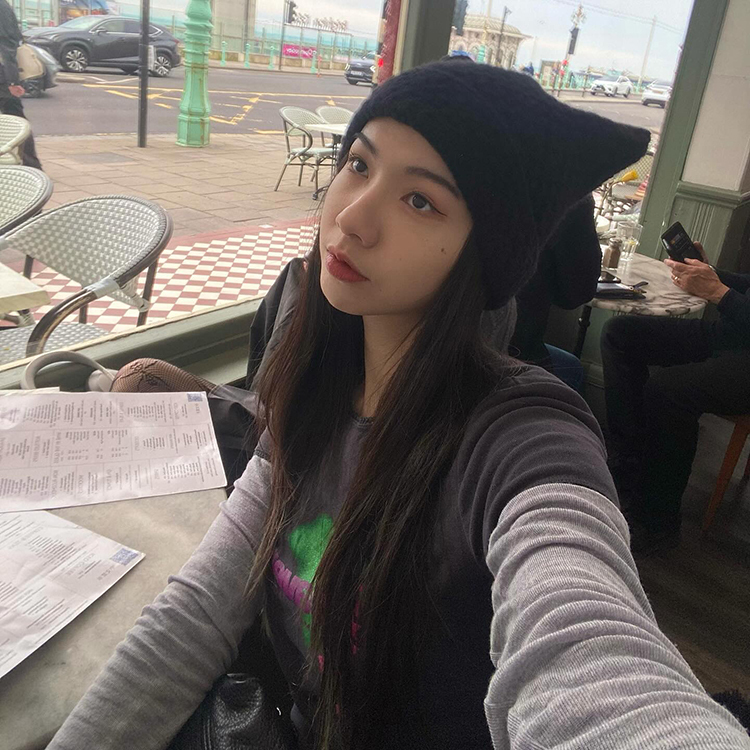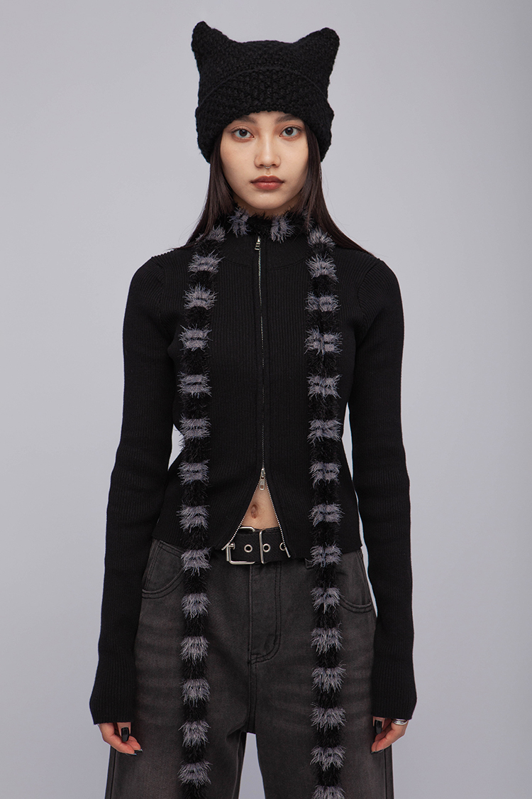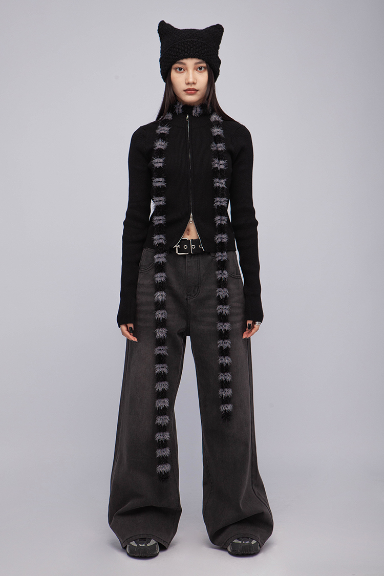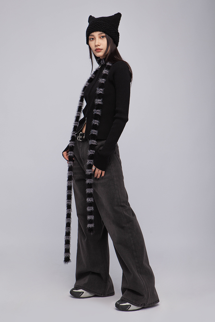 粗毛線針織帽,貓耳朵輪廓,翻邊帽沿,又暖又萌。