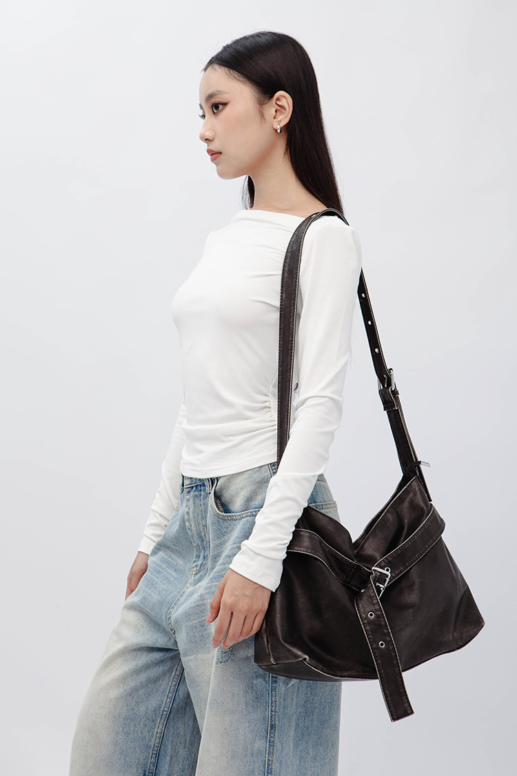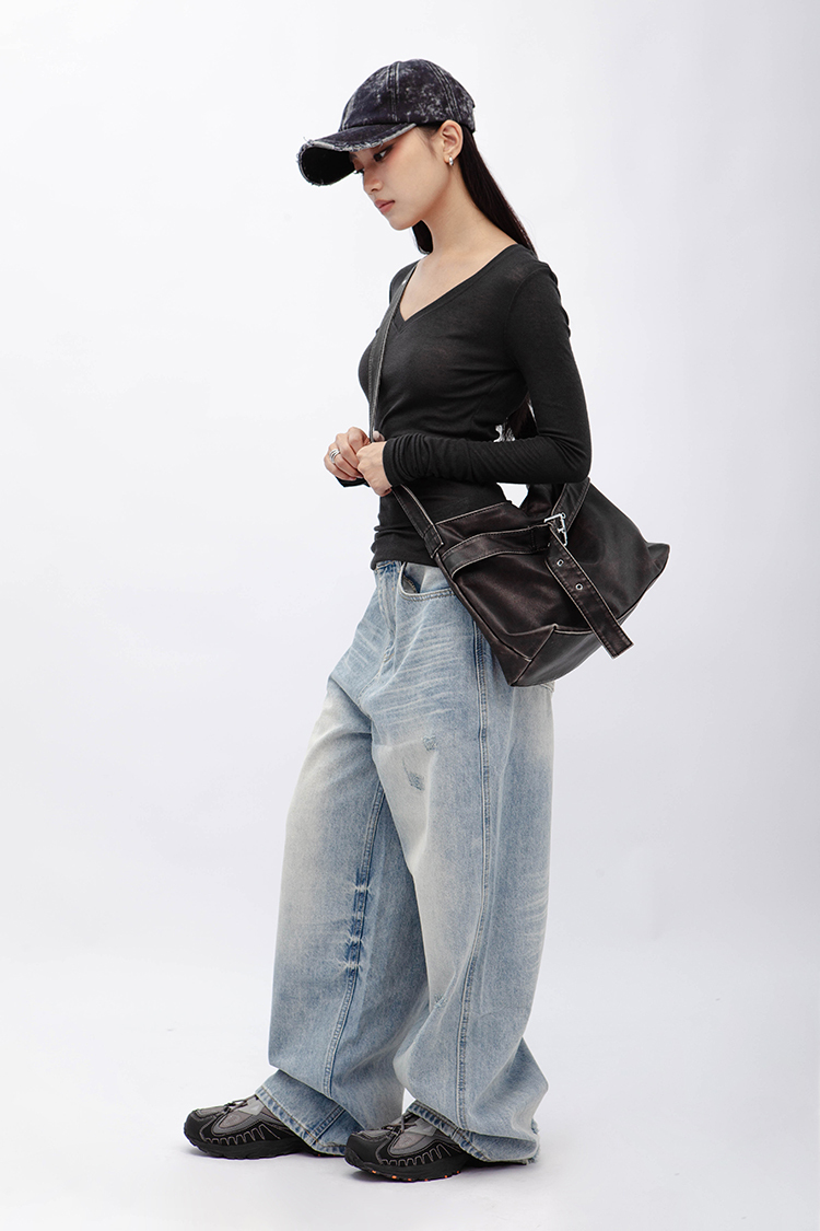 粒面皮革紋理,輕微做舊處理,包體內部拉鍊貼袋,肩帶可調整孔眼細節,拉鍊開合,大容量可放入ipad、A4、錢包、化妝品 等物品,包底硬挺,背面拉鍊袋,單肩/側背,細緻軟料觸感,獨具個性。