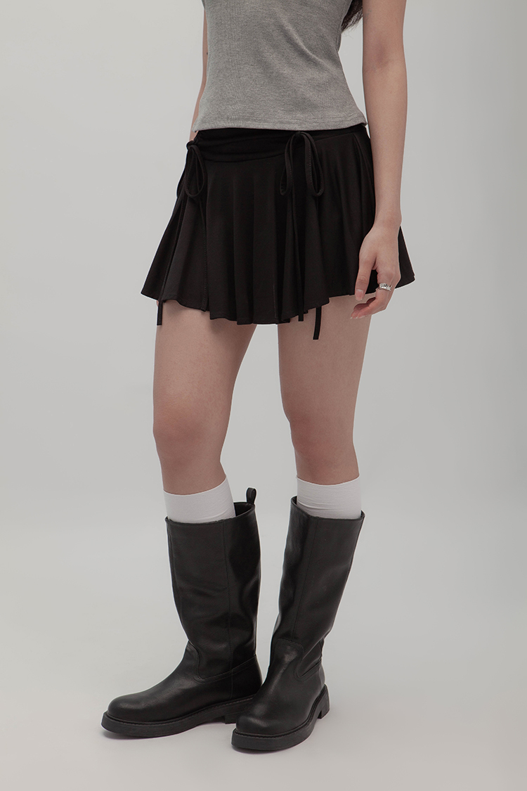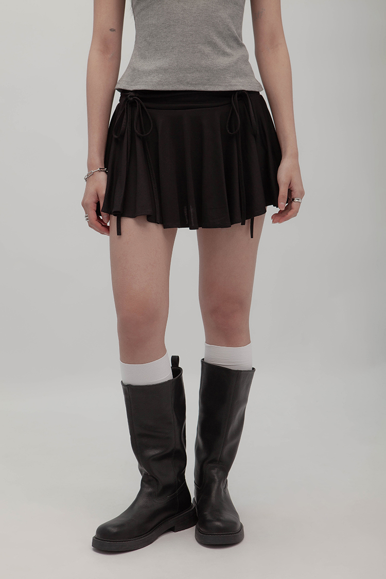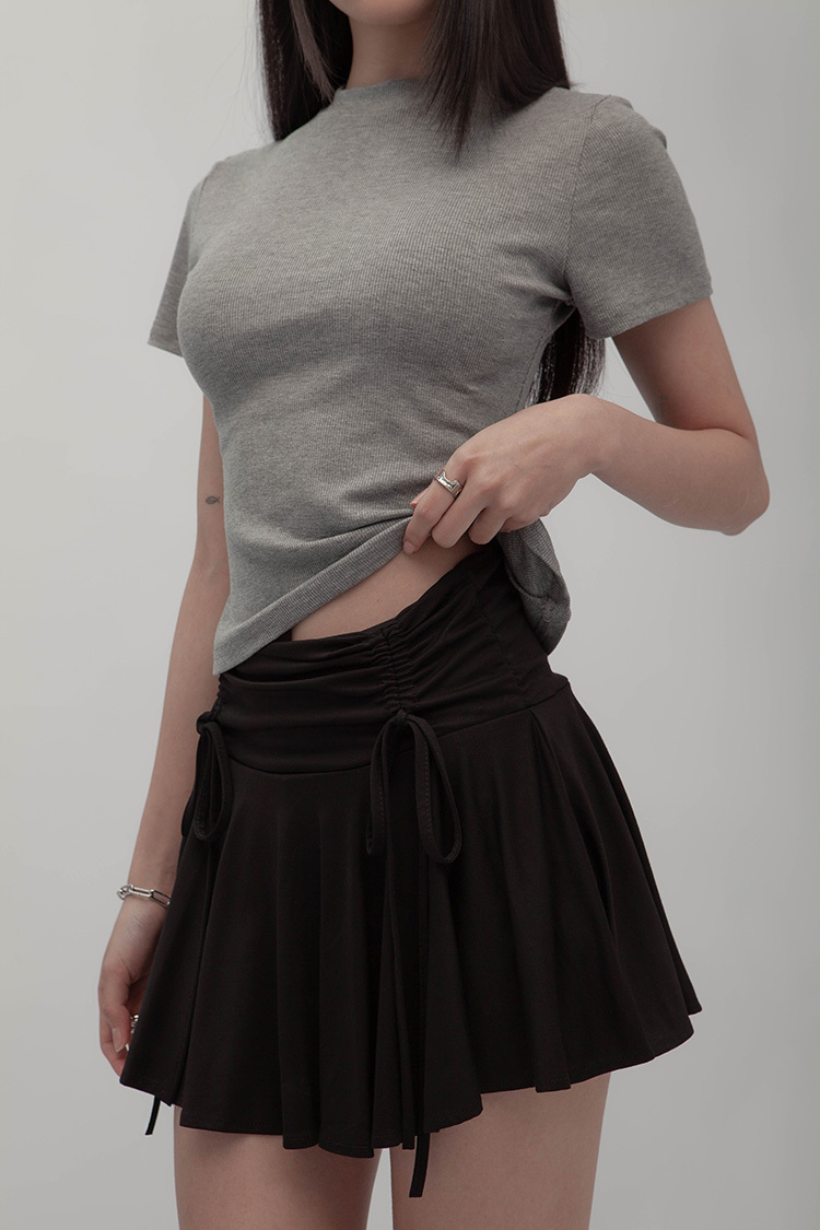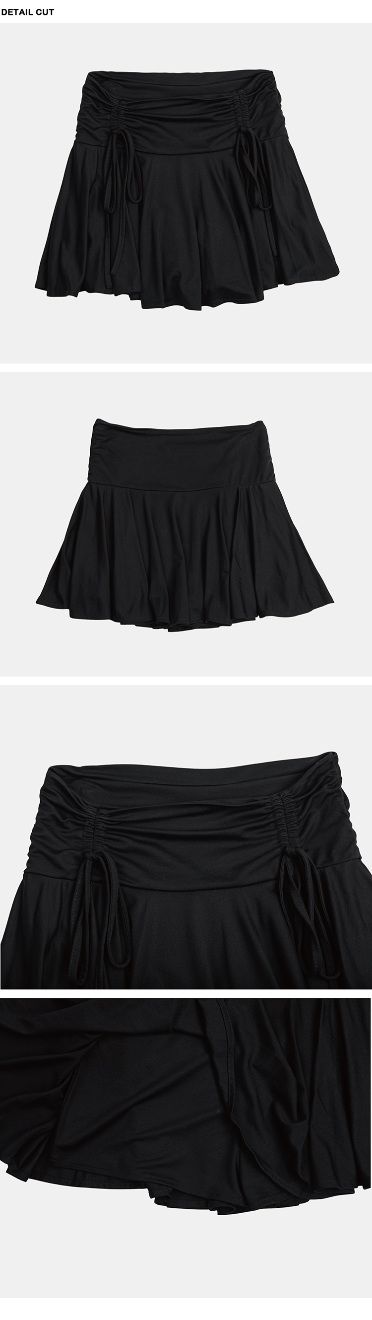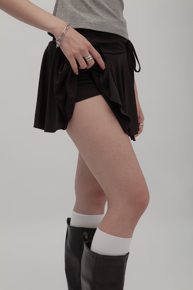 甜辣感焦點單品,設計聚焦在褲頭的褶皺綁繩細節,兼具實穿性與視覺亮點。高腰剪裁搭配自然垂墜的 A 字裙擺,修飾腰線與腿部比例,材質親膚柔軟,穿著舒適涼爽,內附安全褲設計,無需額外搭配也能安心自在活動,是春夏季節不可缺的。