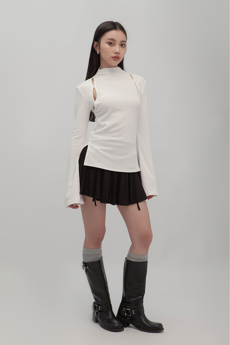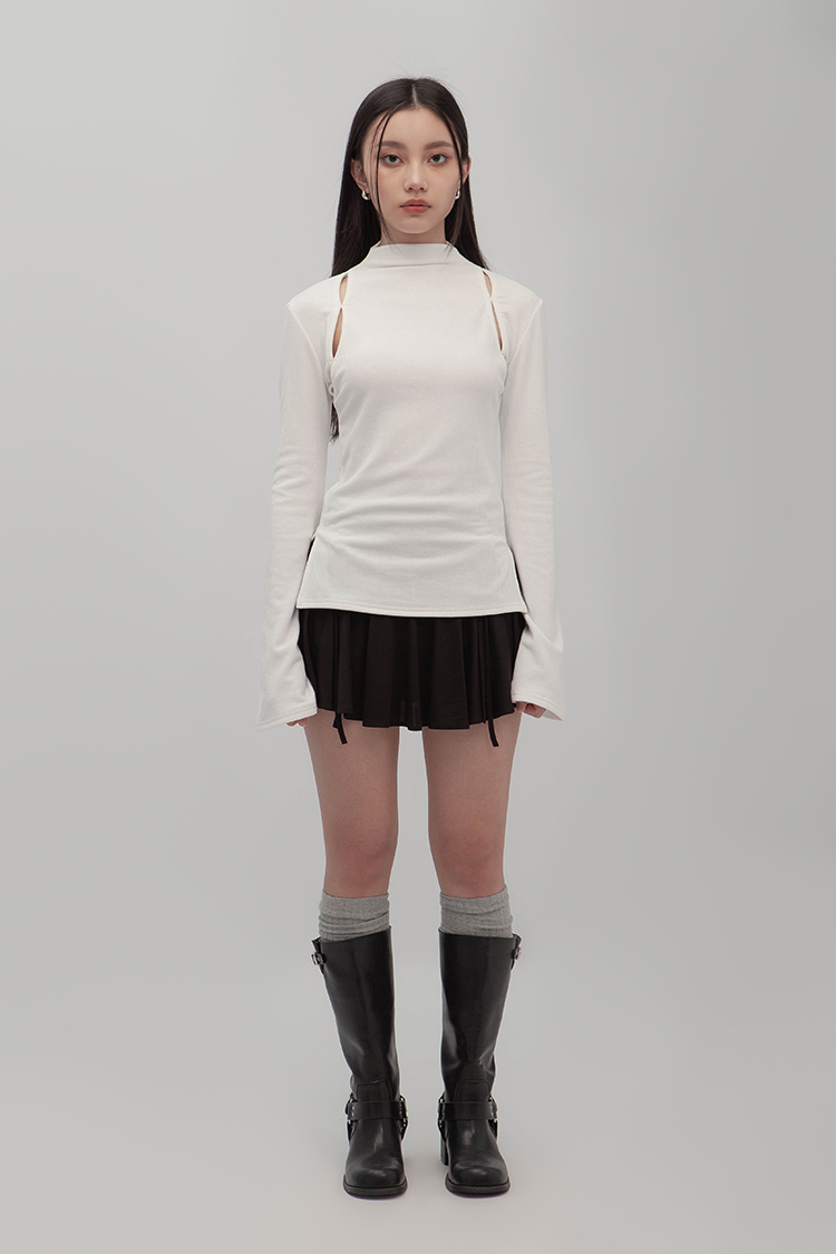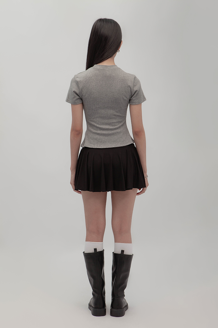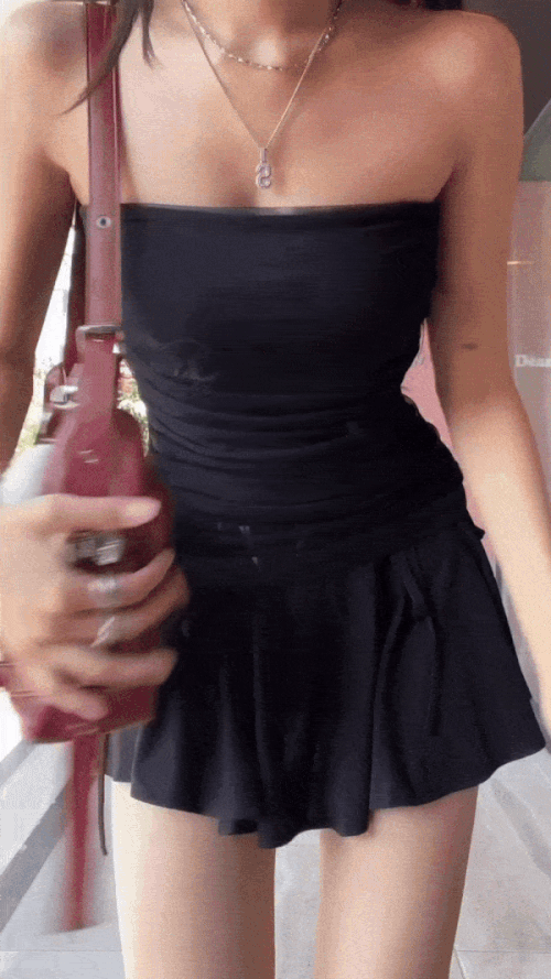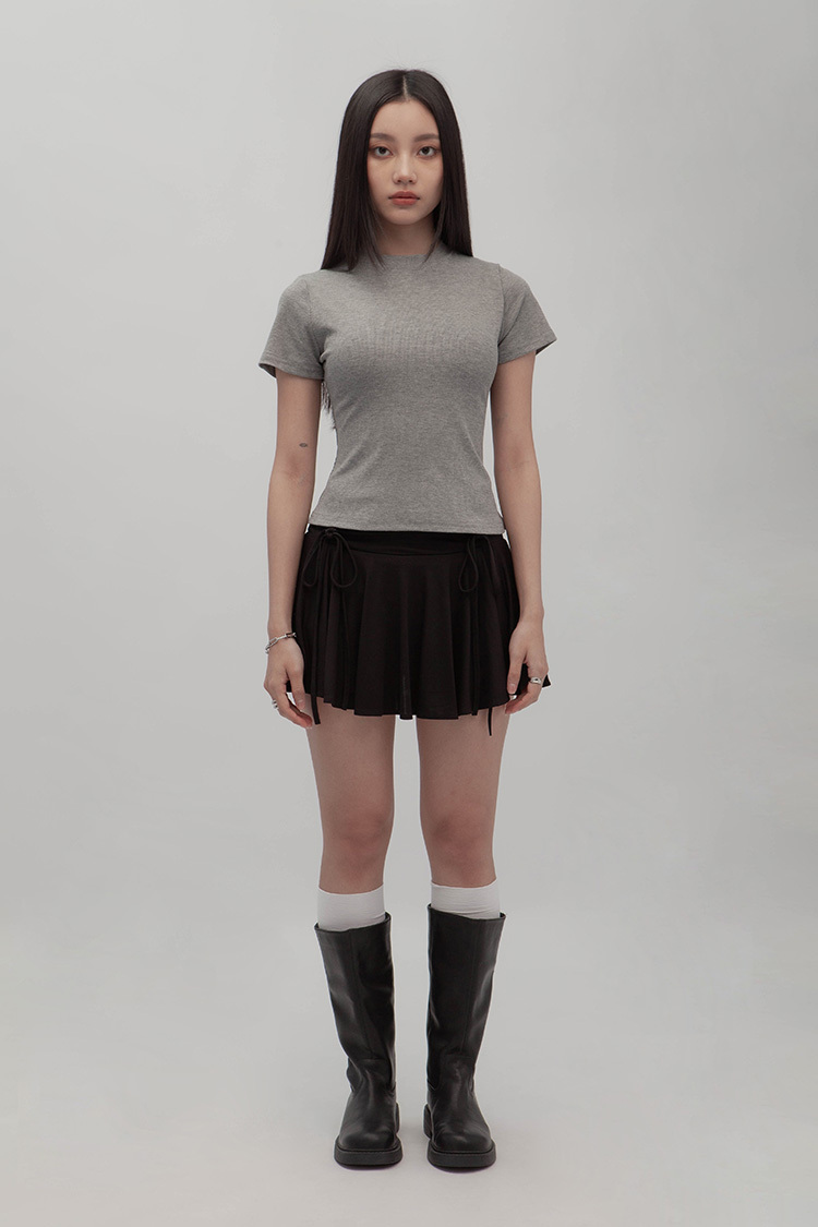 甜辣感焦點單品,設計聚焦在褲頭的褶皺綁繩細節,兼具實穿性與視覺亮點。高腰剪裁搭配自然垂墜的 A 字裙擺,修飾腰線與腿部比例,材質親膚柔軟,穿著舒適涼爽,內附安全褲設計,無需額外搭配也能安心自在活動,是春夏季節不可缺的。