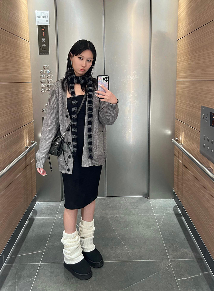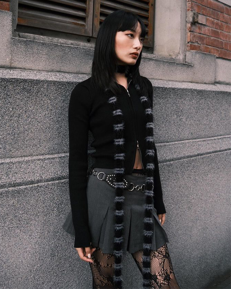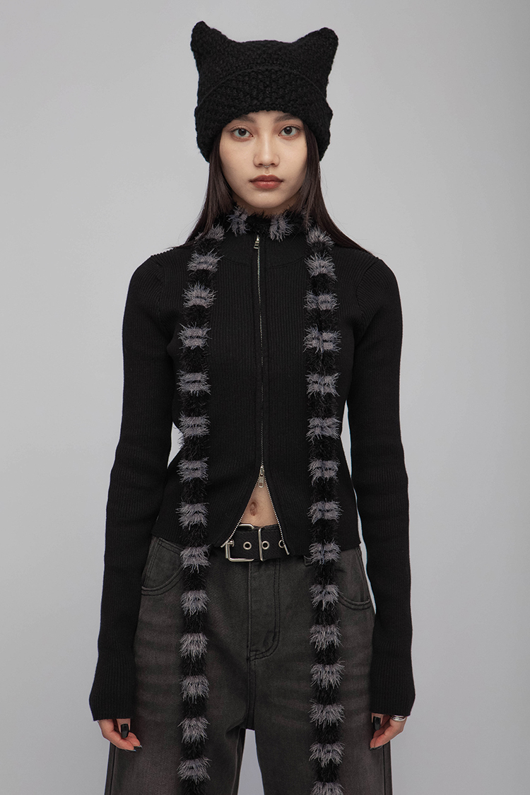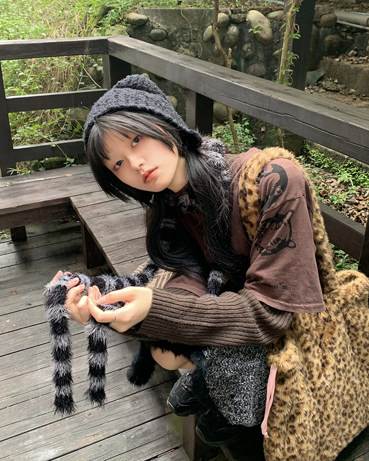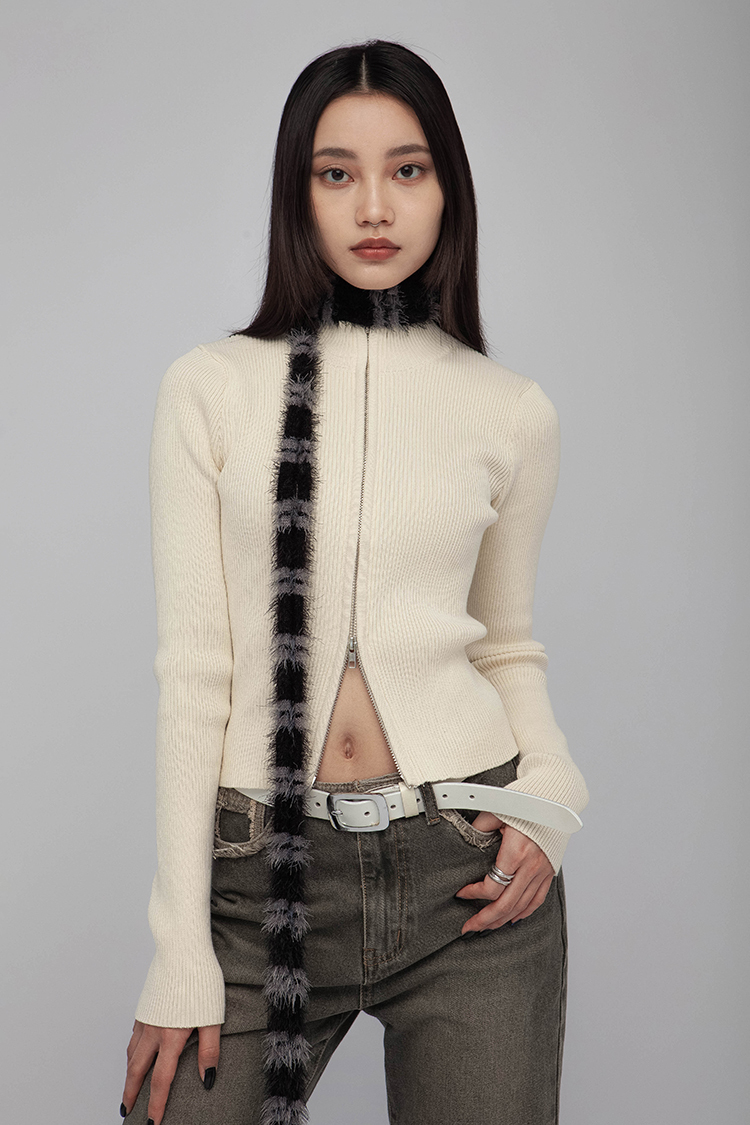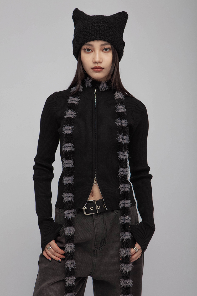 毛絨加長圍巾,柔軟羽毛紗製成,獨特細窄與加長的設計,巧妙地以黑色為底,搭配著銀色環形圖案,帶來時髦與溫暖的完美結合。