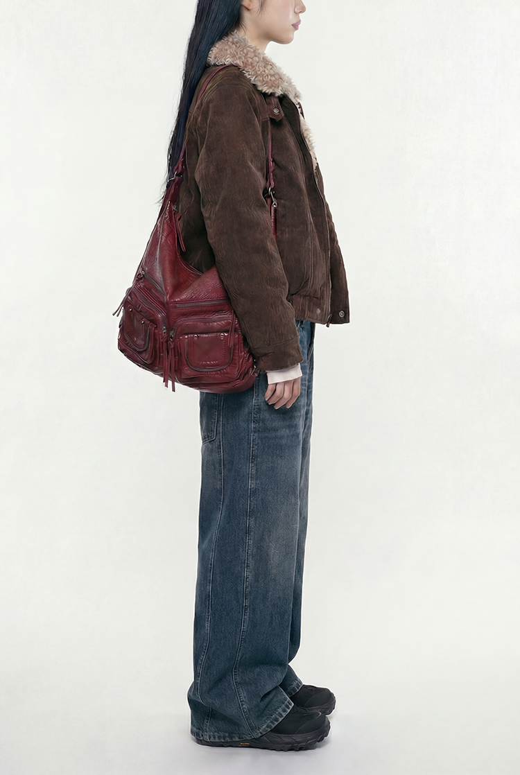 粒面紋理皮革,多個前口袋與拉鍊設計,包體主要有兩個大的夾層,內附拉鍊袋與貼袋,肩帶可調整五金扣,大容量可輕鬆放入MacBook Air 13 吋、筆電14吋、A4、ipad 等物品,雙肩/單肩/側背,多種背法,細緻軟料觸感,獨具個性。