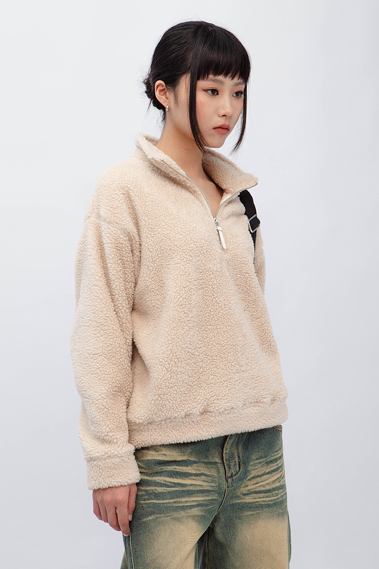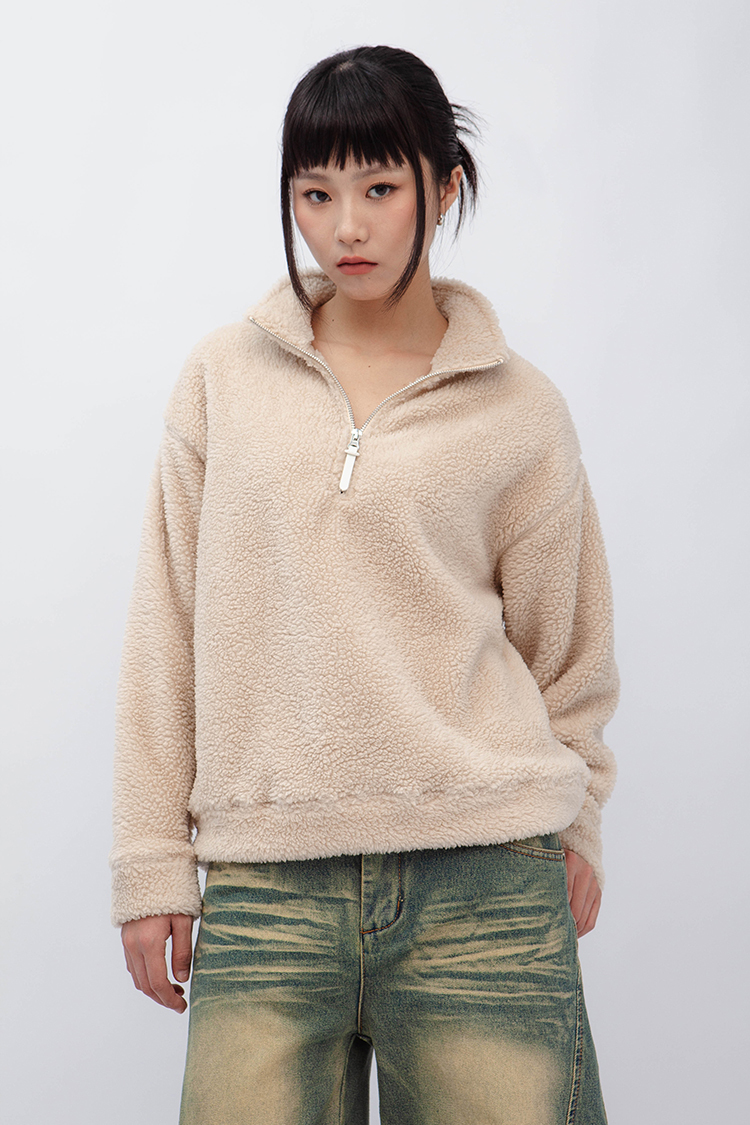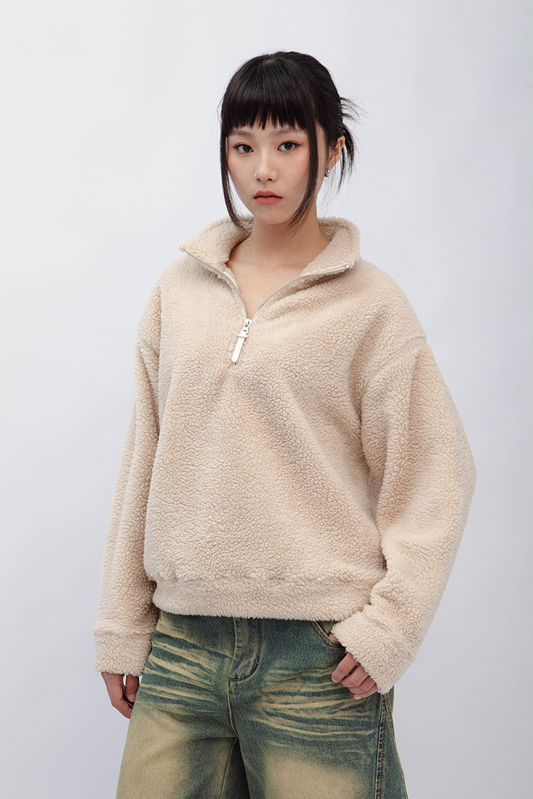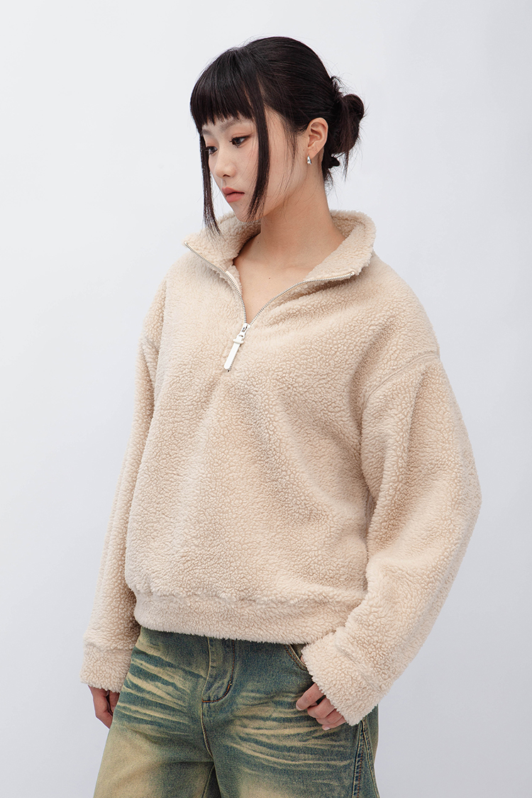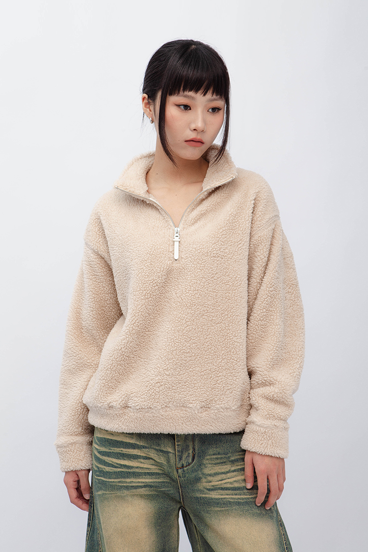 小高領羊羔毛上衣,選用雙面羊羔毛材質,觸感軟糯細膩,穿起來親膚又保暖。寬鬆慵懶的版型設計,讓你無論在家還是外出都能自在穿搭,輕鬆打造溫暖氛圍。半拉鍊開口,方便調節,適合搭配牛仔褲或寬鬆休閒褲,增添秋冬季節的隨性感。