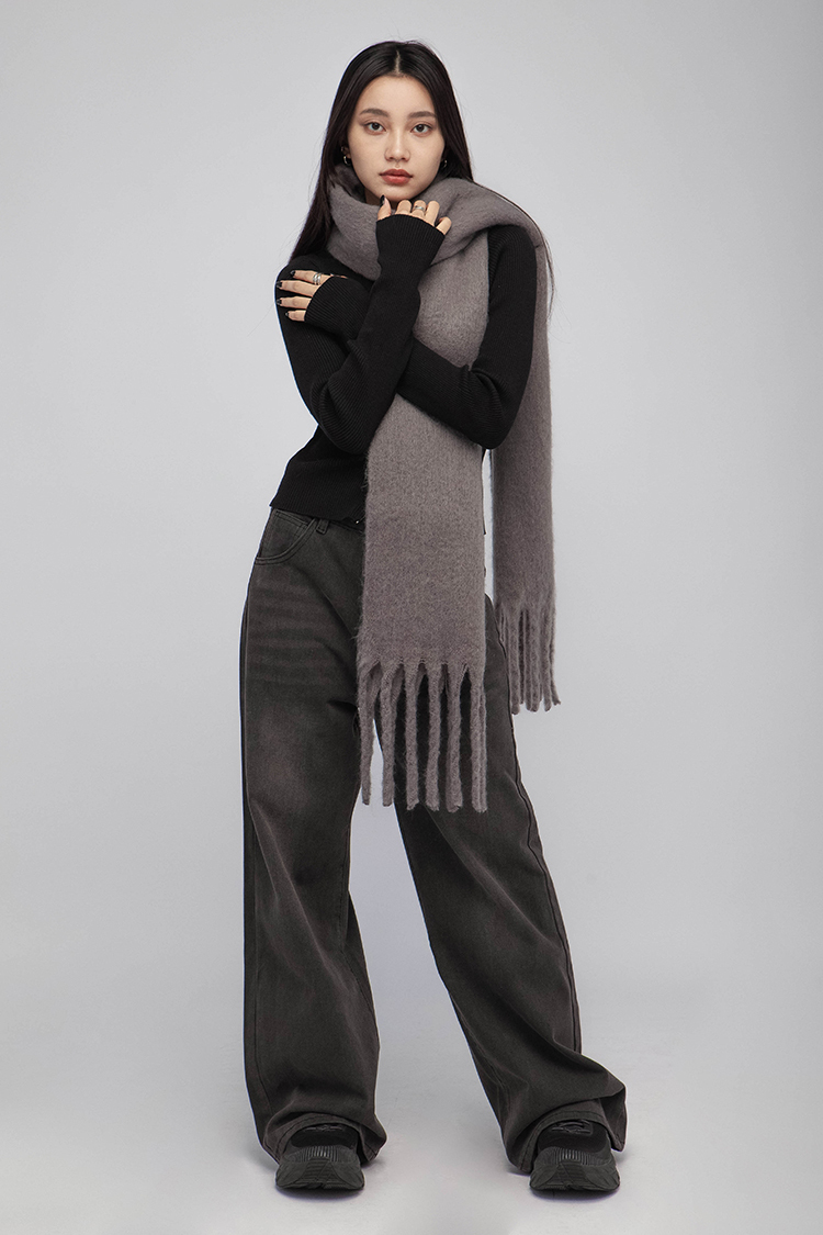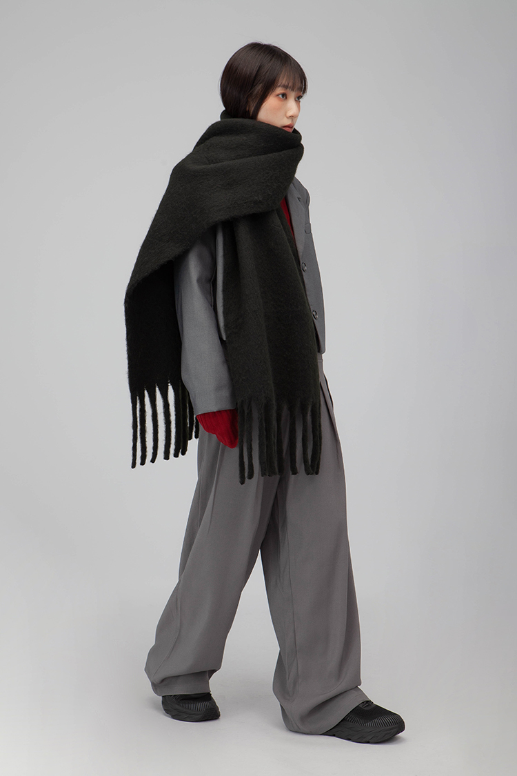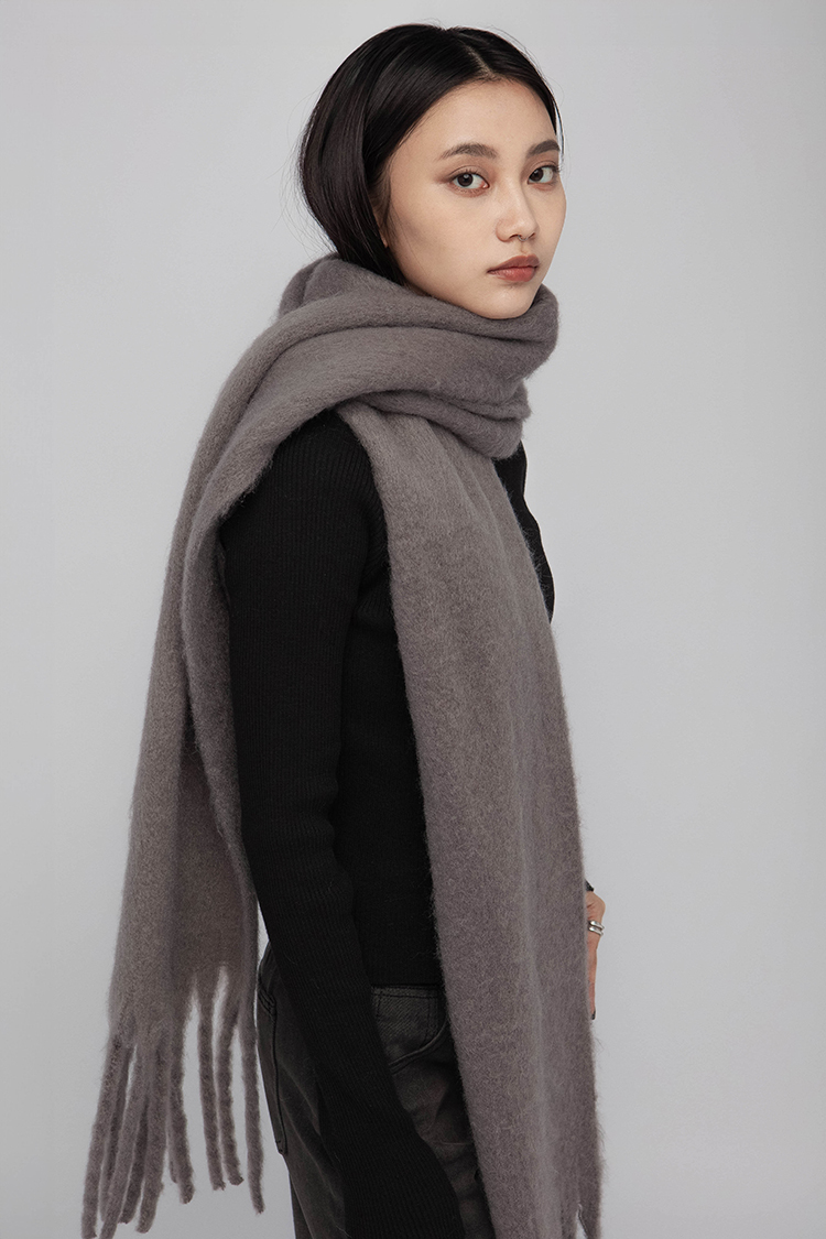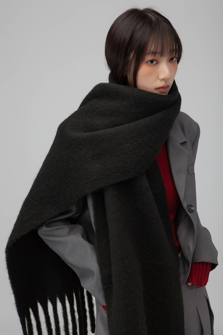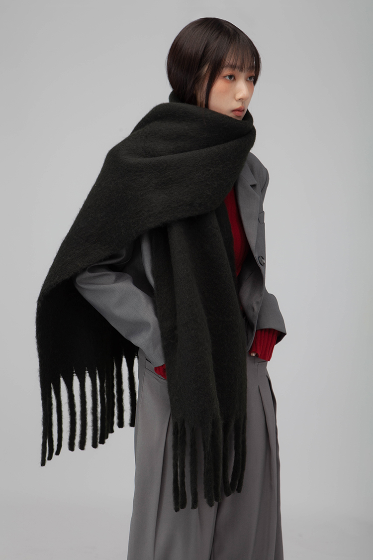 極具質感的厚絨流蘇圍巾,粗流蘇設計,豐富的層次,採用羊毛混紡製成,手感拉絨,柔軟親膚,保暖禦寒,效果十足,有如多穿一件衣物,使冬季更加舒適,必備的保暖單品。