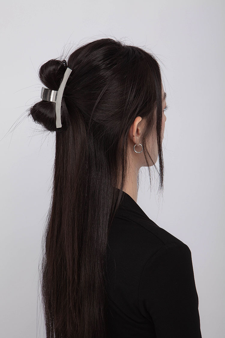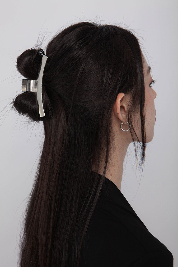 銀色電鍍合金,一字髮夾,適合中等髮量,牢固簡約,點綴日常。