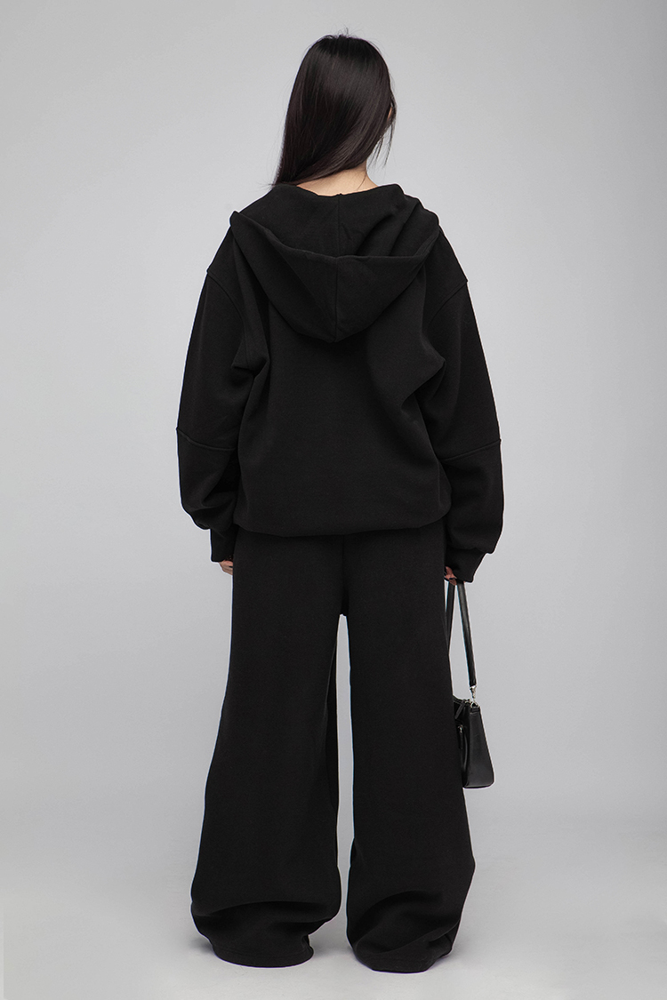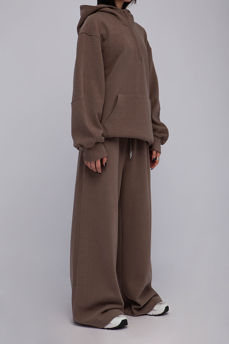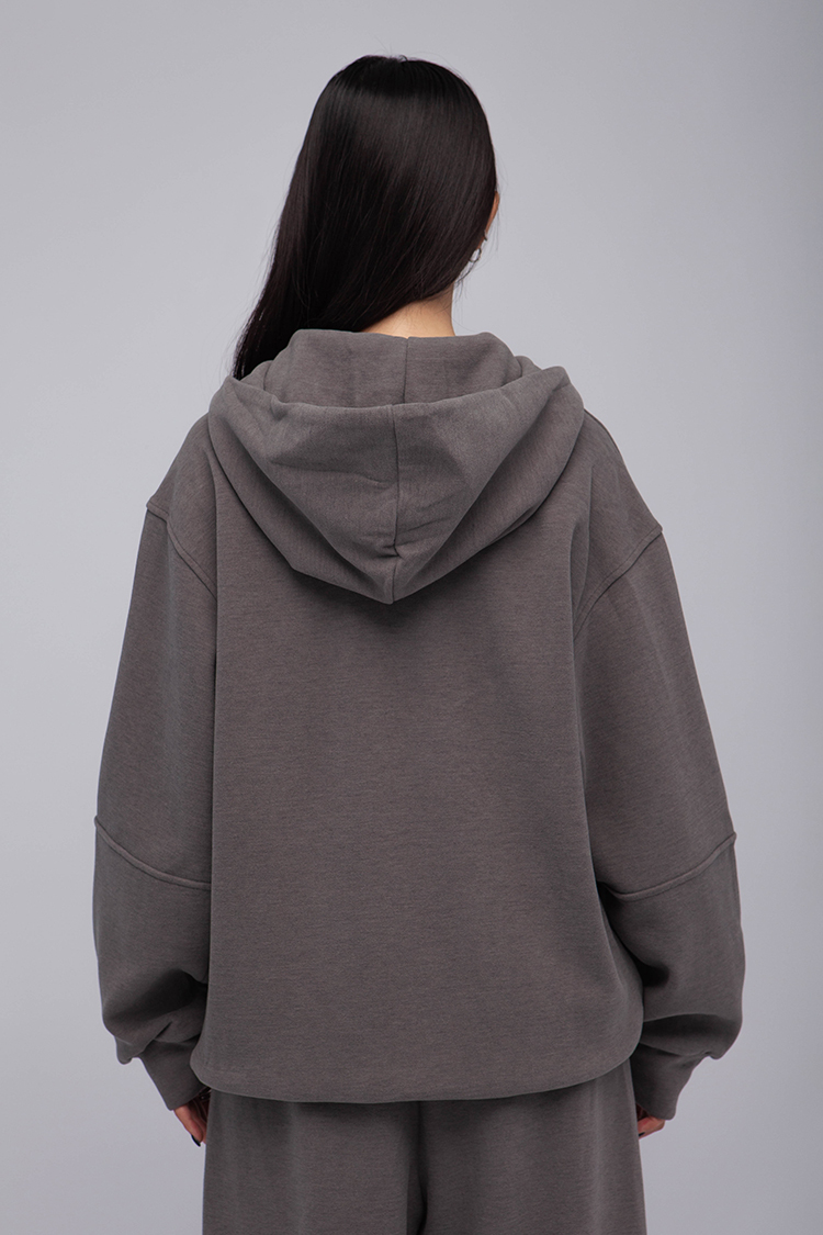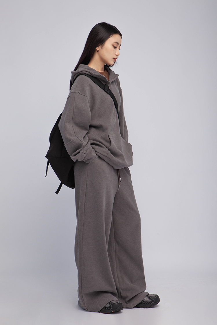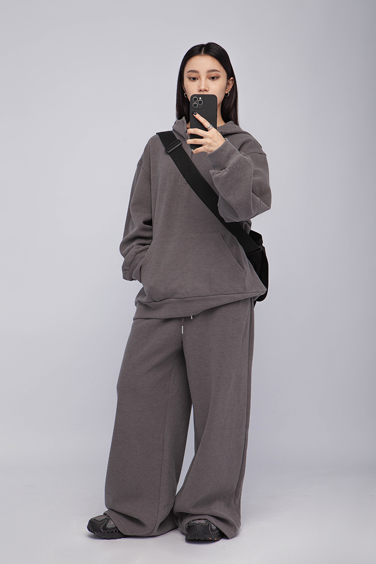 長袖連帽運動衫,前襟半拉鍊,散發著一種透肌微辣的氛圍,設計帶有實用性的袋鼠口袋,布料選用高品質的羊毛與棉質混紡,確保柔軟親膚的觸感,抓絨保暖效果,寬鬆落肩設計展現慵懶的風格,帶來自在的穿著感受,在日常生活中輕鬆自如。