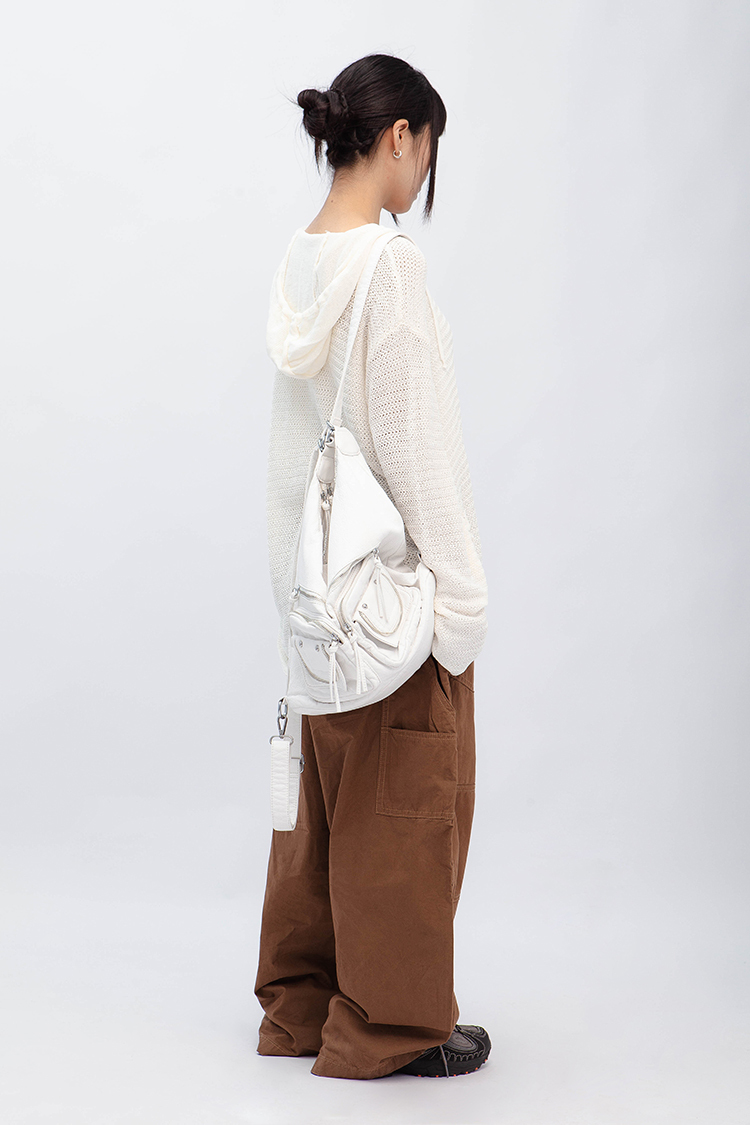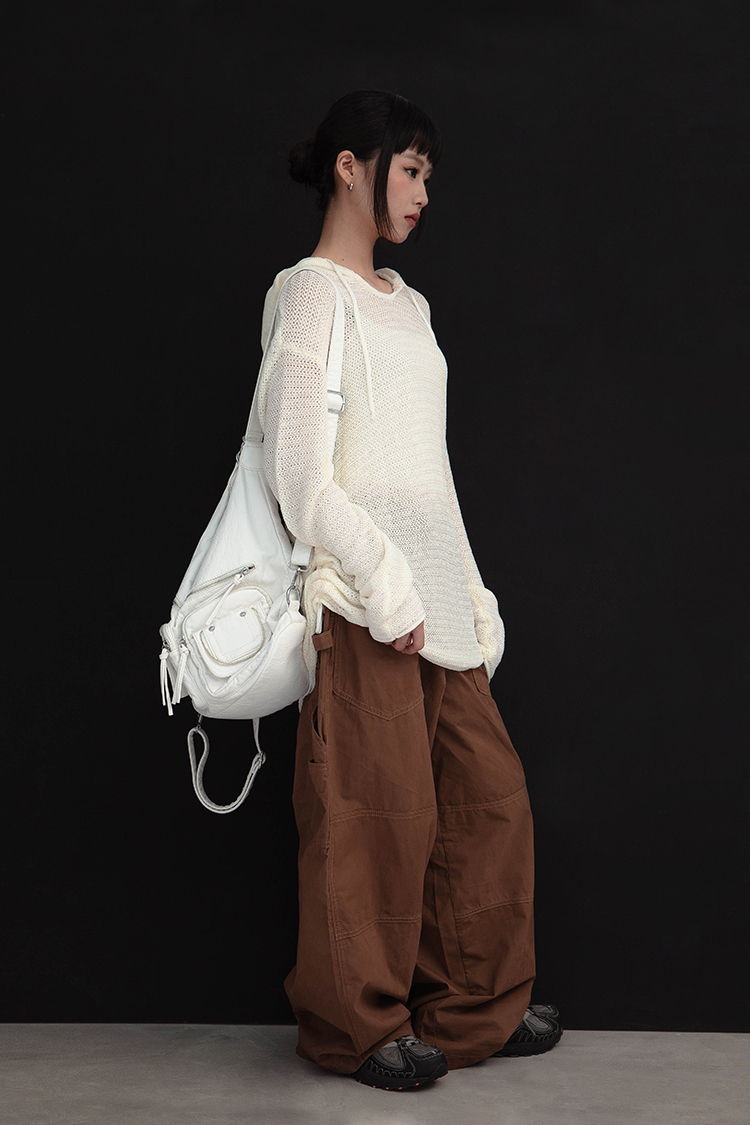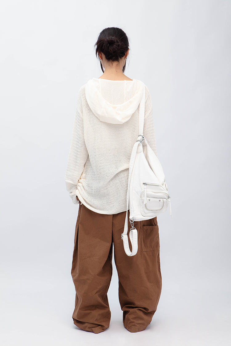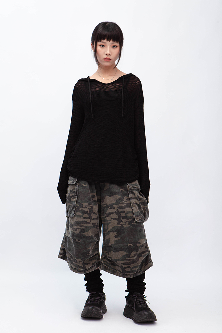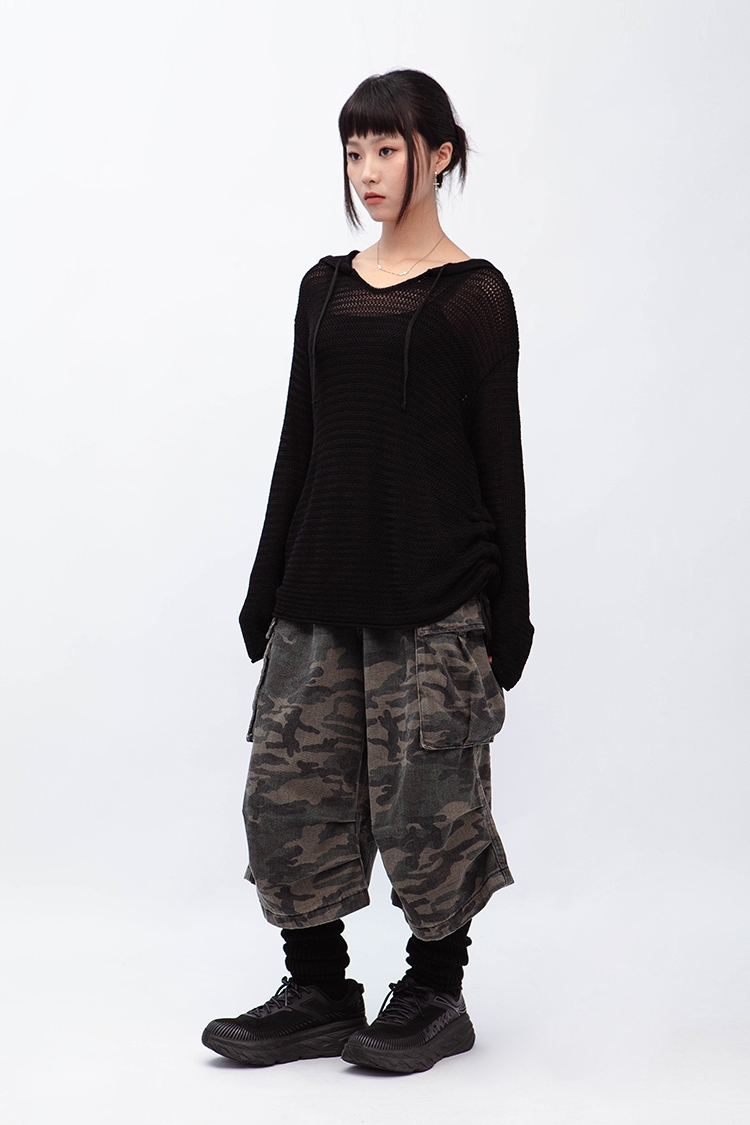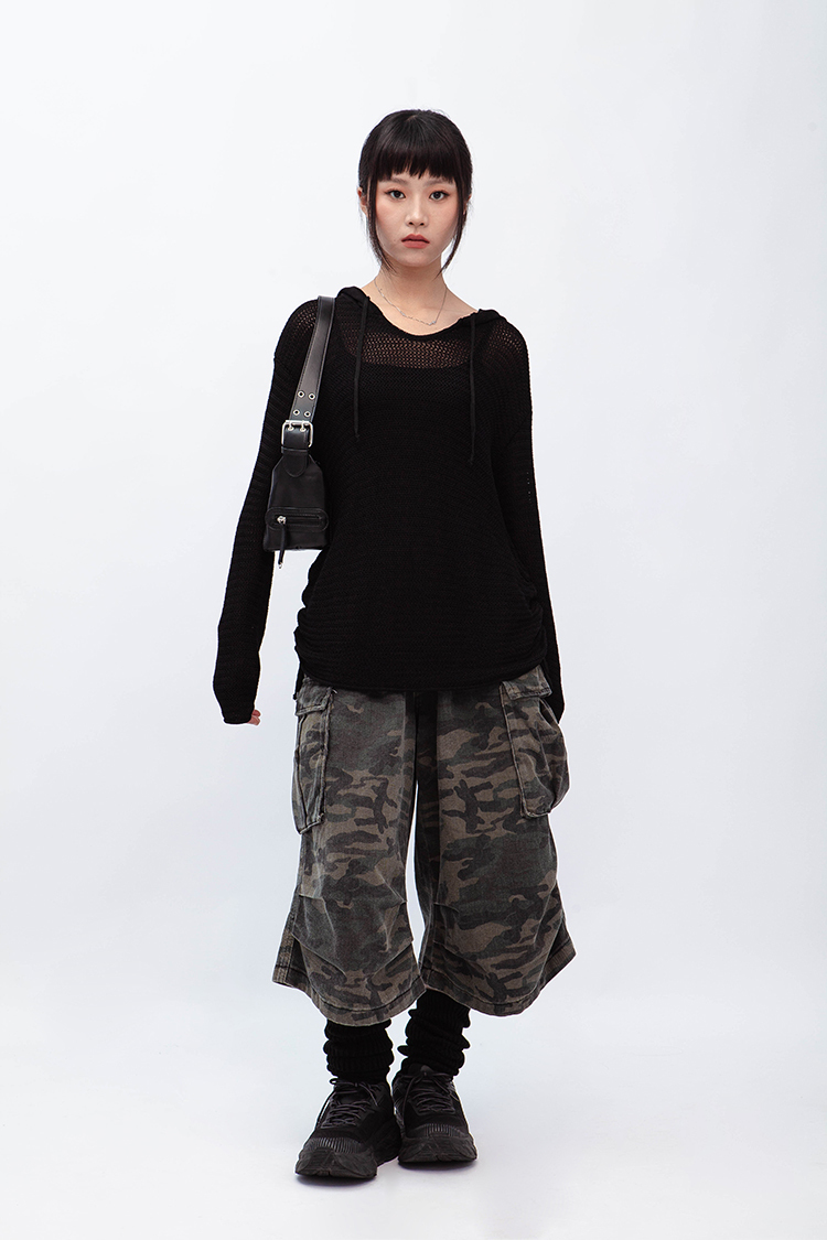 鏤空連帽針織衫,以寬鬆慵懶的剪裁呈現,帶來輕鬆自在的穿著感。鏤空微透針織面料,展現隨性中帶點小性感的風格。側邊下擺設計有可調節抽繩,可依需求調整版型與長度,適合秋冬季節的輕薄層次感。