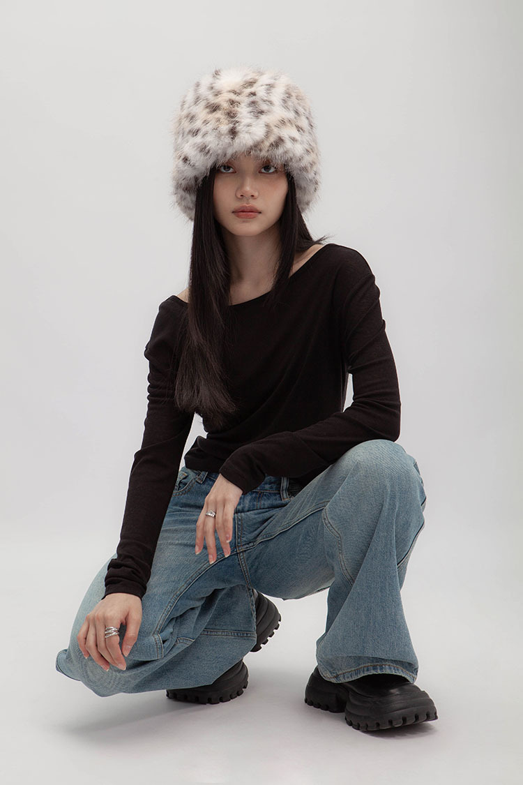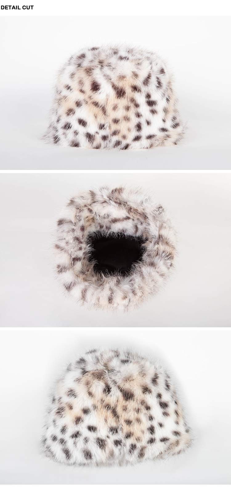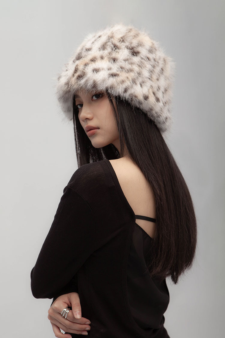 以柔軟仿毛絨打造,散發精緻光澤,豹紋印花野性中帶點甜美,帽型立體飽滿,烘托精巧臉龐。配戴舒適,注入一抹暖意。