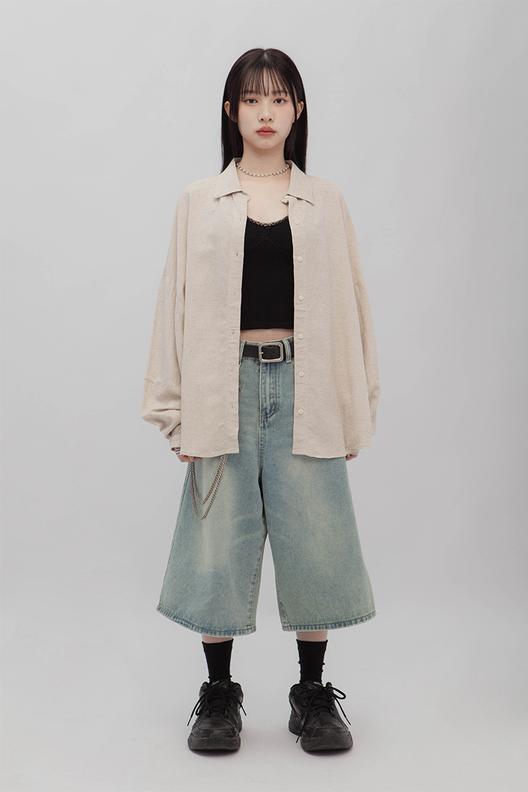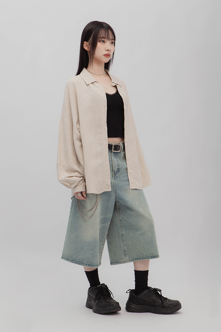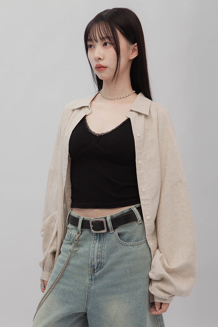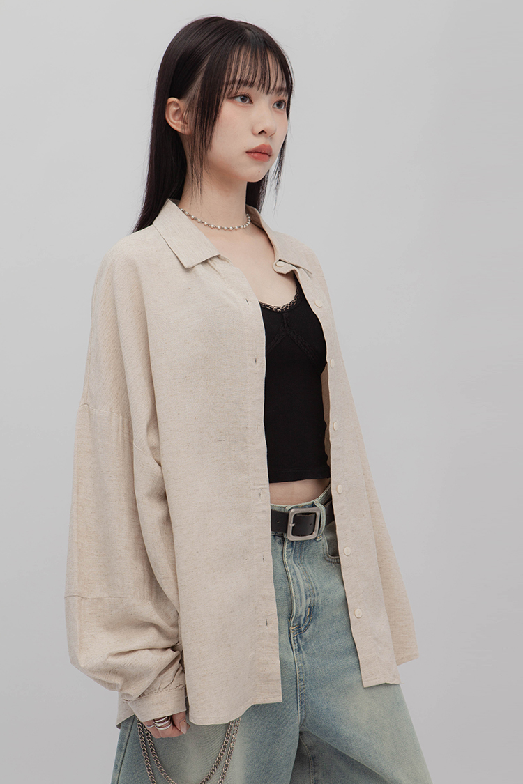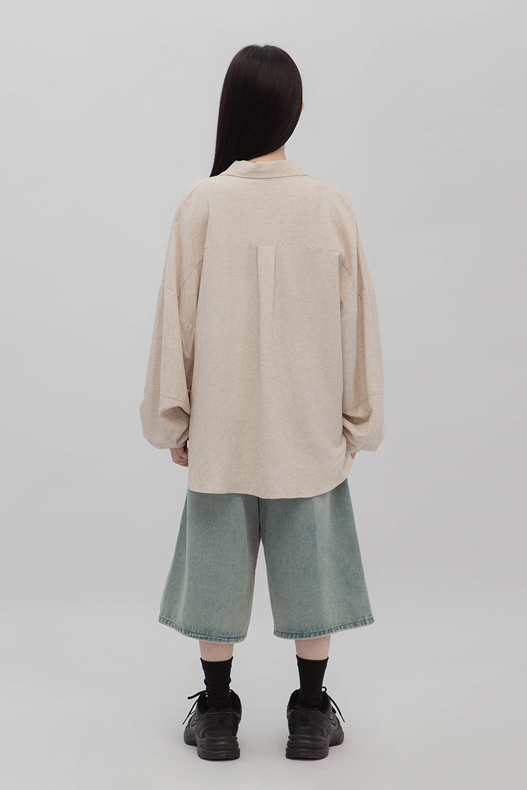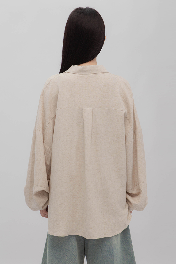 這款亞麻襯衫以自然質樸的風格為主,穿著自帶鬆弛感。燈籠袖和袖子上的雙橫線裁縫,增添獨特的細節,腰部的兩顆釦子設計便於調整腰圍,提升整體造型感。