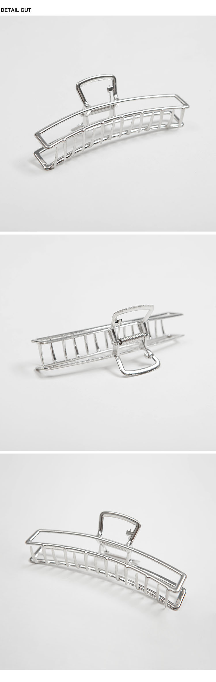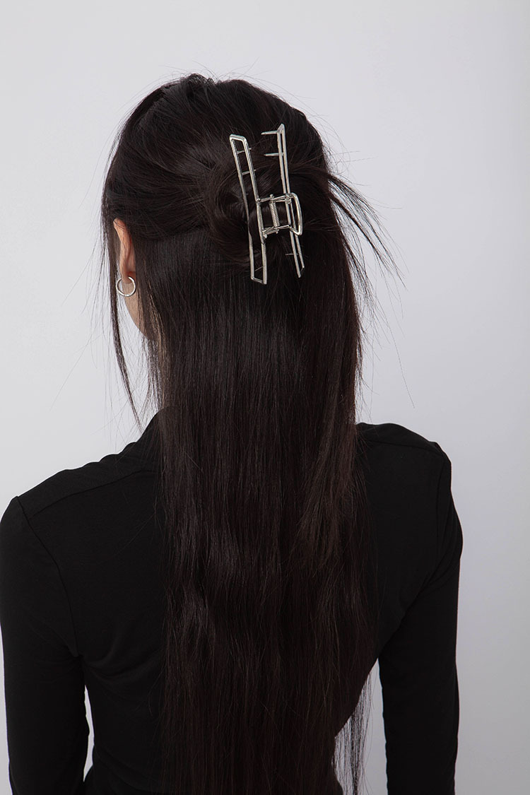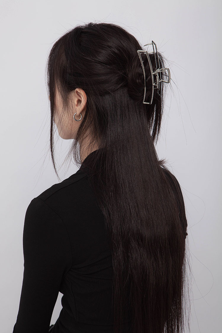 銀色電鍍,鏤空弧形設計,厚實梳齒,適合中等髮量,牢固精緻,點綴日常。