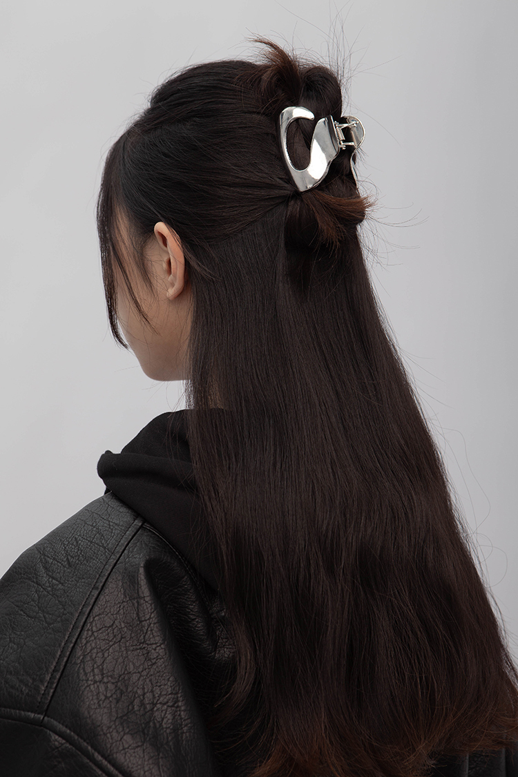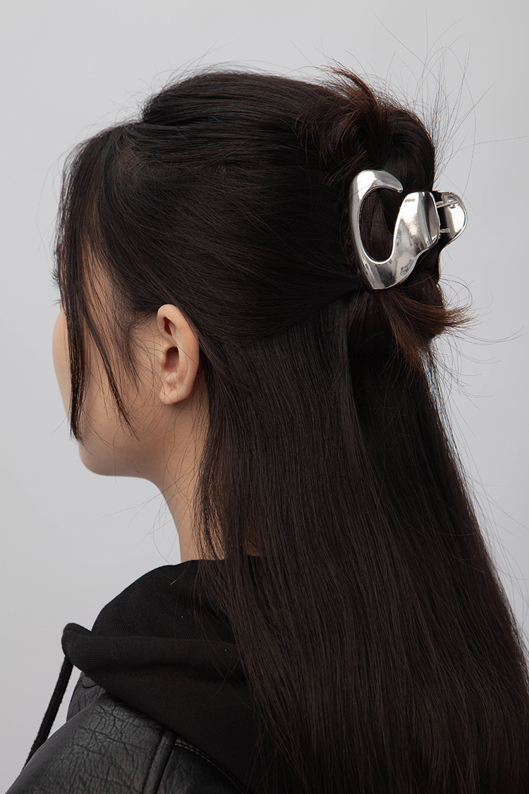 銀色電鍍,液態流動線條,小巧卻厚實的齒梳,中等髮量仍可牢固抓夾,點綴日常。