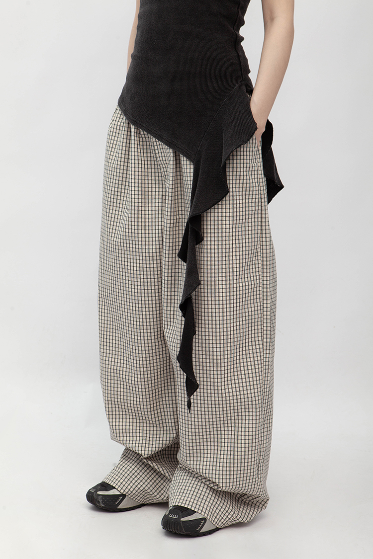 寬鬆格紋剪裁,鬆弛的城市休閒褲款。