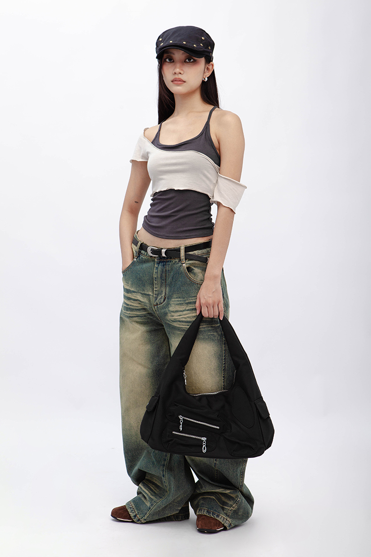 · 主帶拉鍊閉合,正面雙向拉鍊造型。