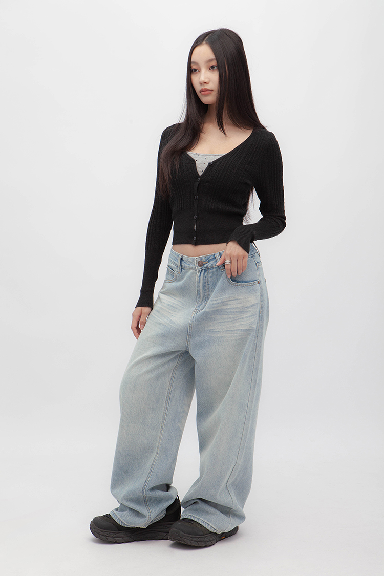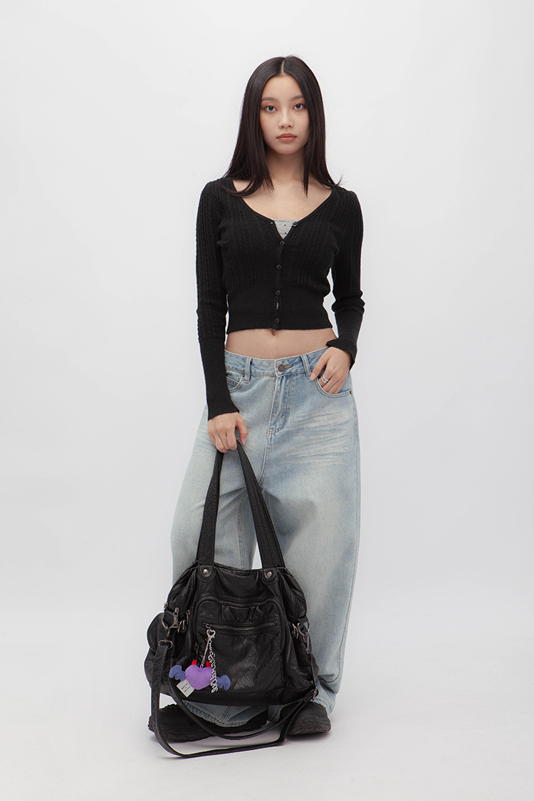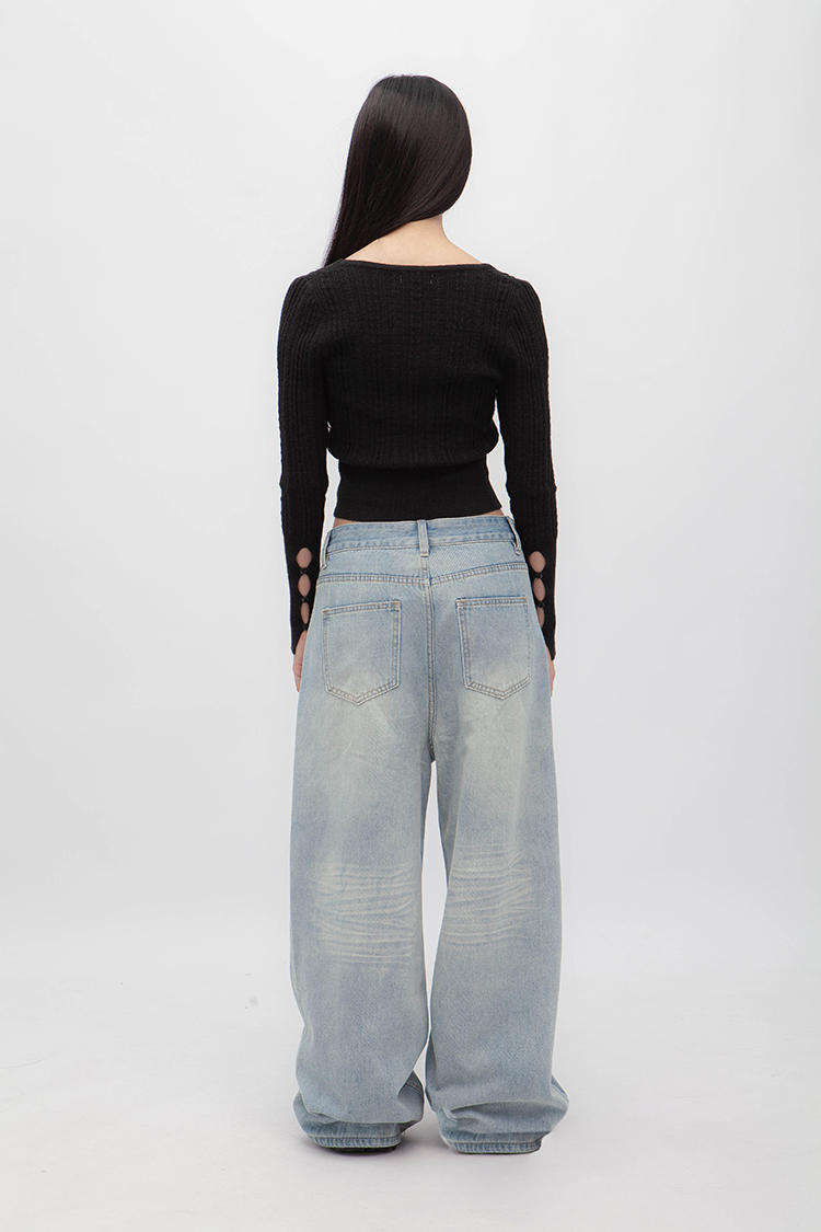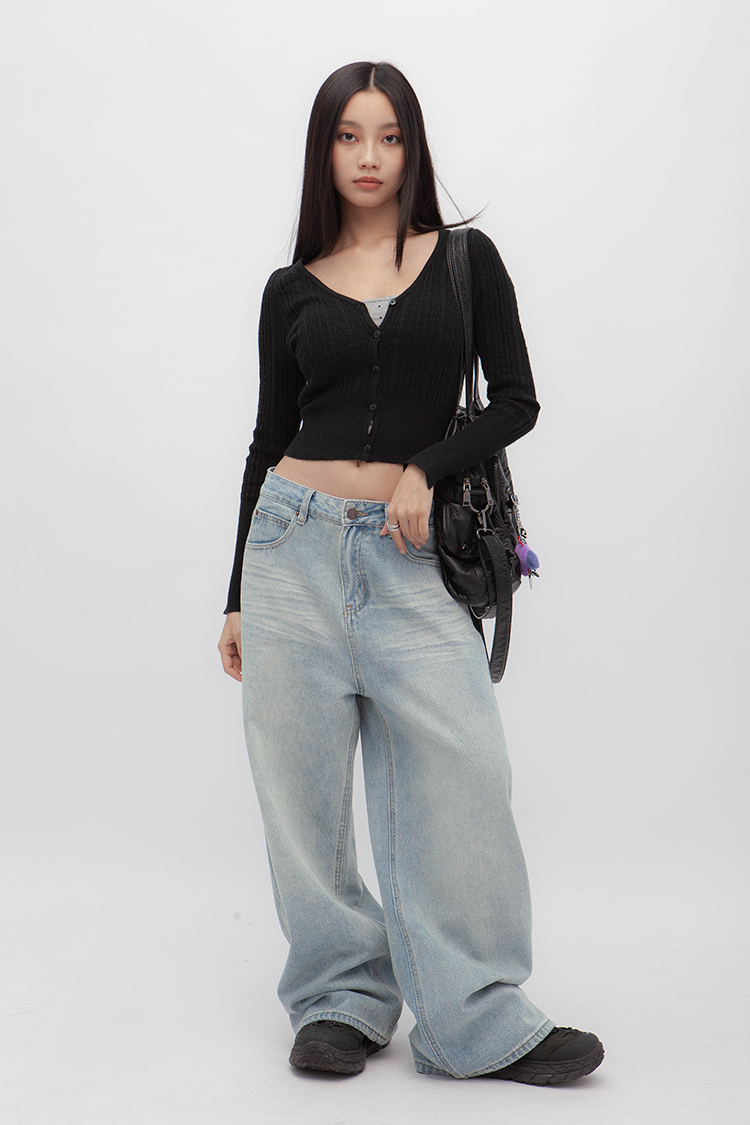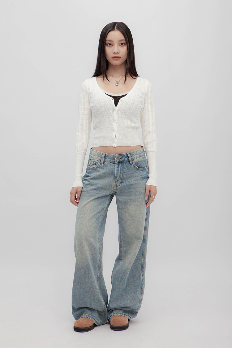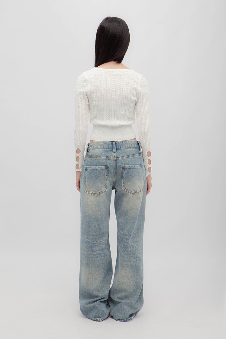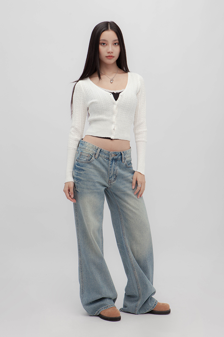 V領短版搭配鏤空袖口與細緻肌理針織,穿起來修飾度高、帶點小性感,高腰下身搭配也超好看。