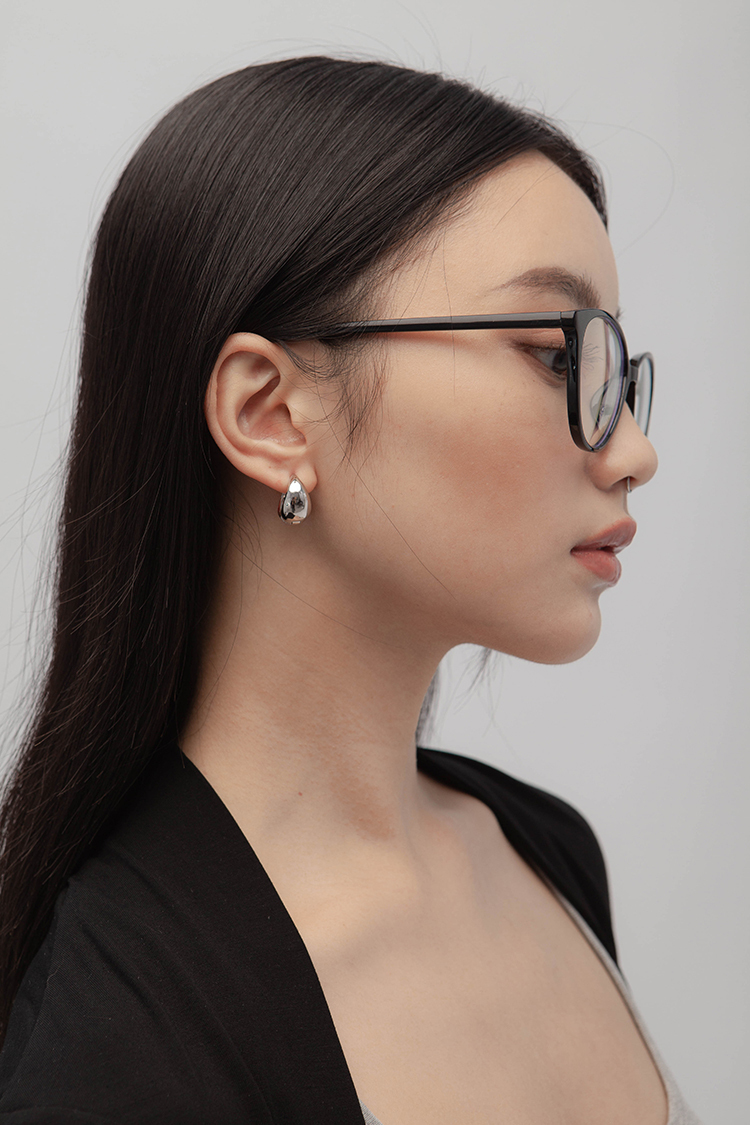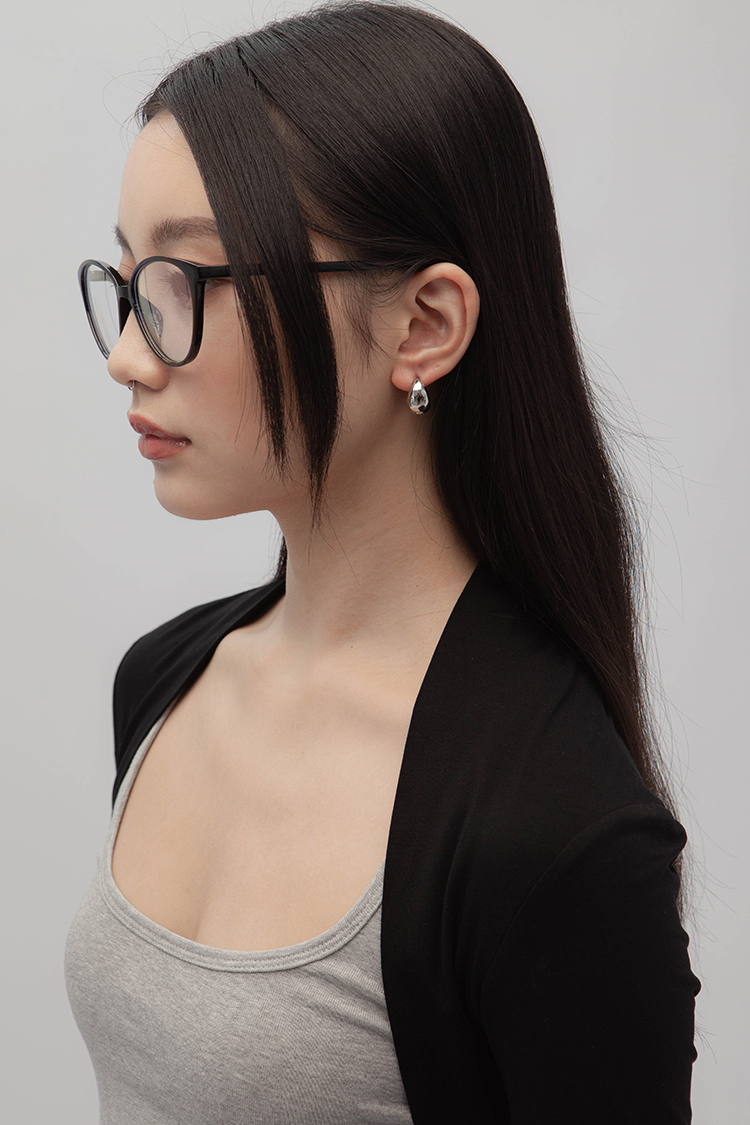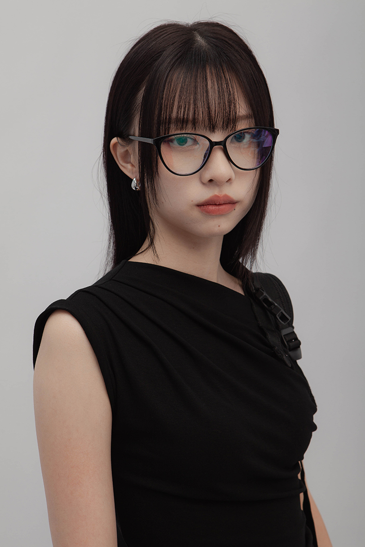橢圓黑框眼鏡,塑膠鏡框和鏡腿,透明塑膠鏡片,提供良好的臉型修飾。