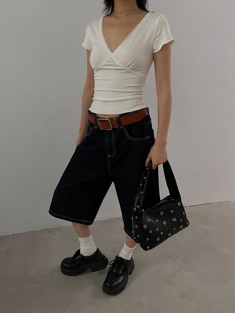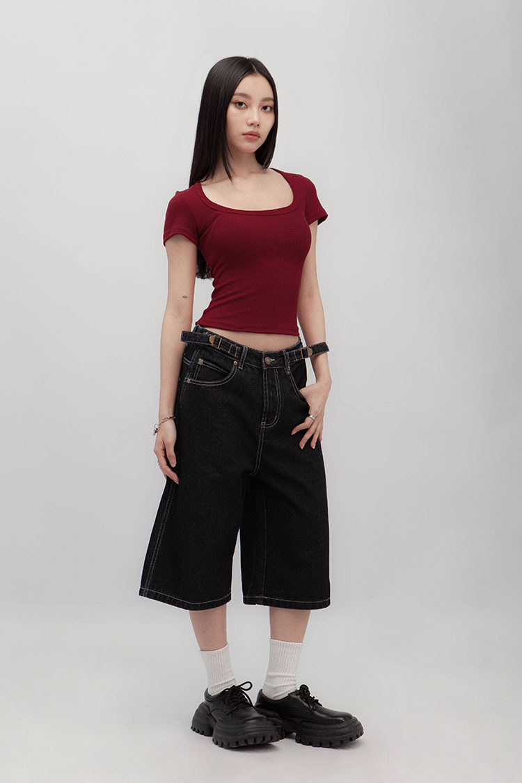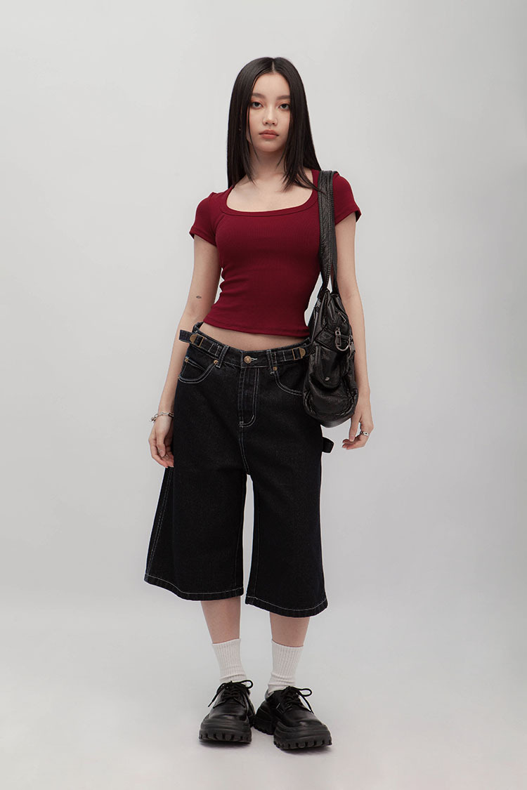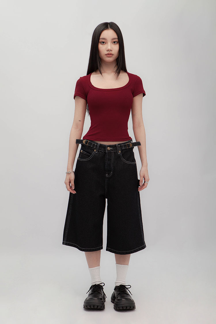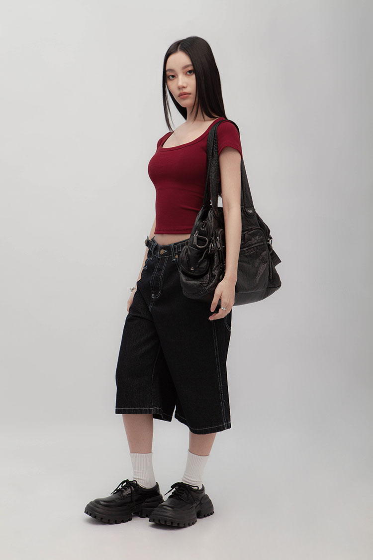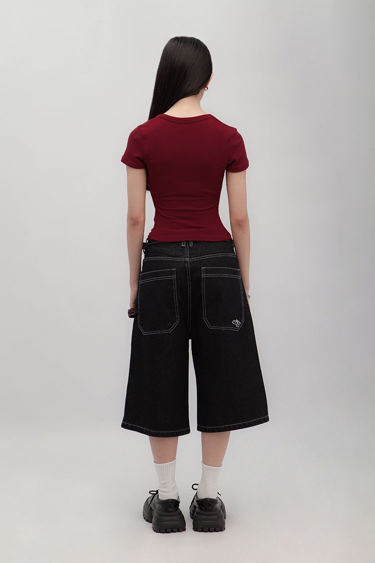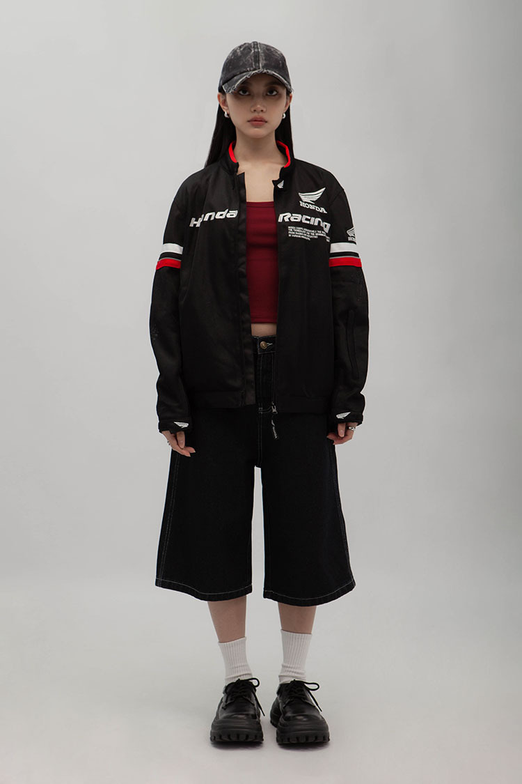街頭輪廓為靈感,版型採用七分直筒剪裁,打造寬鬆份量感。褲頭附可調節式織帶設計,強化視覺層次與實穿機能,接近中高腰剪裁搭配挺版斜紋布料,呈現乾淨俐落的率性風格。深藍經紗搭配白色緯紗,褲面隱約透出經典雙色紋理,展現復古個性。後口袋以對比車線與刺繡點綴,簡約中帶出街頭細節感。
