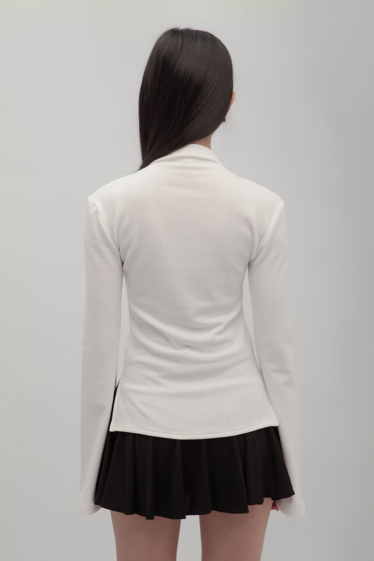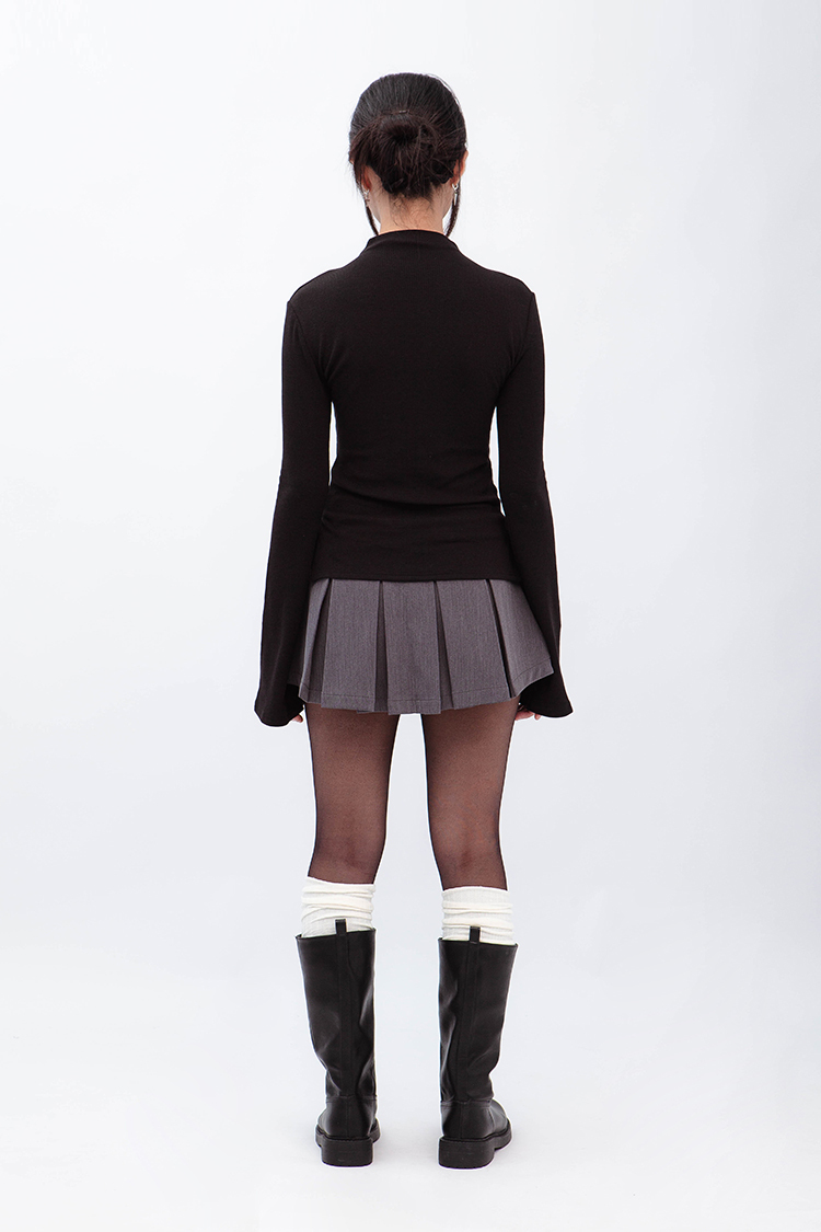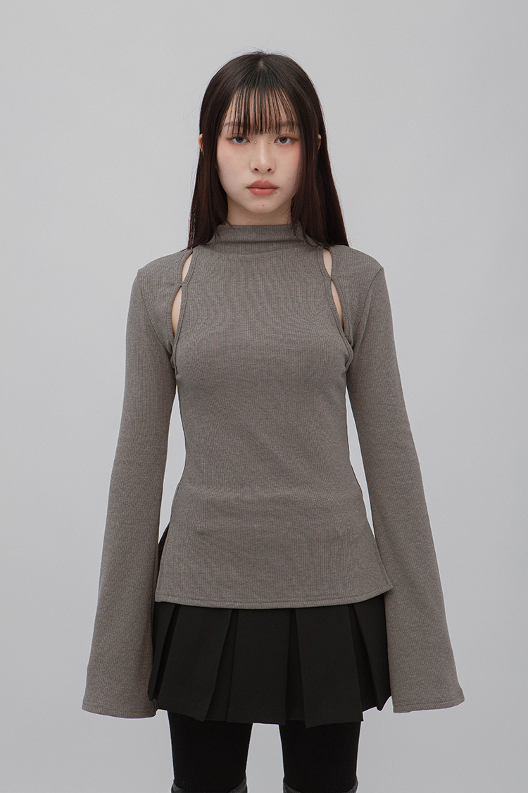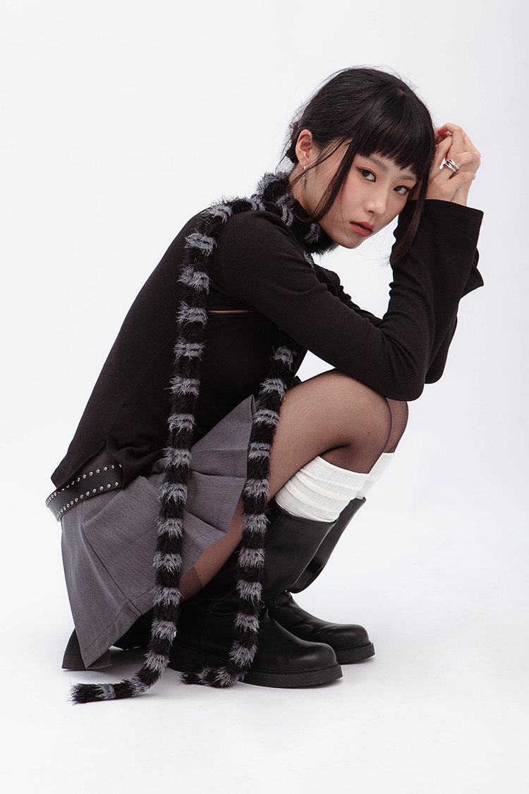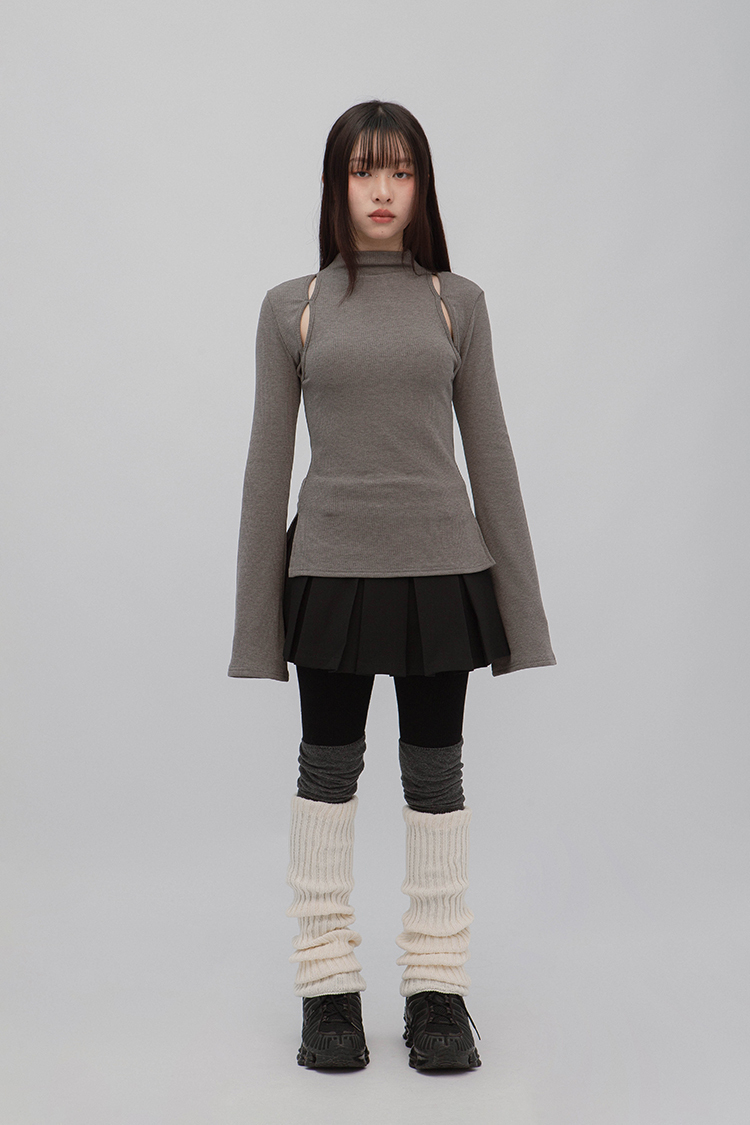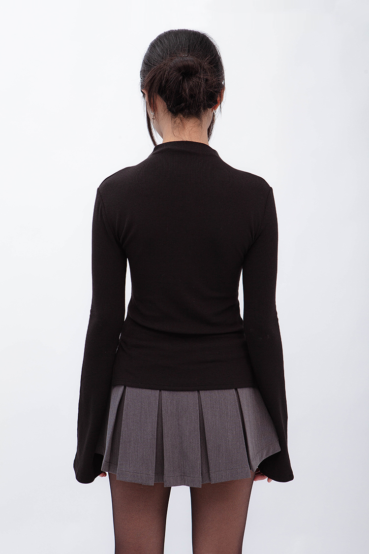小高領羅紋上衣,鏤空剪裁增加細節,若隱若現的視覺效果,內裡特別採用加絨設計,觸感柔軟且保暖,修身版型突顯曲線,是秋冬必備的單品,為日常穿搭增添性感。