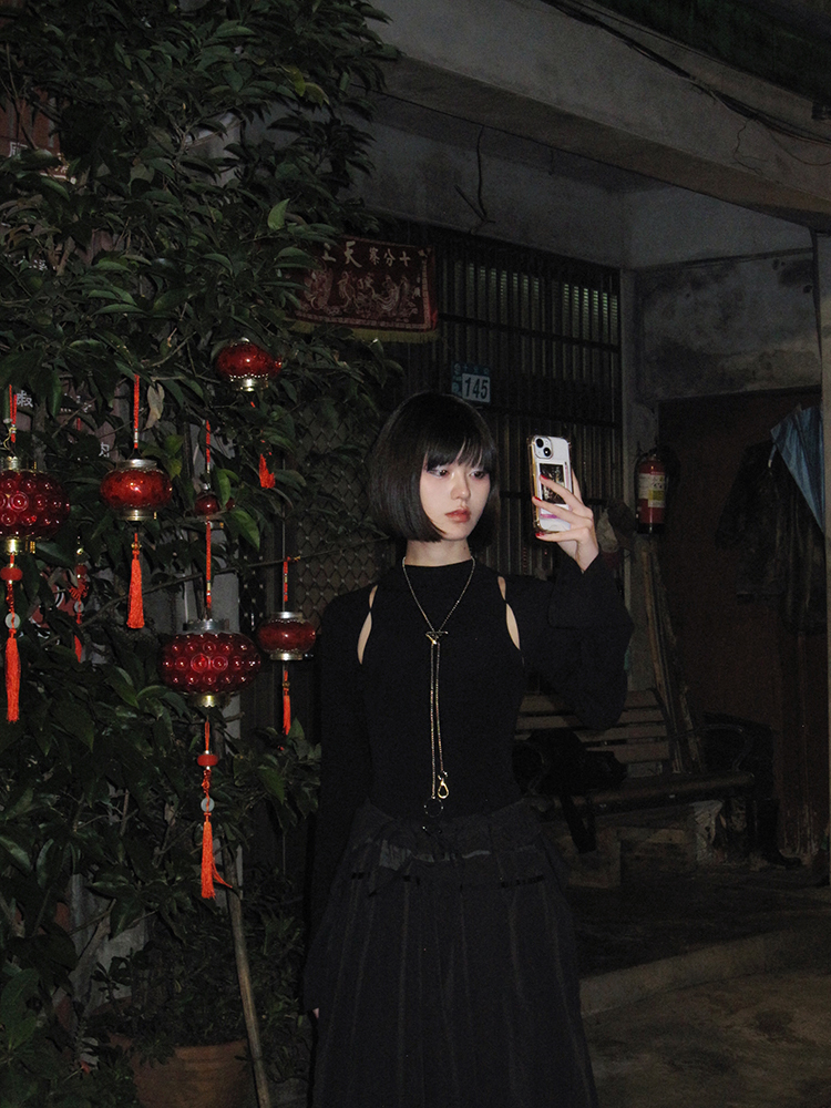 · 鏤空肩膀細節