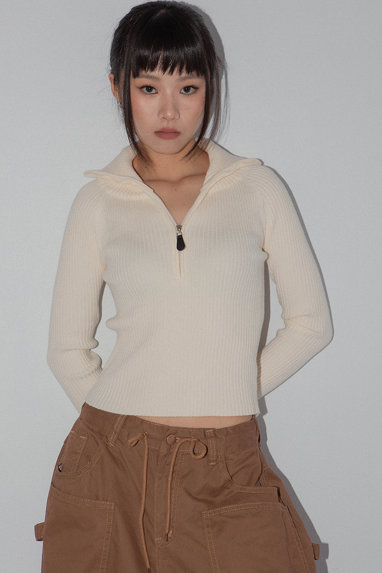 高領半拉鍊設計,提升保暖與靈活性,插肩袖修身剪裁,展現俐落曲線,羅紋粗條紋理,質地細緻緊密,觸感厚實舒適,可辣可酷的穿搭風格,隨性中不失時尚感,是秋冬必備單品。