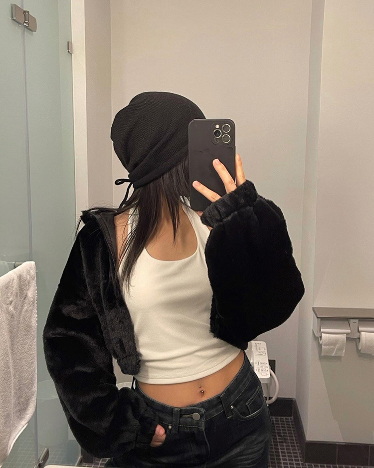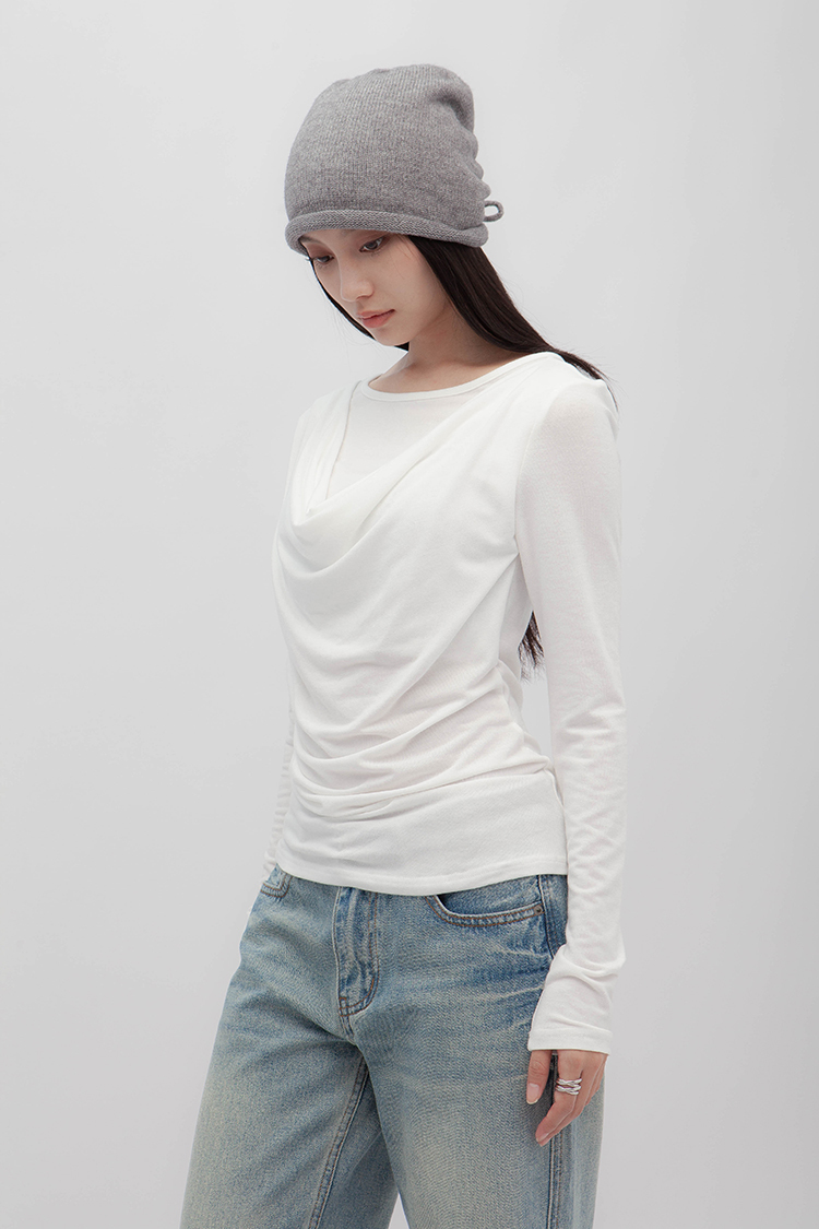 捲邊輪廓,小臉效果,後方抽繩堆堆帽,良好彈性,基礎百搭。