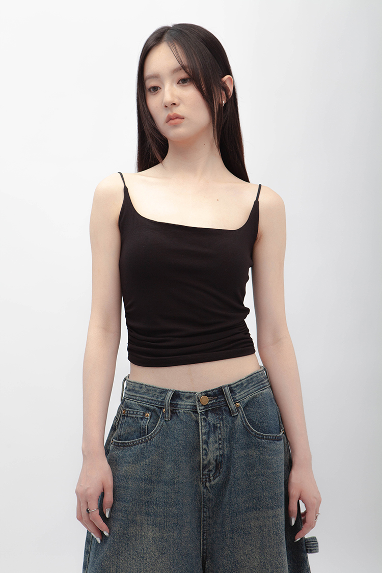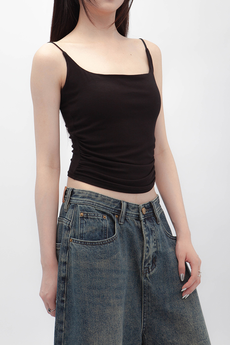 實穿與設計兼具的夏日細肩Bra Top,內附罩杯設計,側邊微收褶線剪裁修飾身形,整體更貼合輪廓。材質使用柔軟羅紋坑條布料,穿起來親膚透氣。下身搭配牛仔褲或寬褲都能展現簡約又有型的日常風格,是每天都能穿的百搭單品。