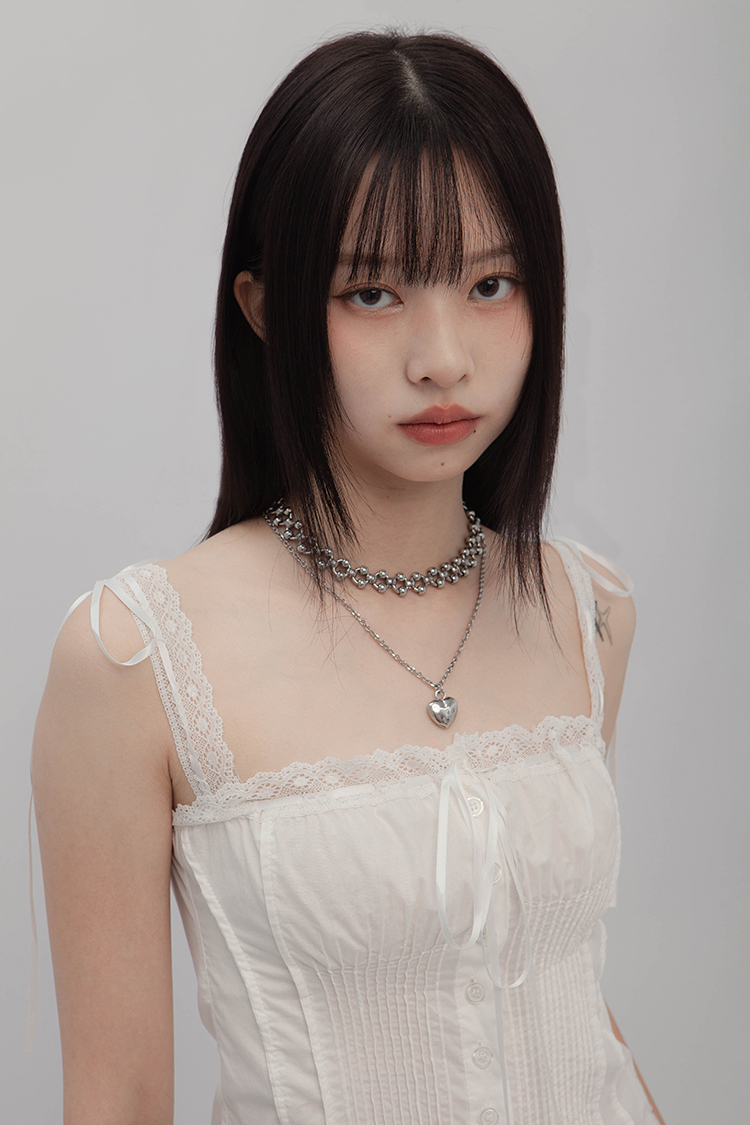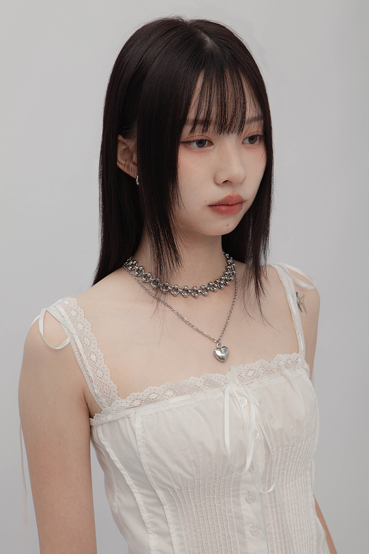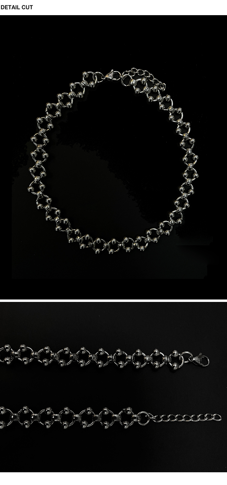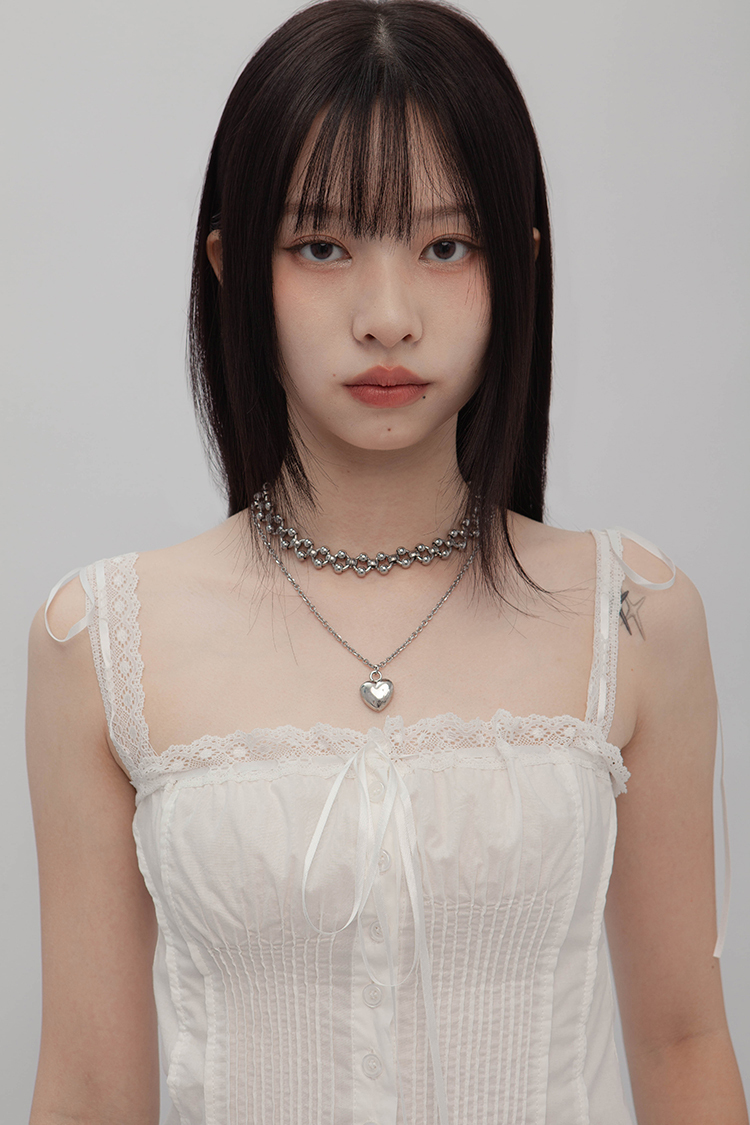 銀色圓環串珠項鍊單獨佩戴已具備強烈的時尚感,疊戴更能增添造型的趣味與層次感。