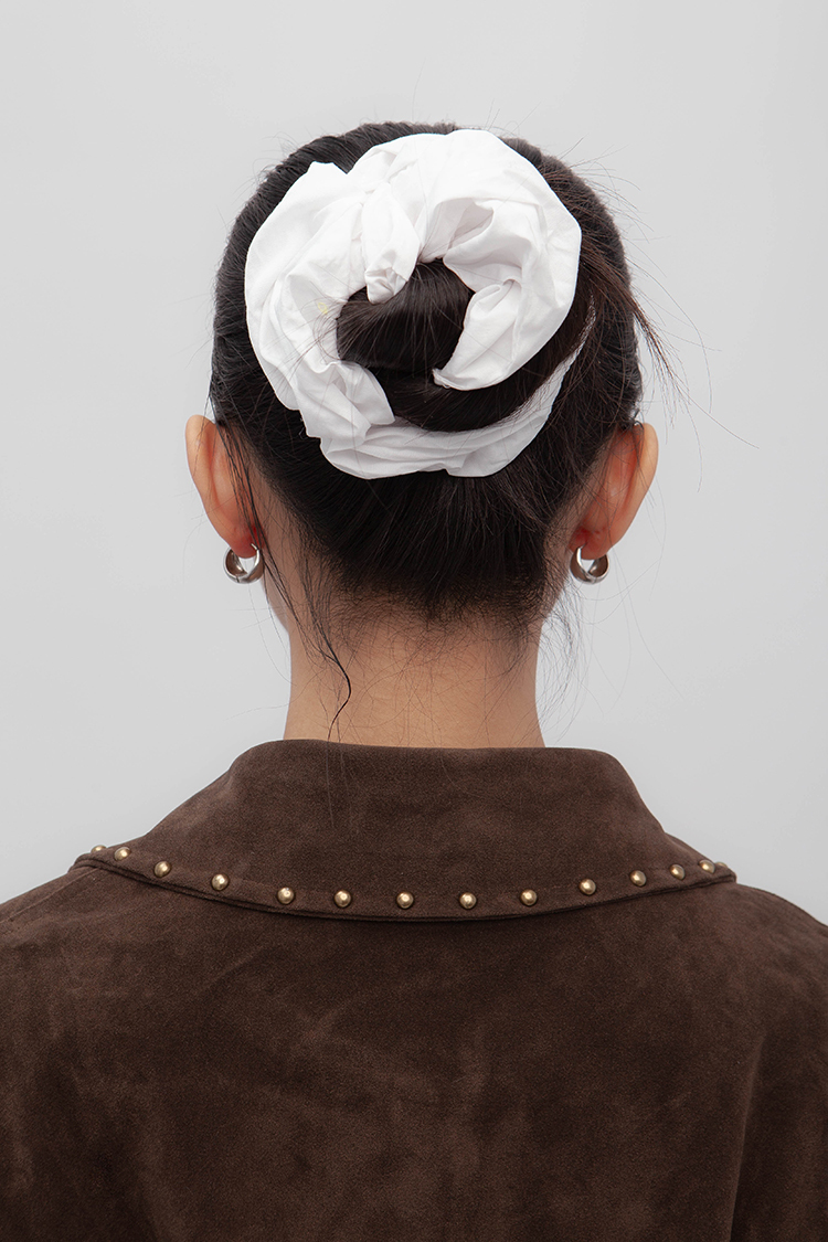 使用輕盈布料製成,紮起來自然蓬鬆有形。大尺寸適合綁髮包份量、小尺寸適合日常清爽造型,兩款都能穩固固定髮絲,簡單就能提升整體質感。