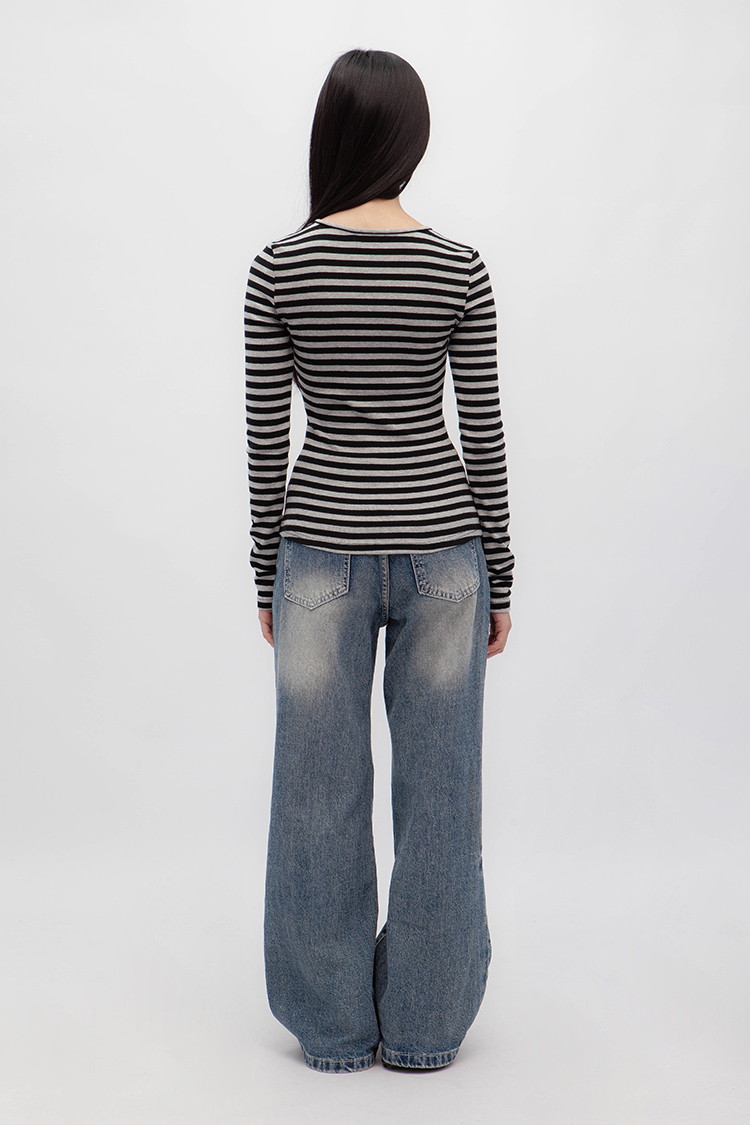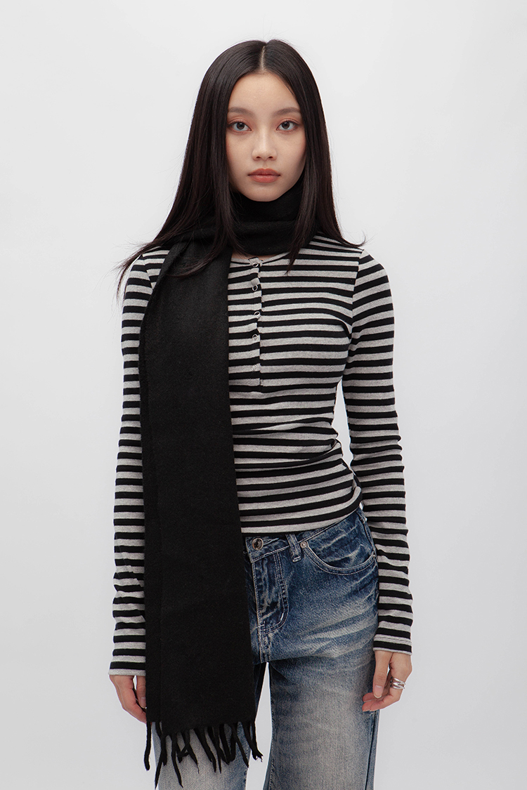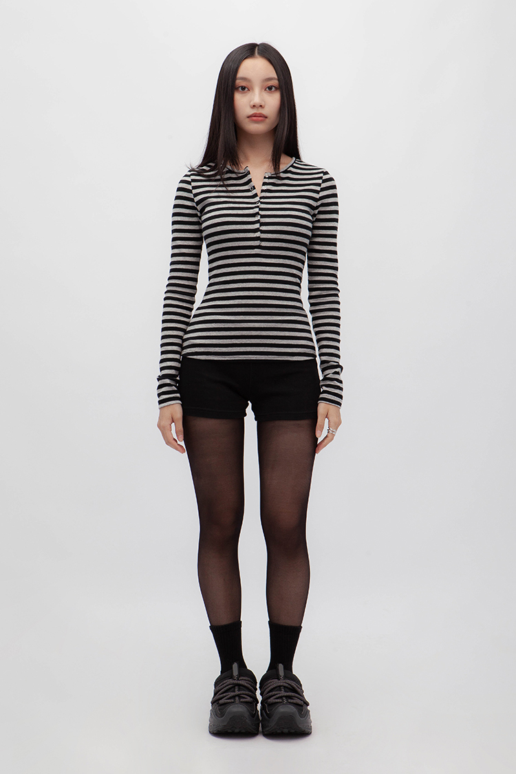 圓領設計結合單排扣細節,經典條紋,修身版型顯瘦不緊繃,厚薄適中可單穿或內搭,穿起來更俐落、多變。