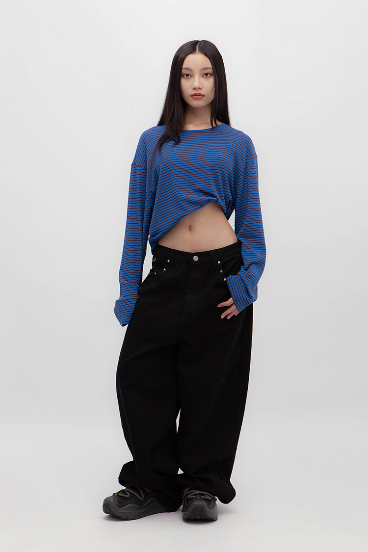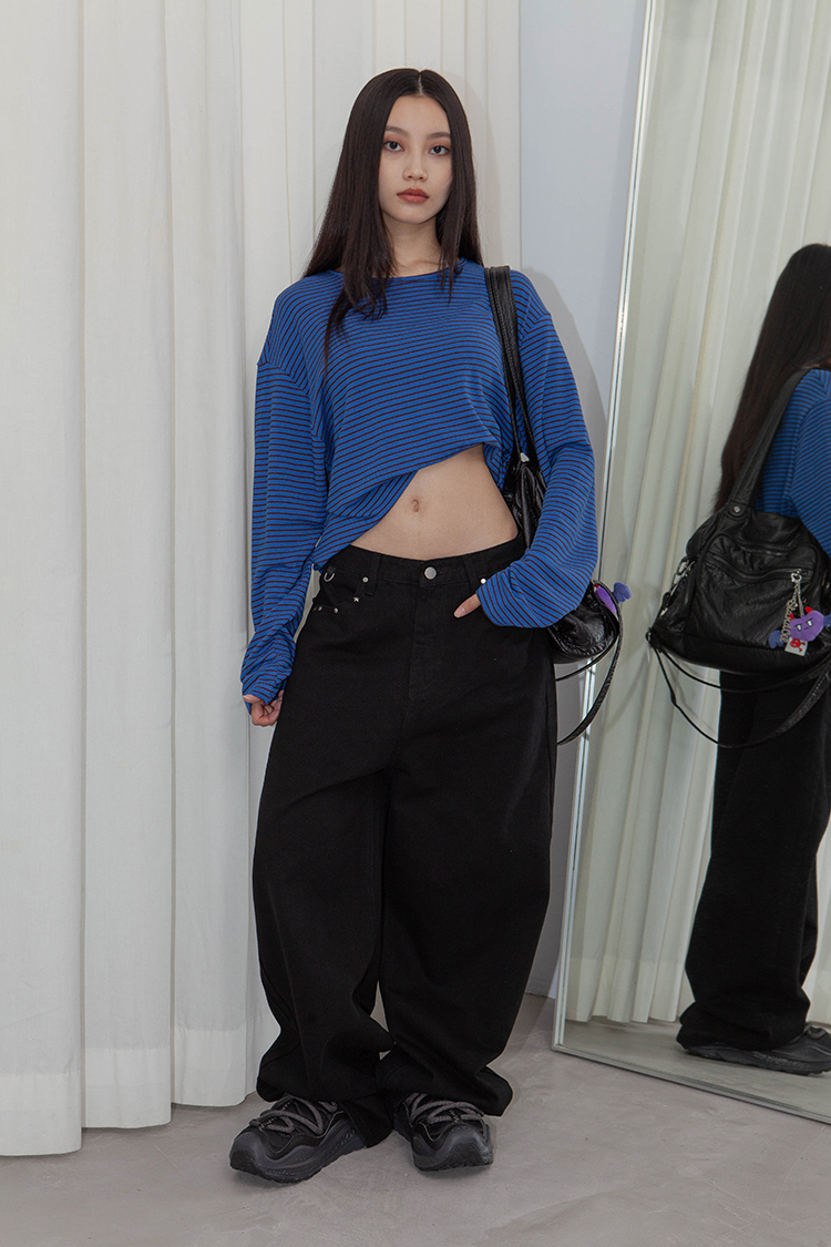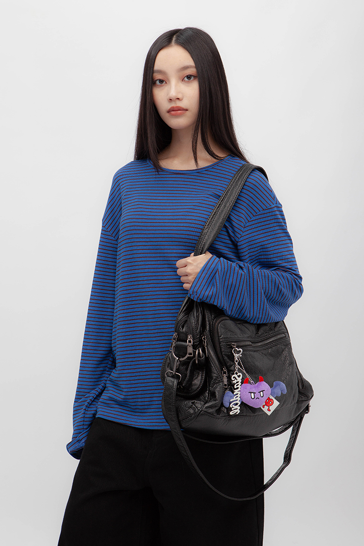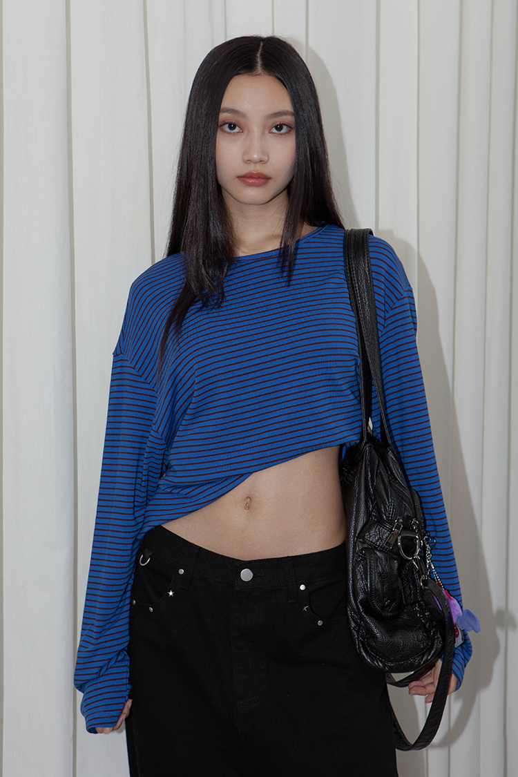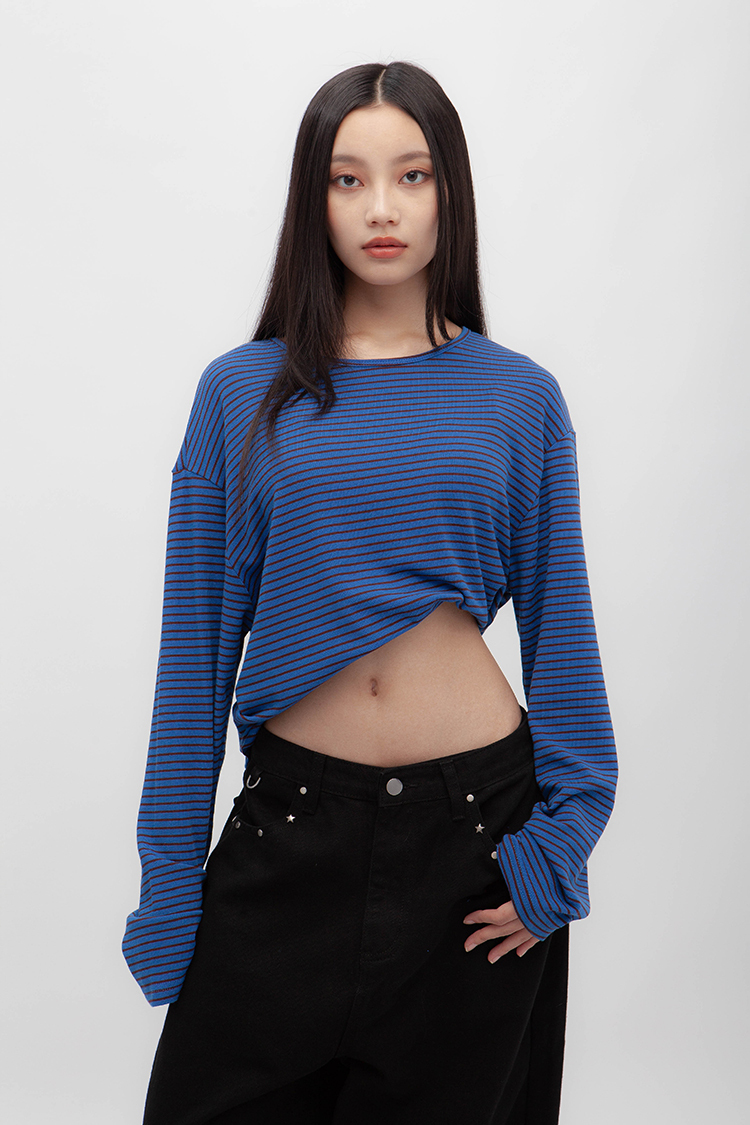 亮眼藍色、咖啡色條紋,搭配落肩版型,穿起來隨性顯瘦又舒服,日常百搭不挑人。