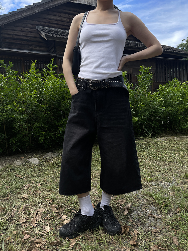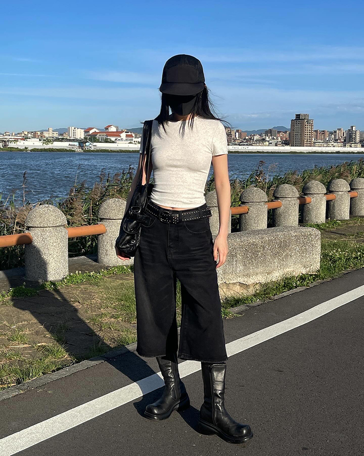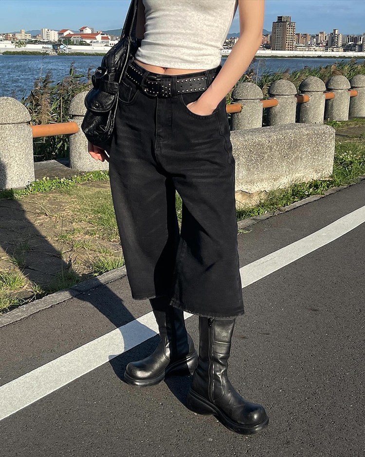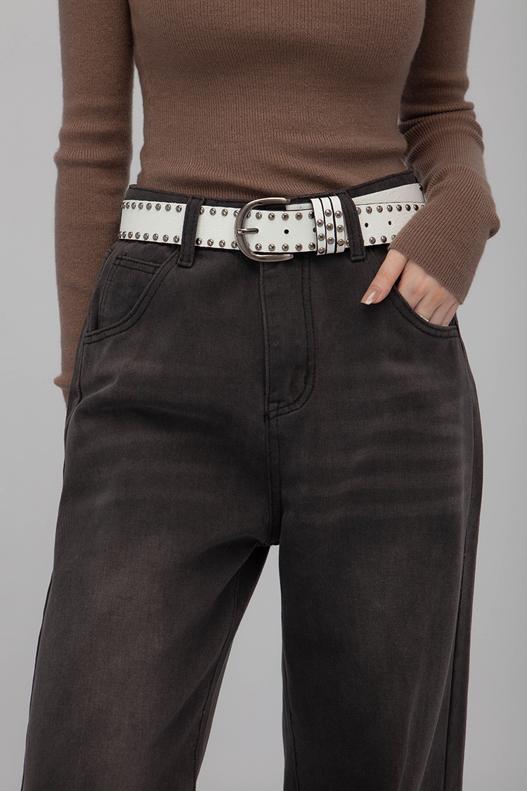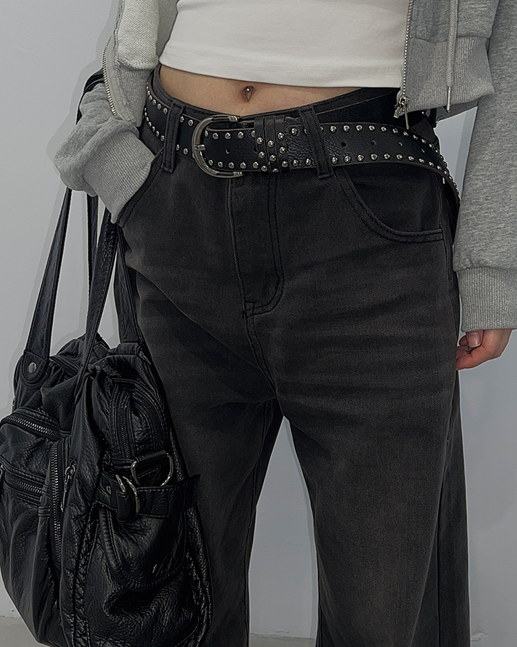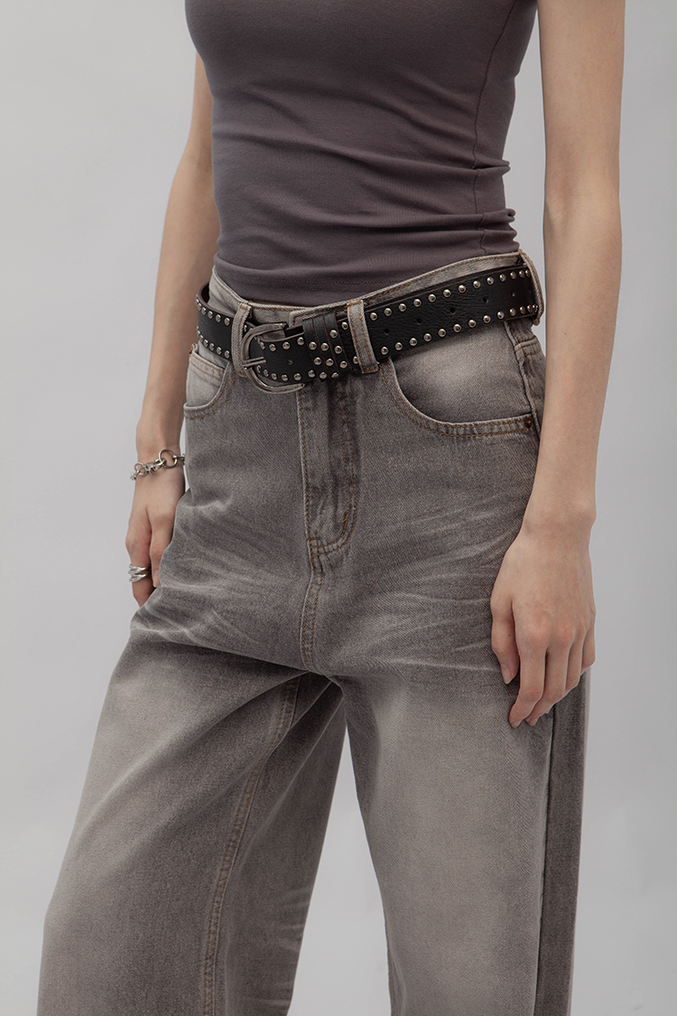 兩排鉚釘點綴細節,寬版個性,復古情調。