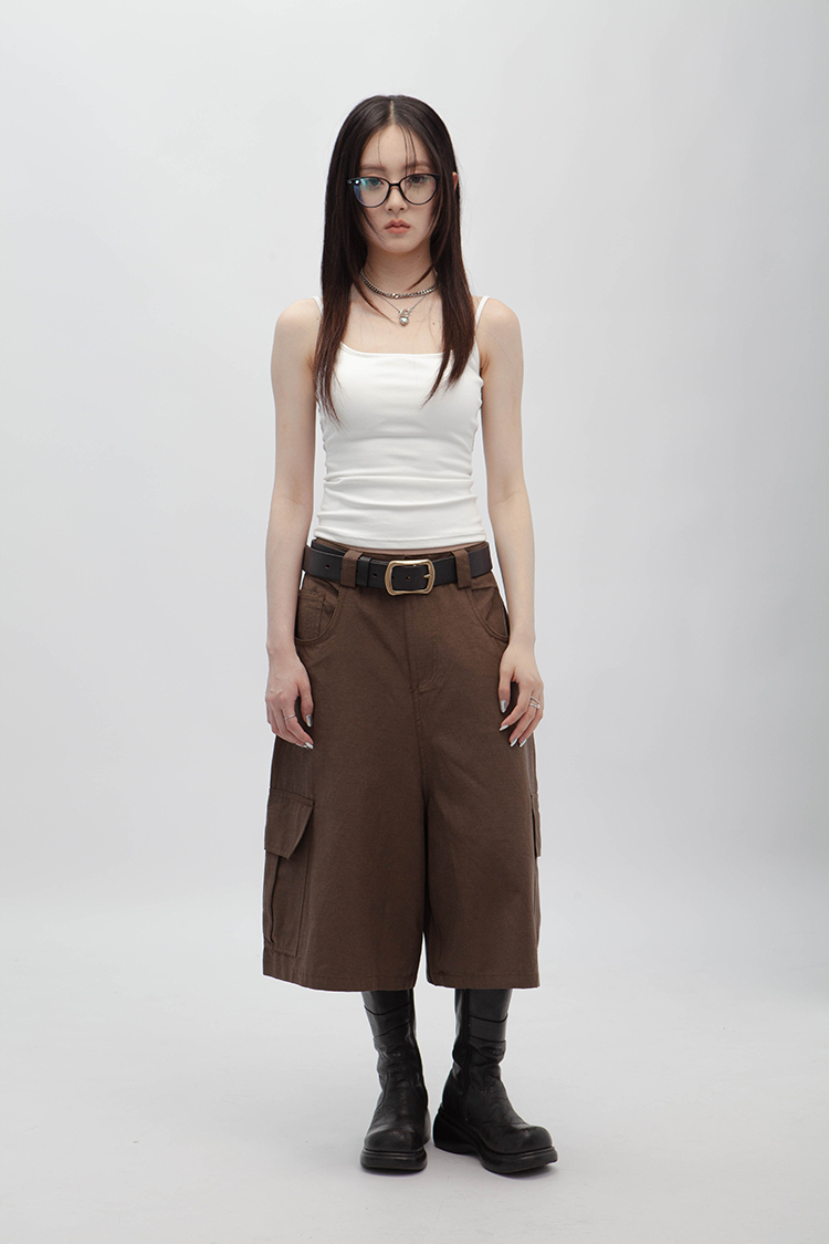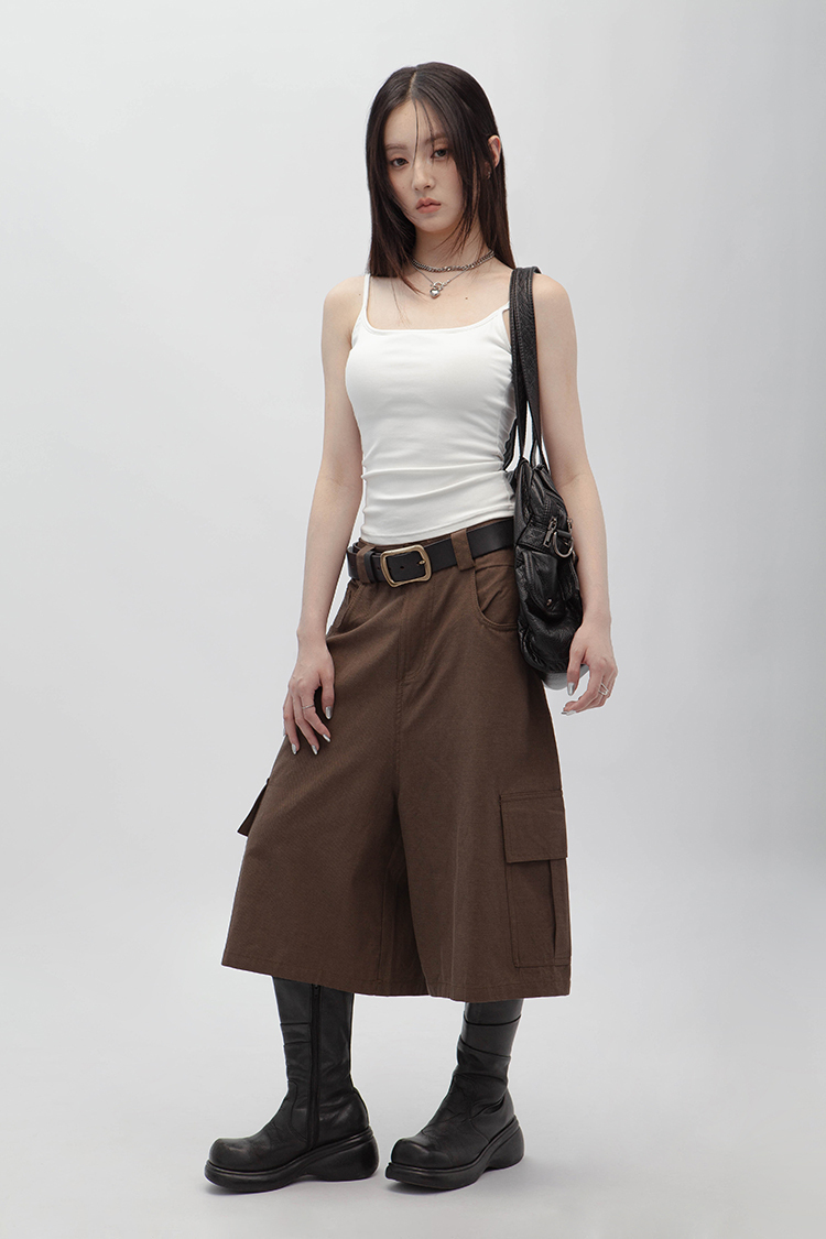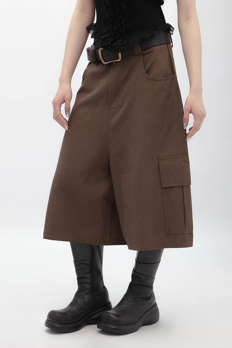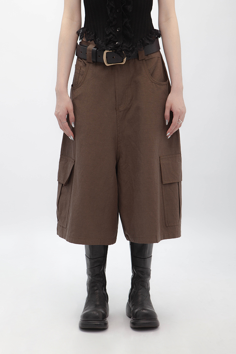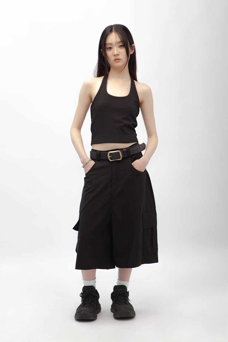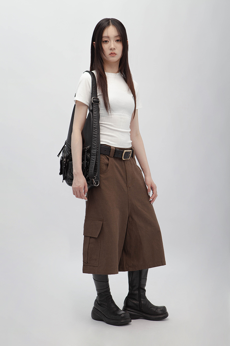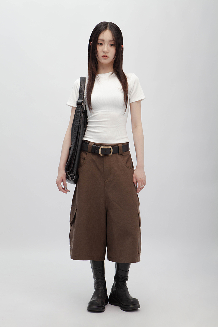 呈現寬鬆立體的褲型,斜紋布材質輕薄有挺度,穿起來不悶熱,兩側大口袋設計,增添機能氛圍與日常便利性。