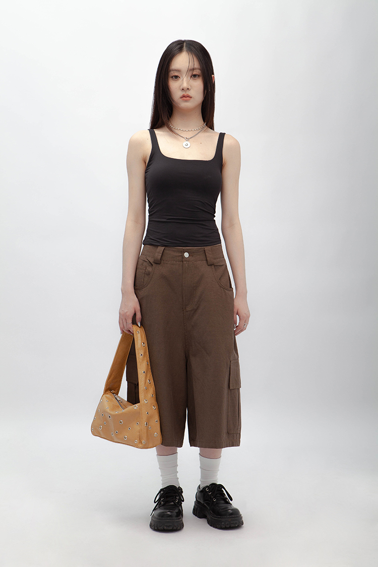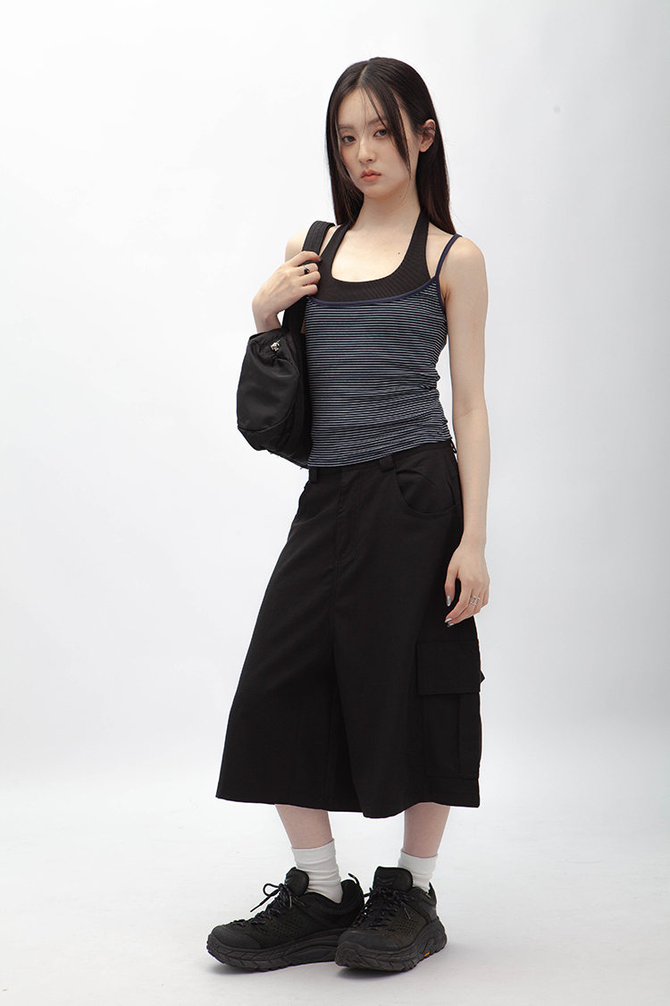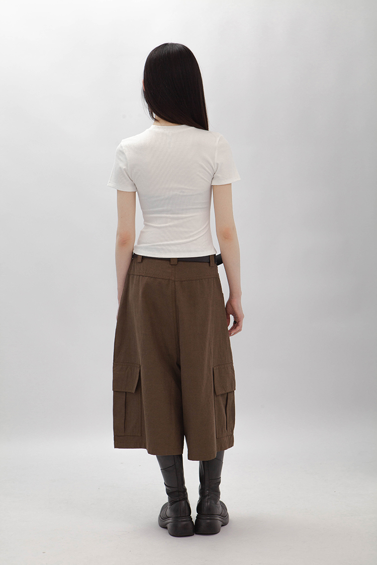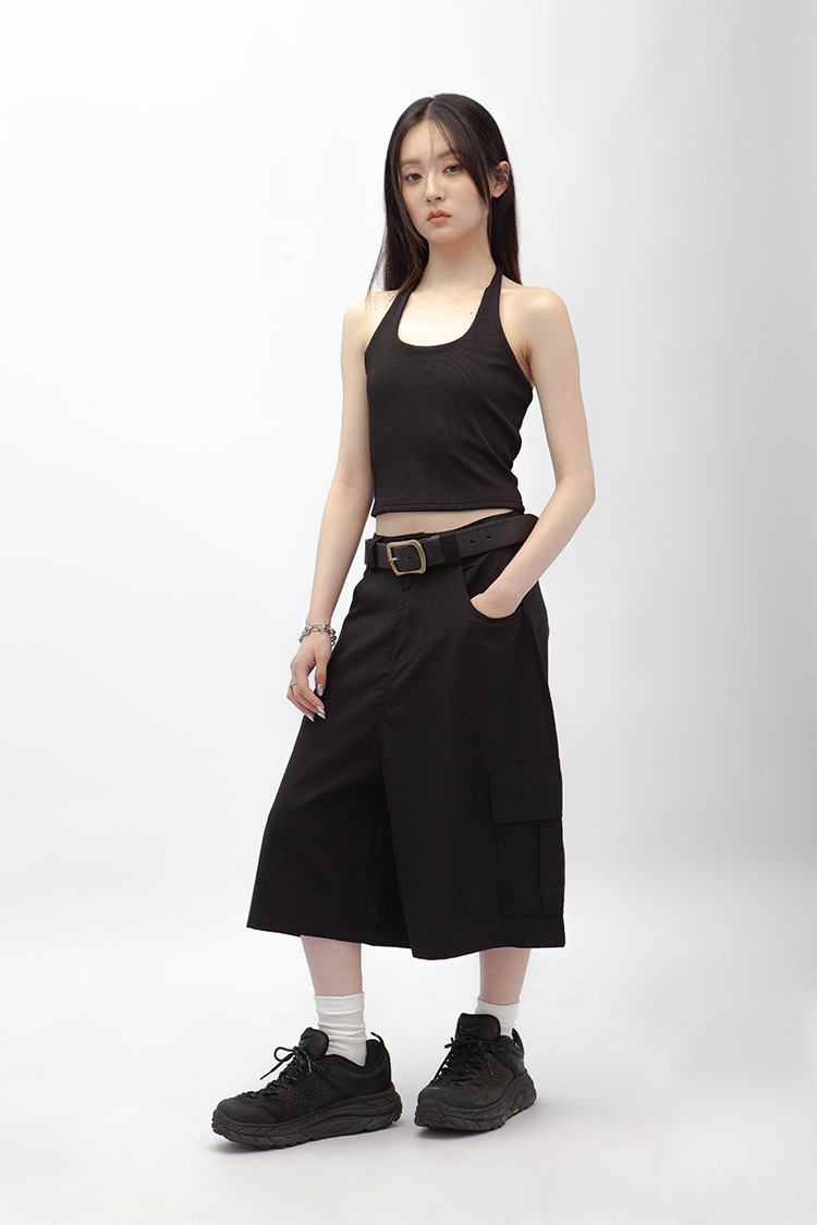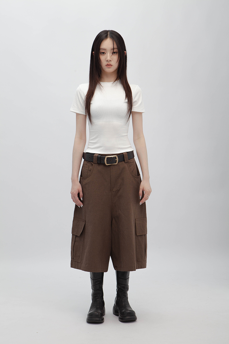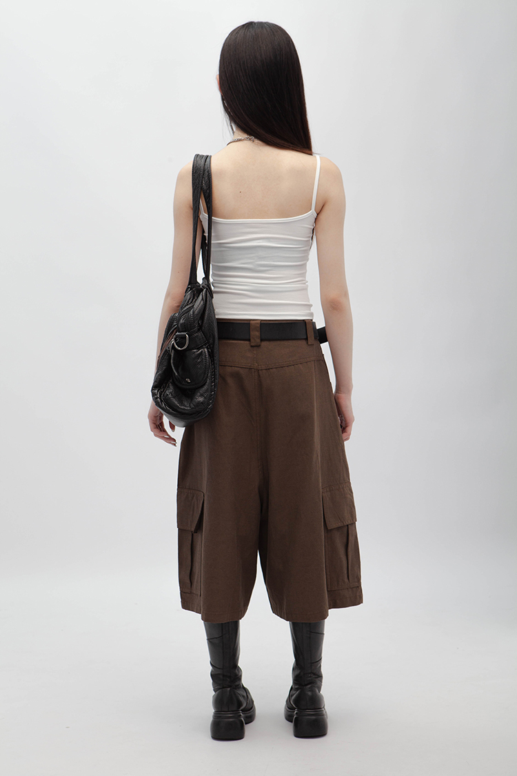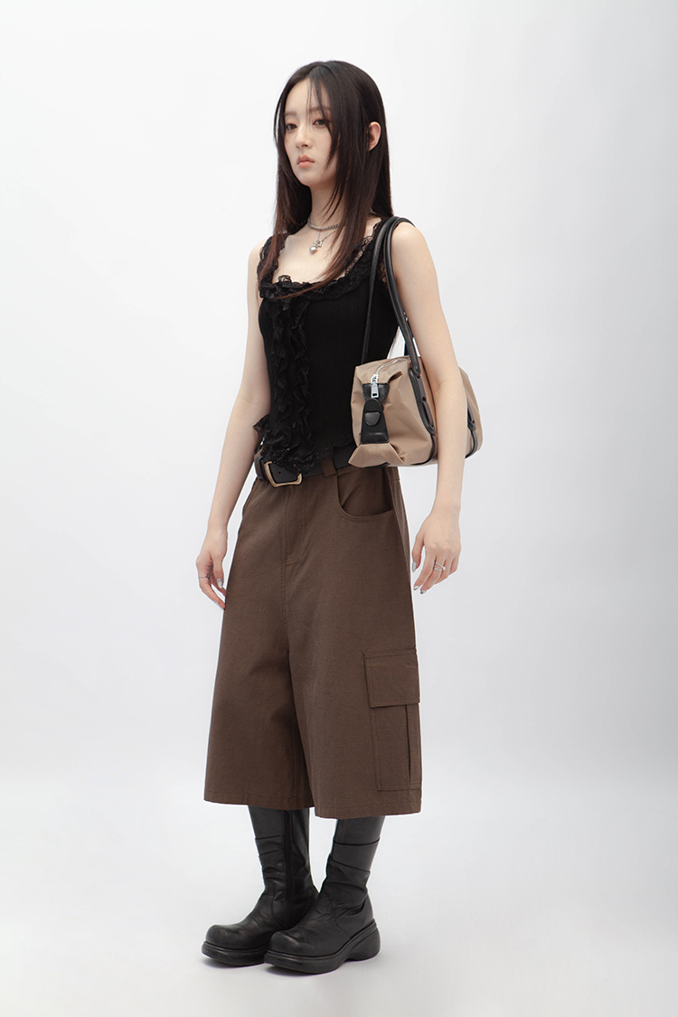 呈現寬鬆立體的褲型,斜紋布材質輕薄有挺度,穿起來不悶熱,兩側大口袋設計,增添機能氛圍與日常便利性。