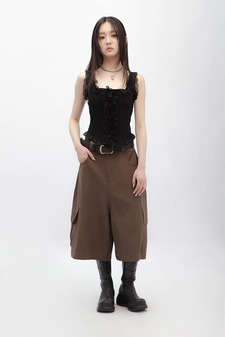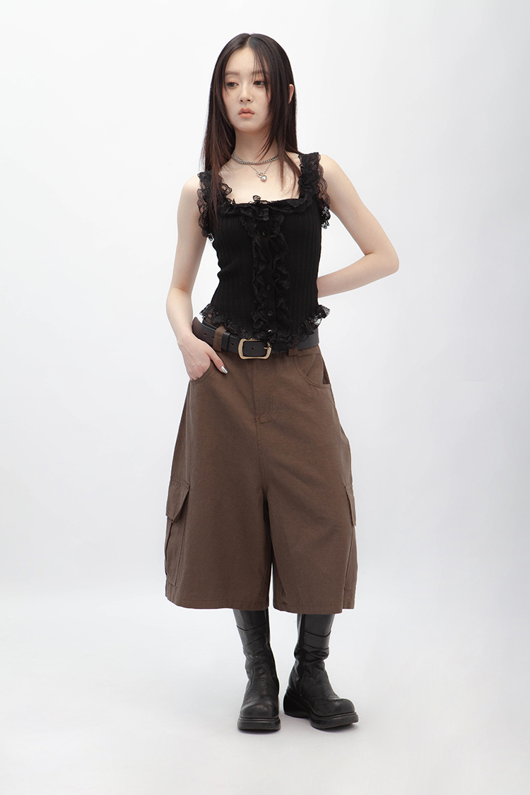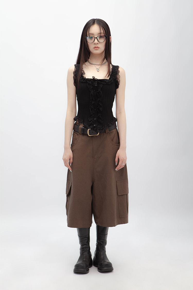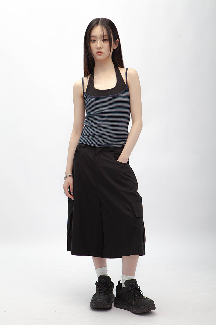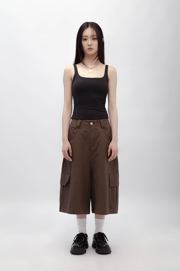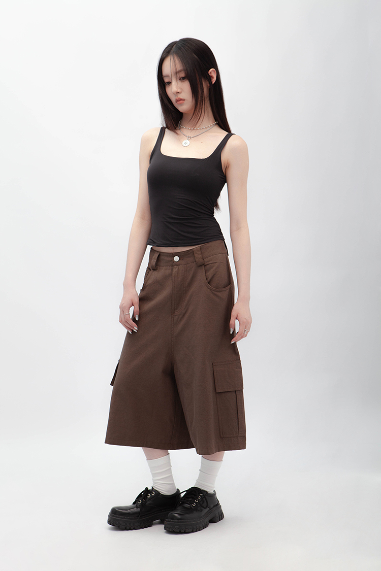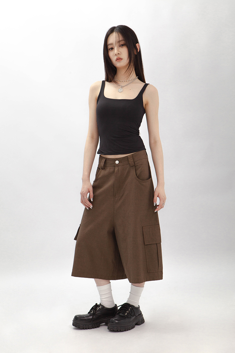 呈現寬鬆立體的褲型,斜紋布材質輕薄有挺度,穿起來不悶熱,兩側大口袋設計,增添機能氛圍與日常便利性。