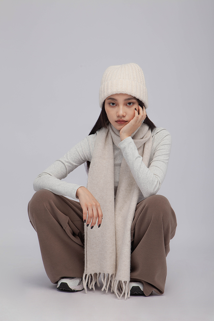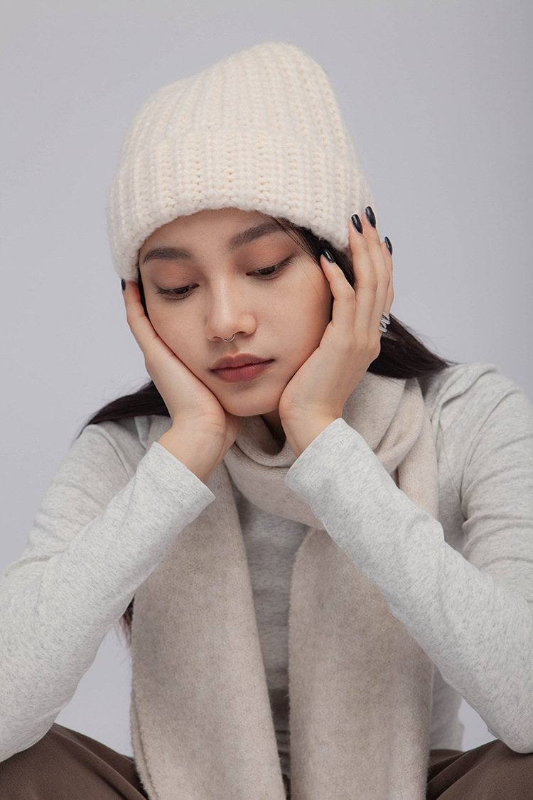 羊毛混紡粗針織帽,反摺帽邊,柔軟羅紋,含有羊毛的成分更進一步提升了保暖性,秋冬必備單品,帽子都能成為時尚造型中的亮點。