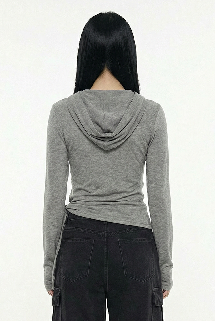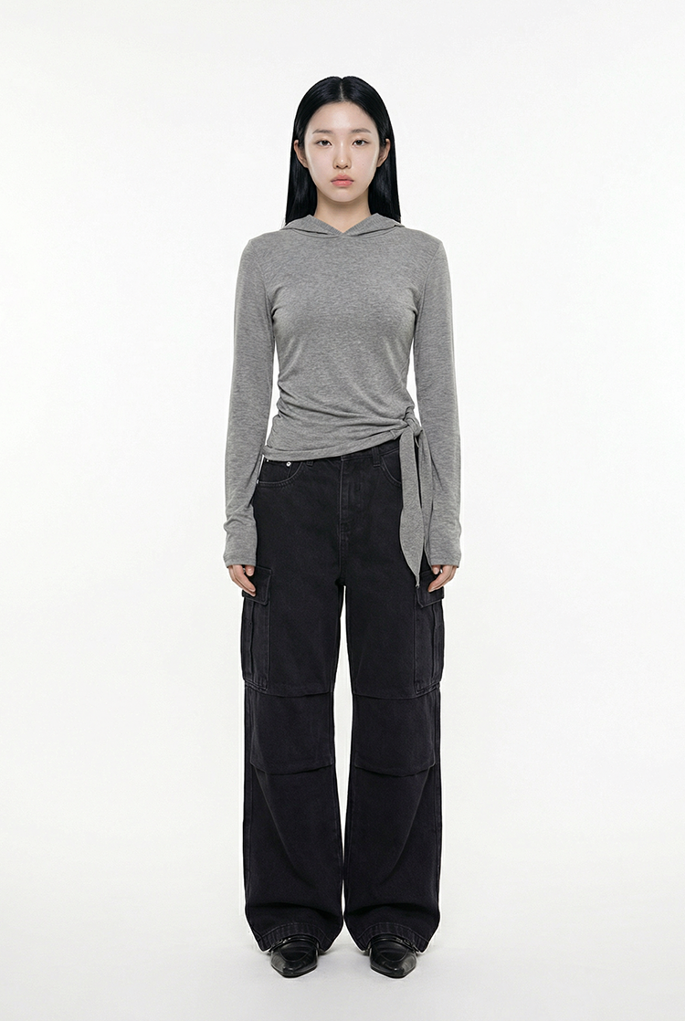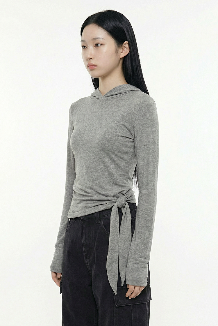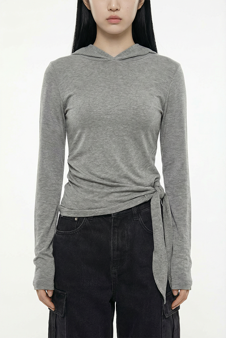 隨性與不規則剪裁的設計感,連帽領口搭配側邊綁帶細節。略微合身,中長版廓形,無論單穿或疊搭都能透出強烈的時髦個性。