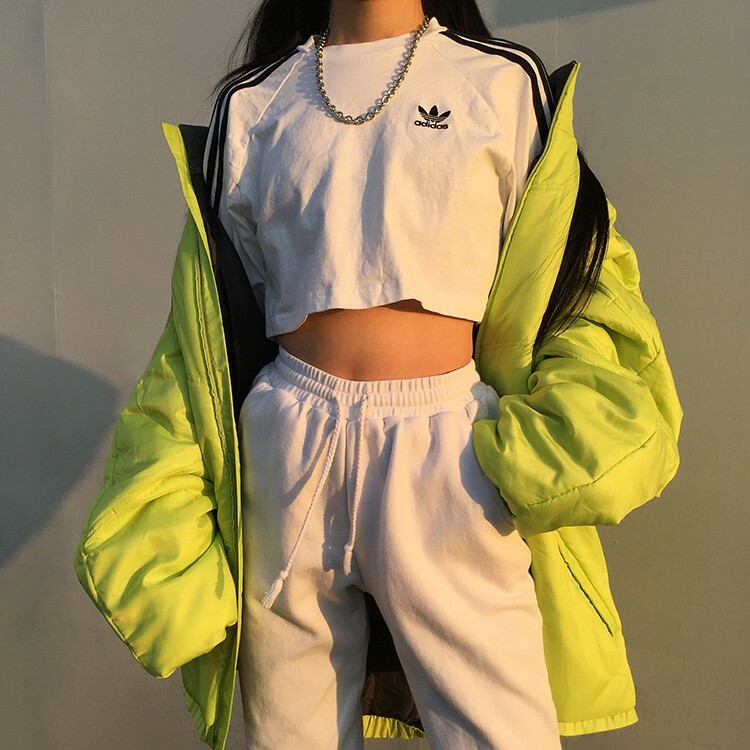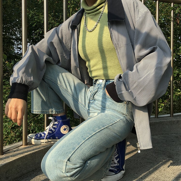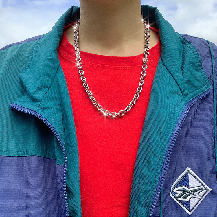 金屬勾環,加長單釦式小鏈條,與素面上衣一起搭配提升造型重點。