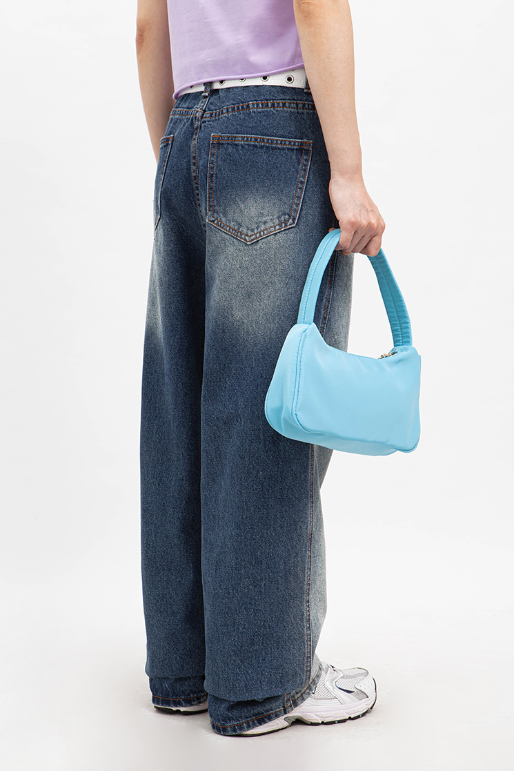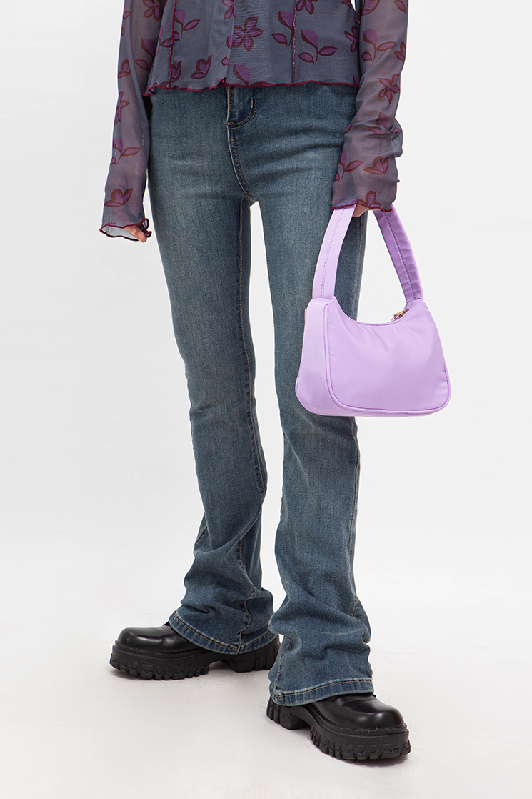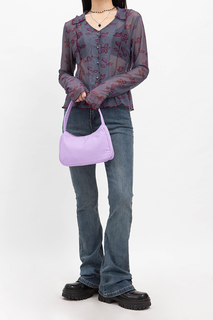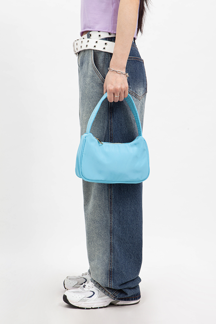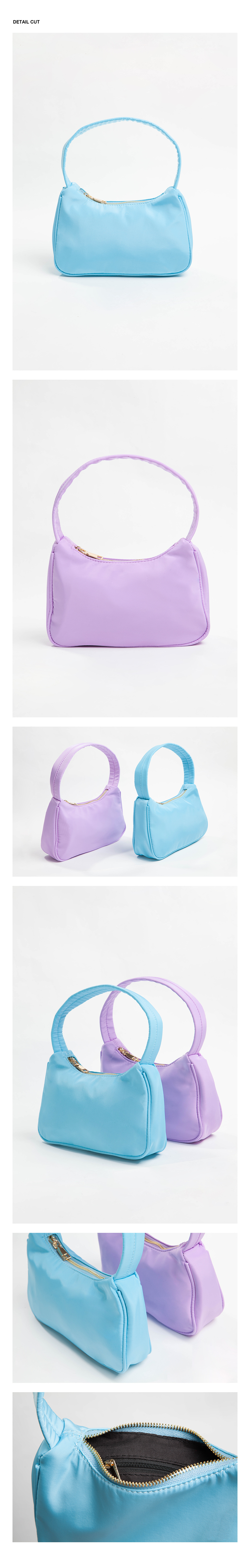 尼龍手提包,金色拉頭配同色系拉鍊,內部一拉鍊夾層ㄧ個卡袋,不可調節,小巧容量。