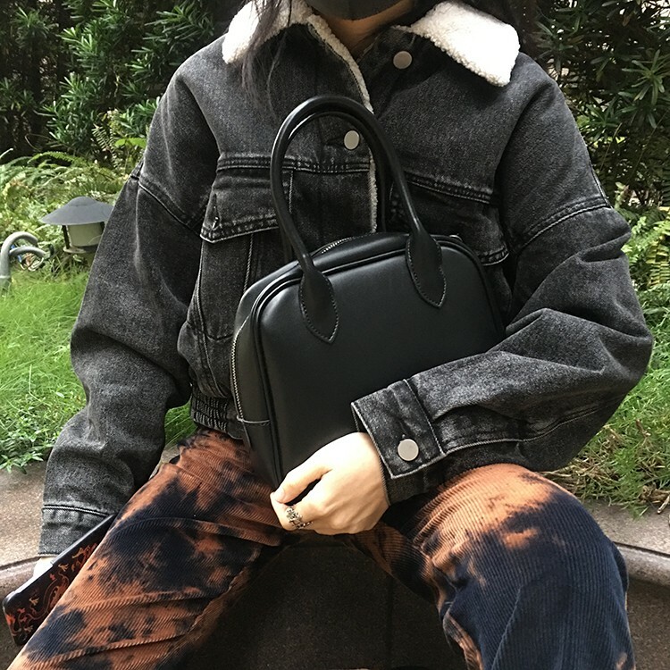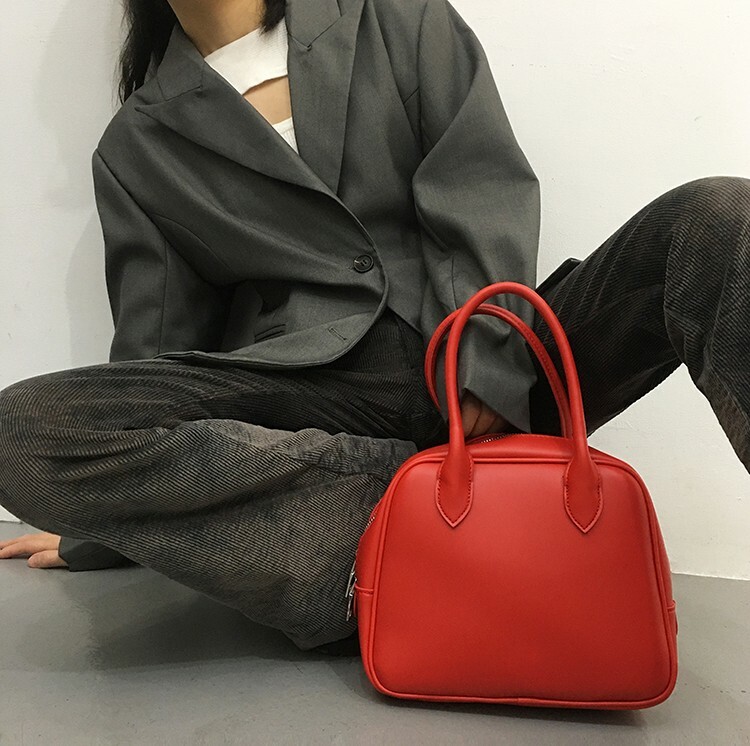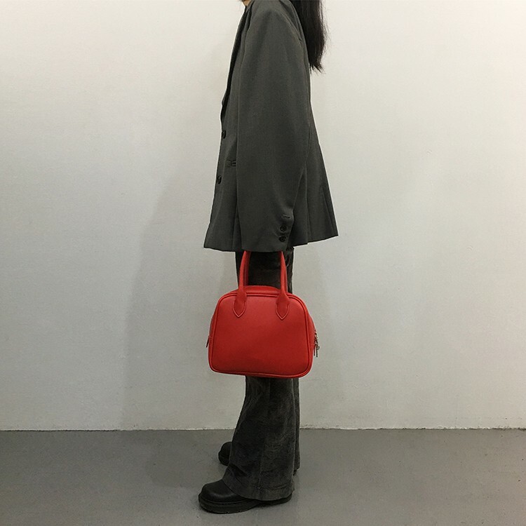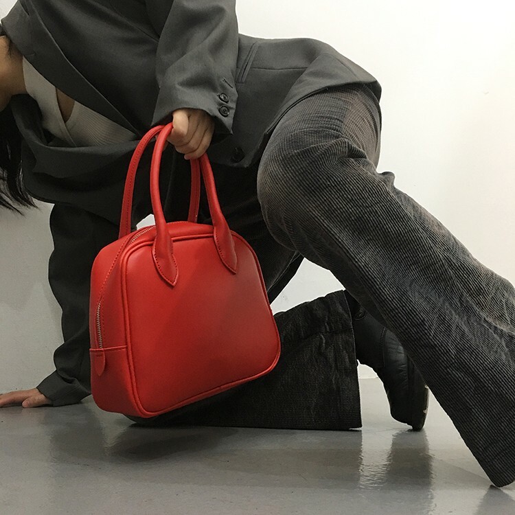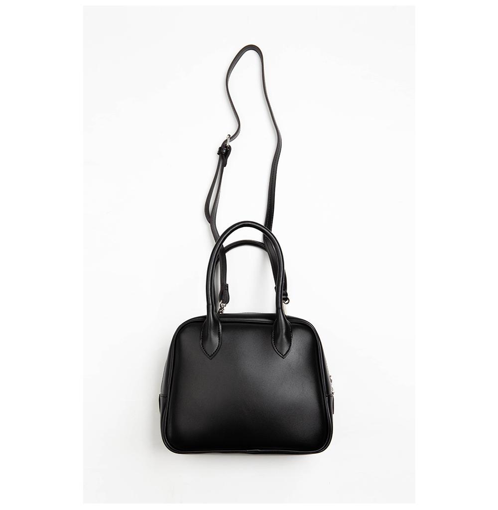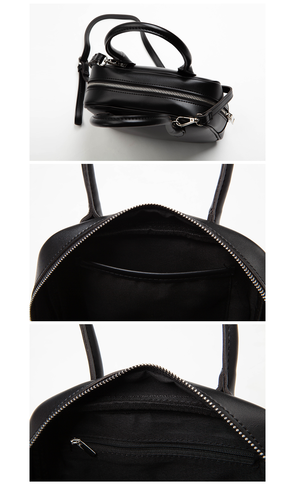 外型呈現正方形輪廓,雙提手與雙銀色開口拉鍊,內部有一個隱藏拉鍊袋與一個夾層,包底長方形,隨時保持硬挺,附可調節背帶,方便繫帶又實用。