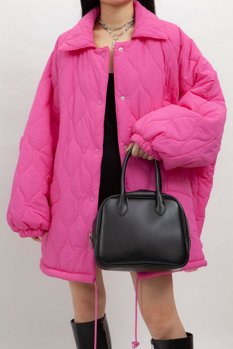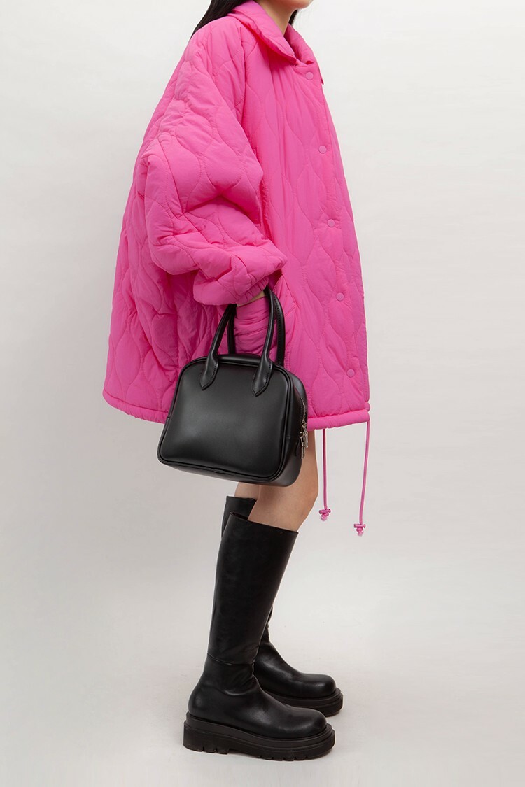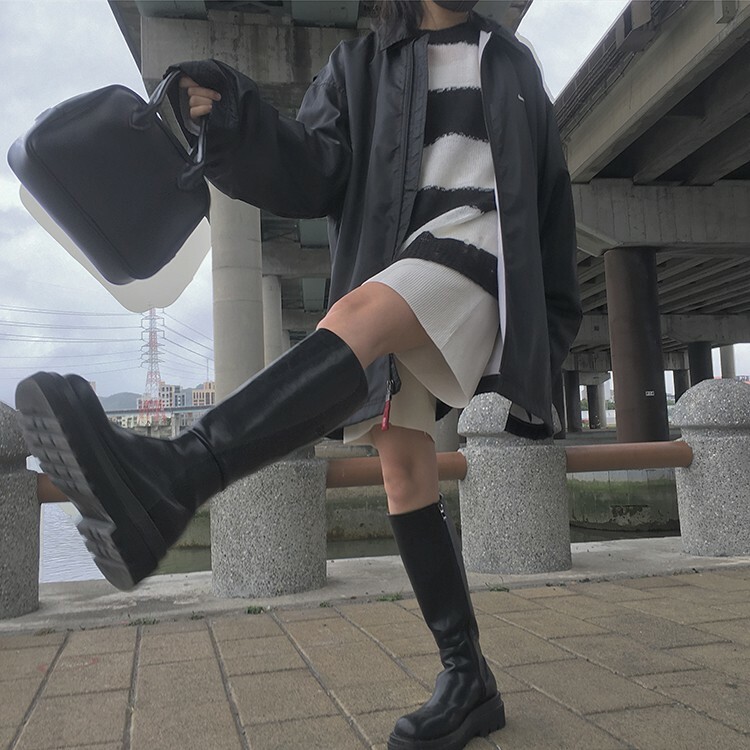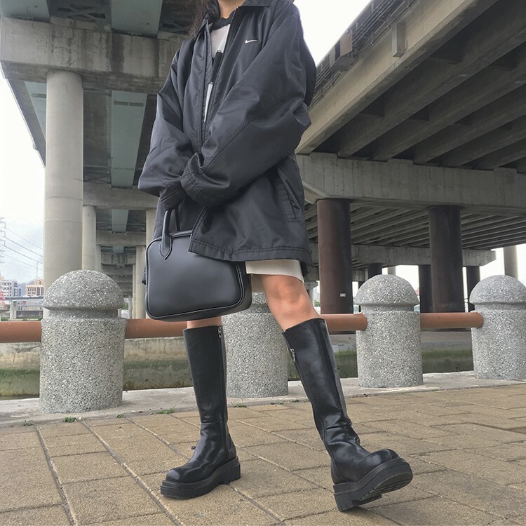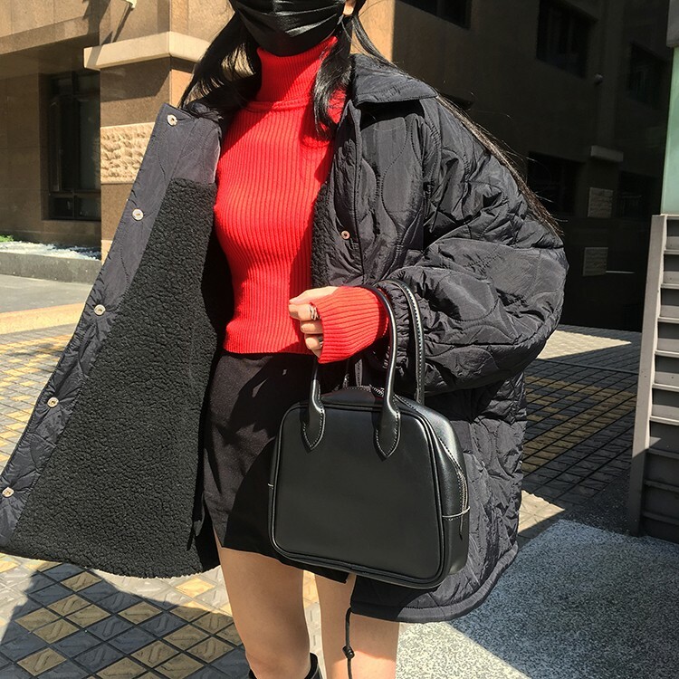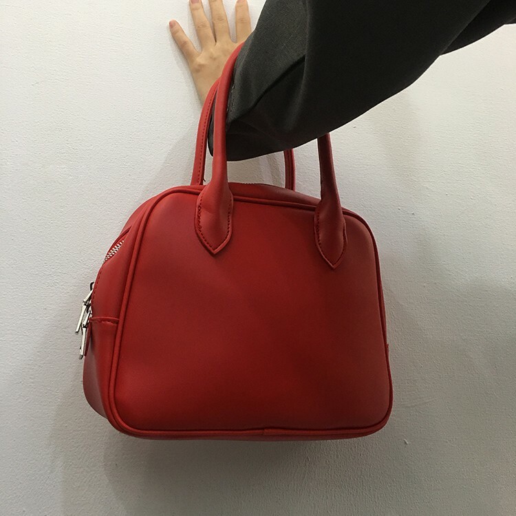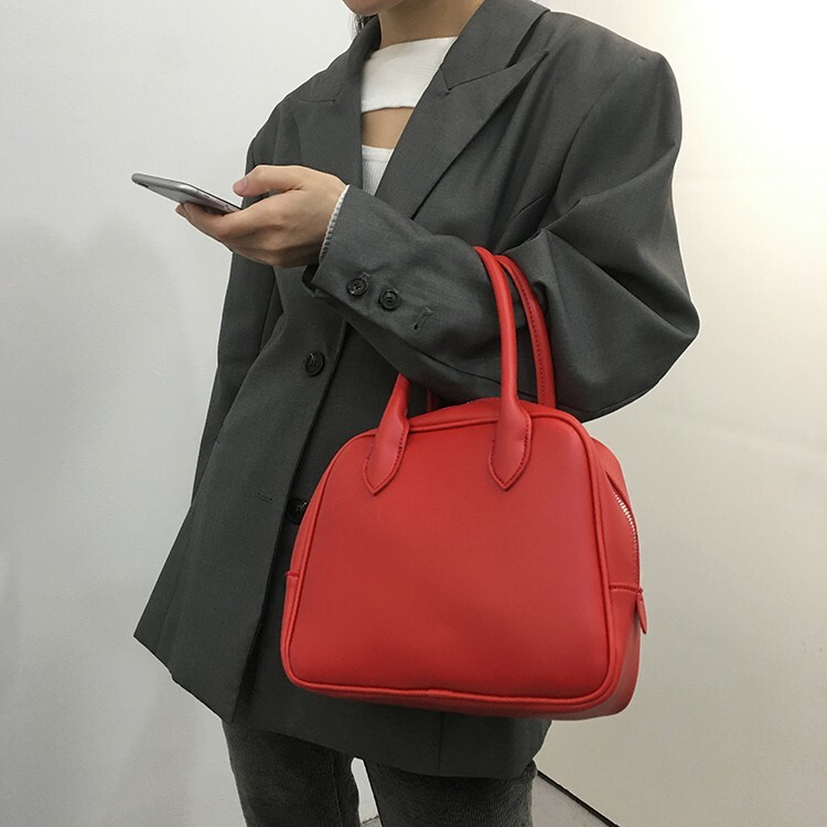 外型呈現正方形輪廓,雙提手與雙銀色開口拉鍊,內部有一個隱藏拉鍊袋與一個夾層,包底長方形,隨時保持硬挺,附可調節背帶,方便繫帶又實用。