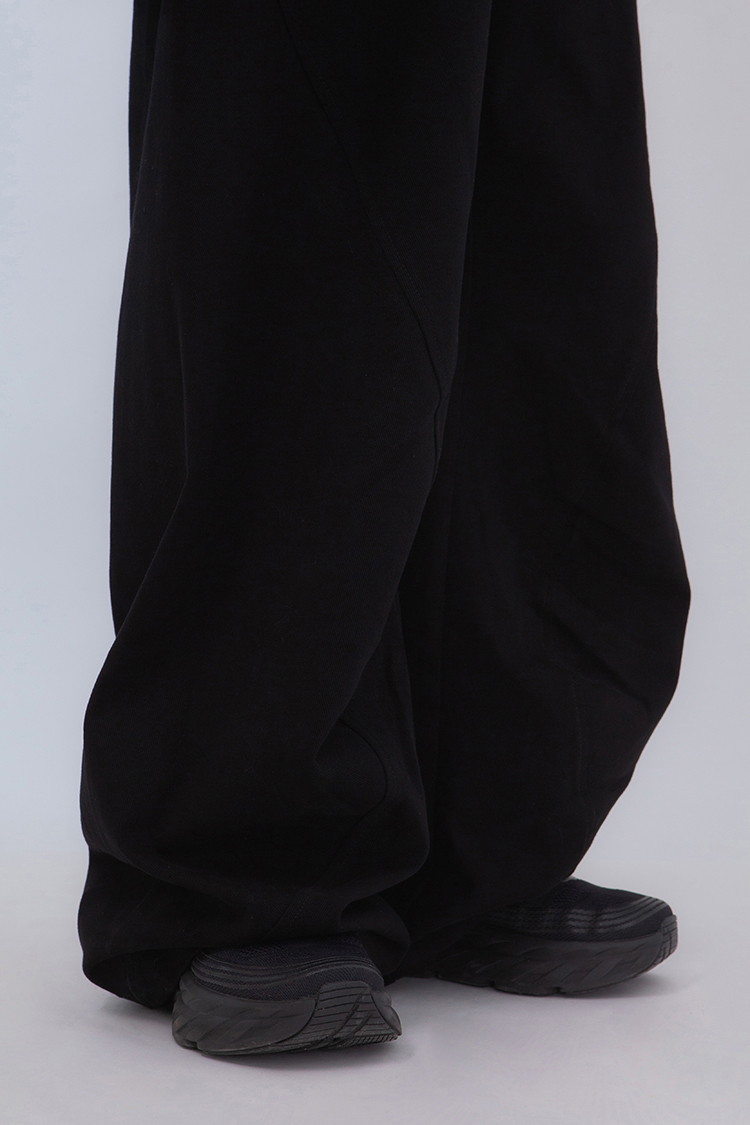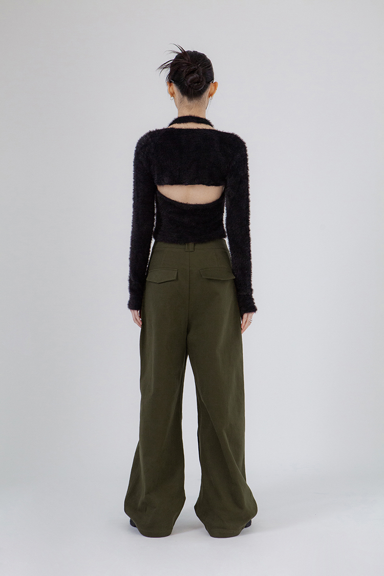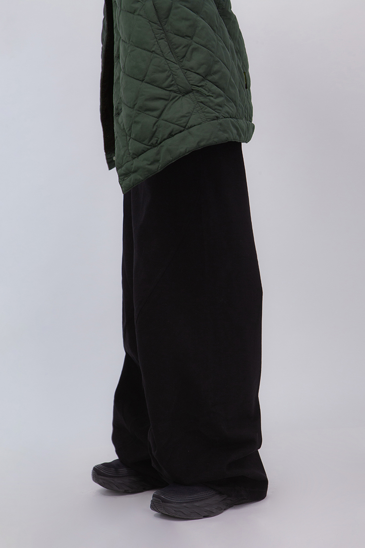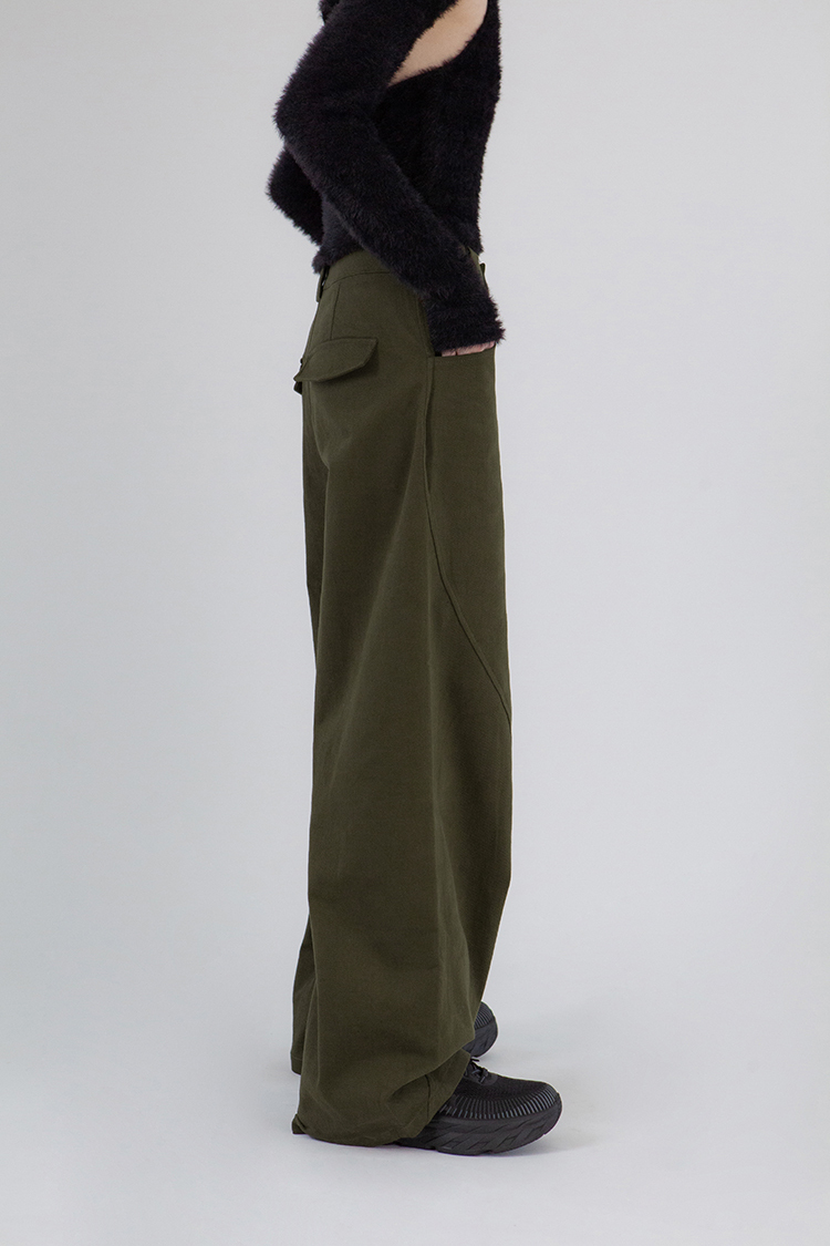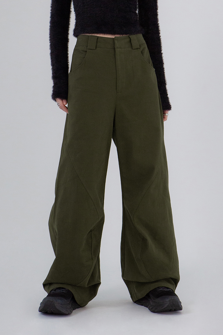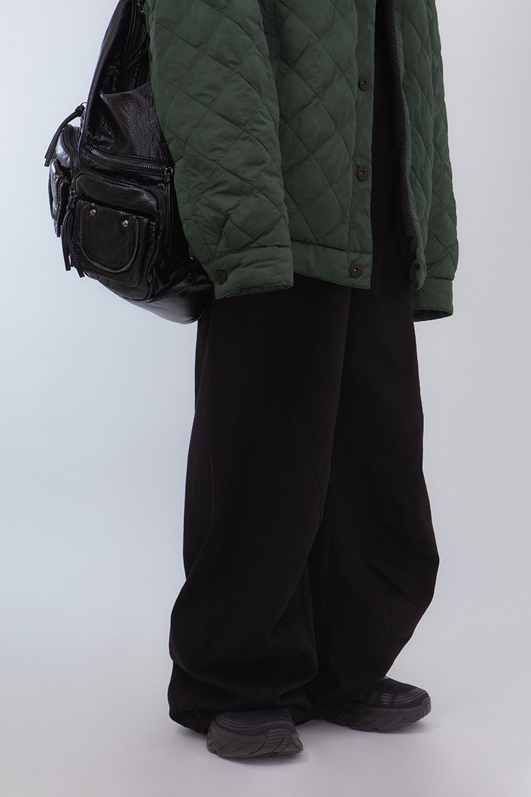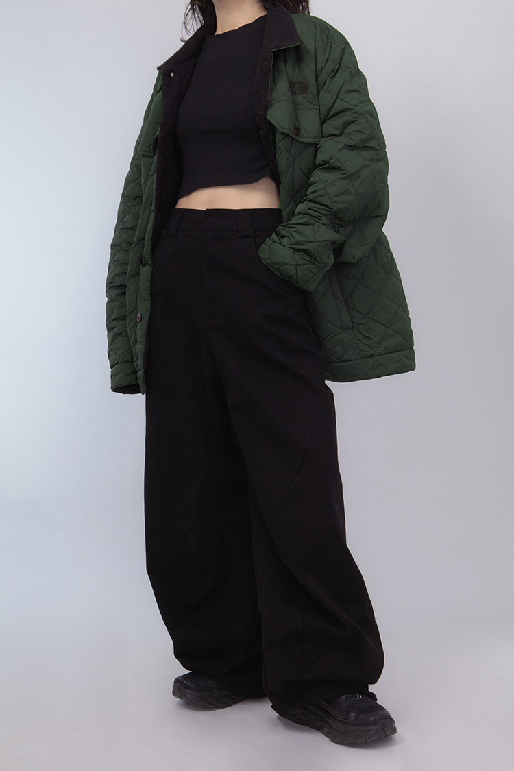 中腰,弧形側邊縫線拼接設計,拉鍊門襟配隱形鉤扣,兩側口袋,寬管休閒褲,斜紋布料,中等厚度,柔軟短絨毛表面,親膚溫暖,最百搭的必備單品之一。