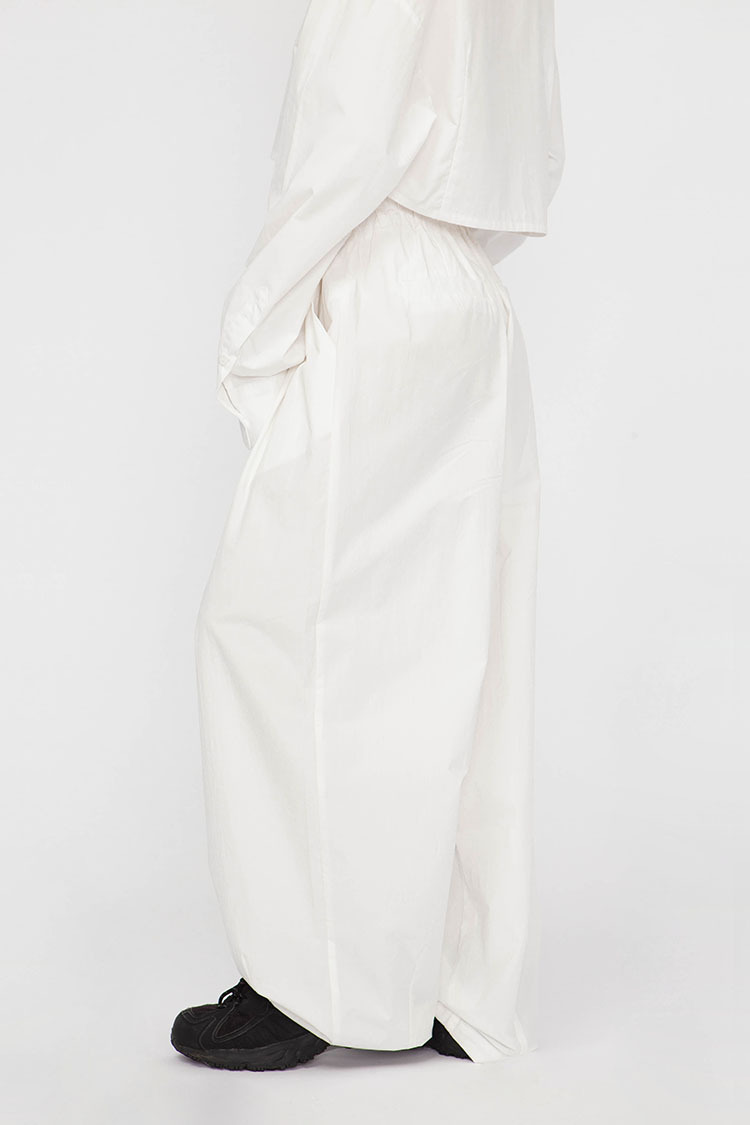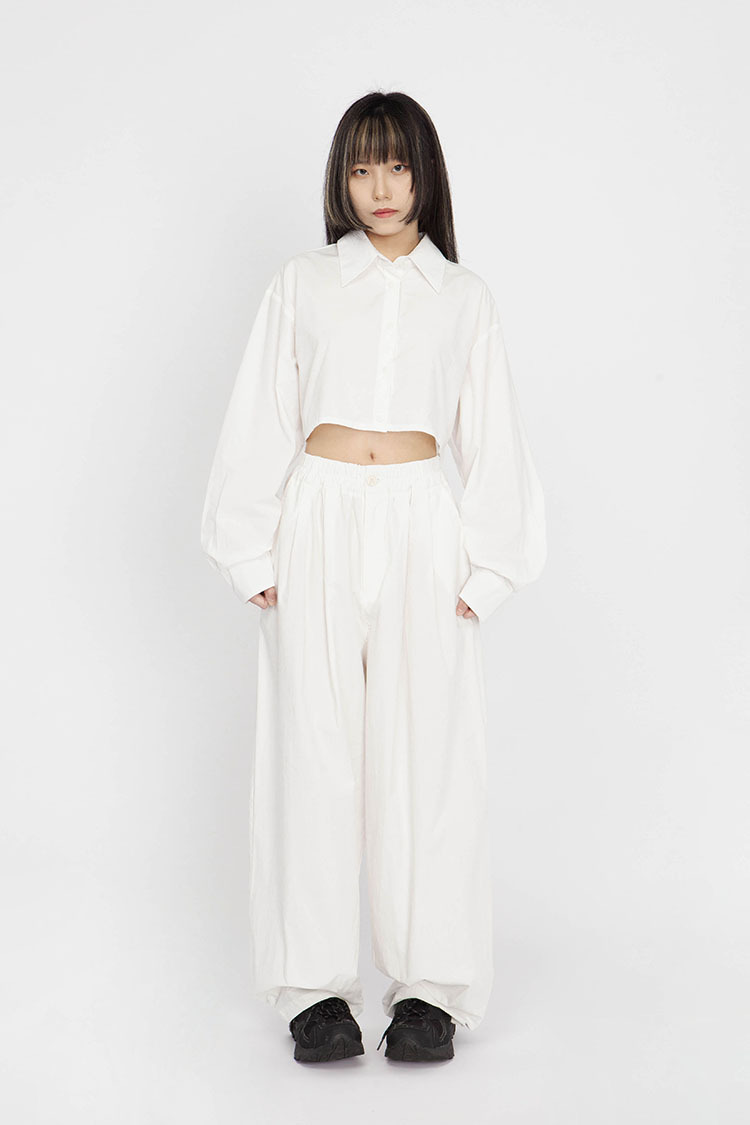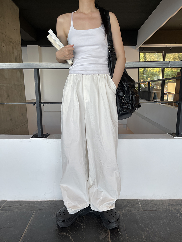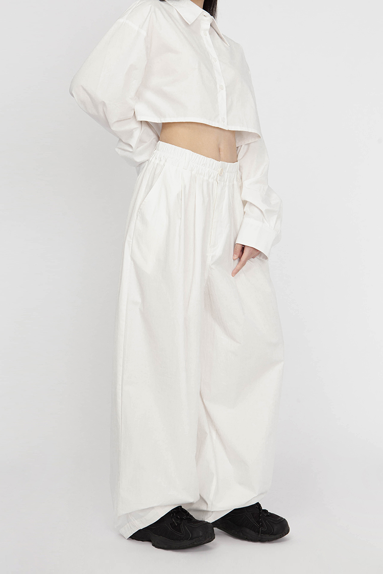 此款闊腿長褲採用全棉材質,非常適合炎熱的夏季,觸感舒適,微透,鬆緊褲頭,鈕釦拉鍊閉合,上部有抓褶設計,兩側斜插袋,褲口縮摺細節,背面裝飾口袋,乾淨女孩必備。