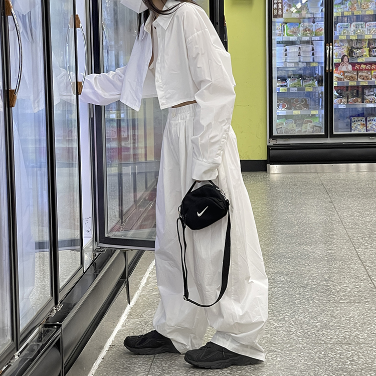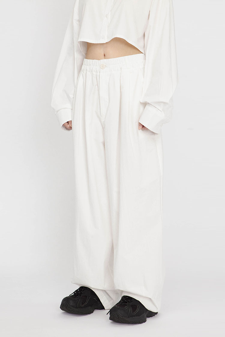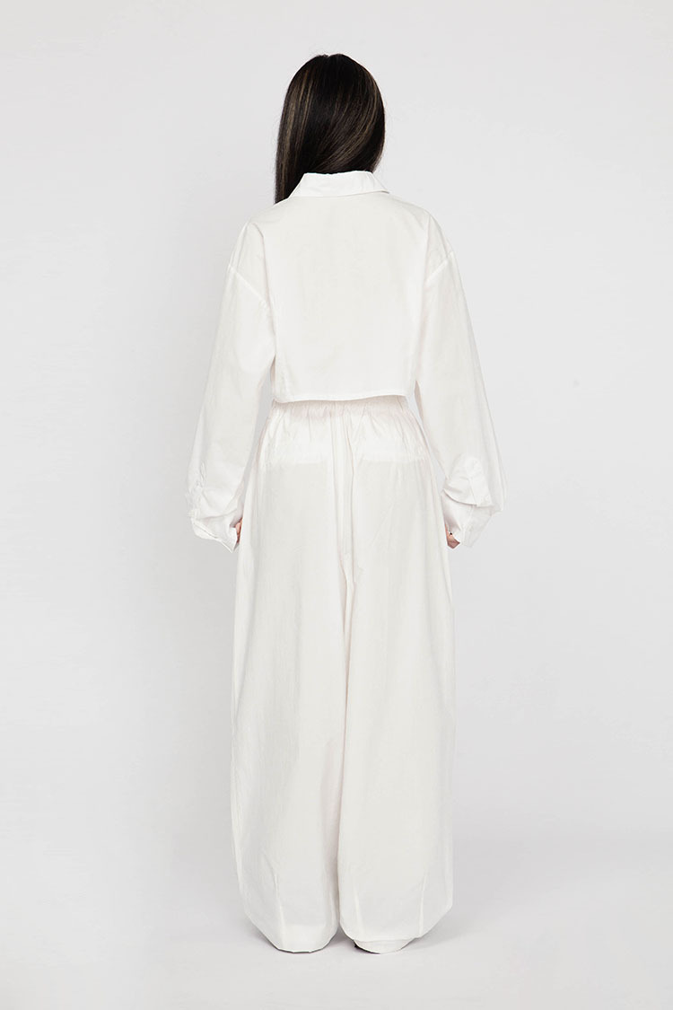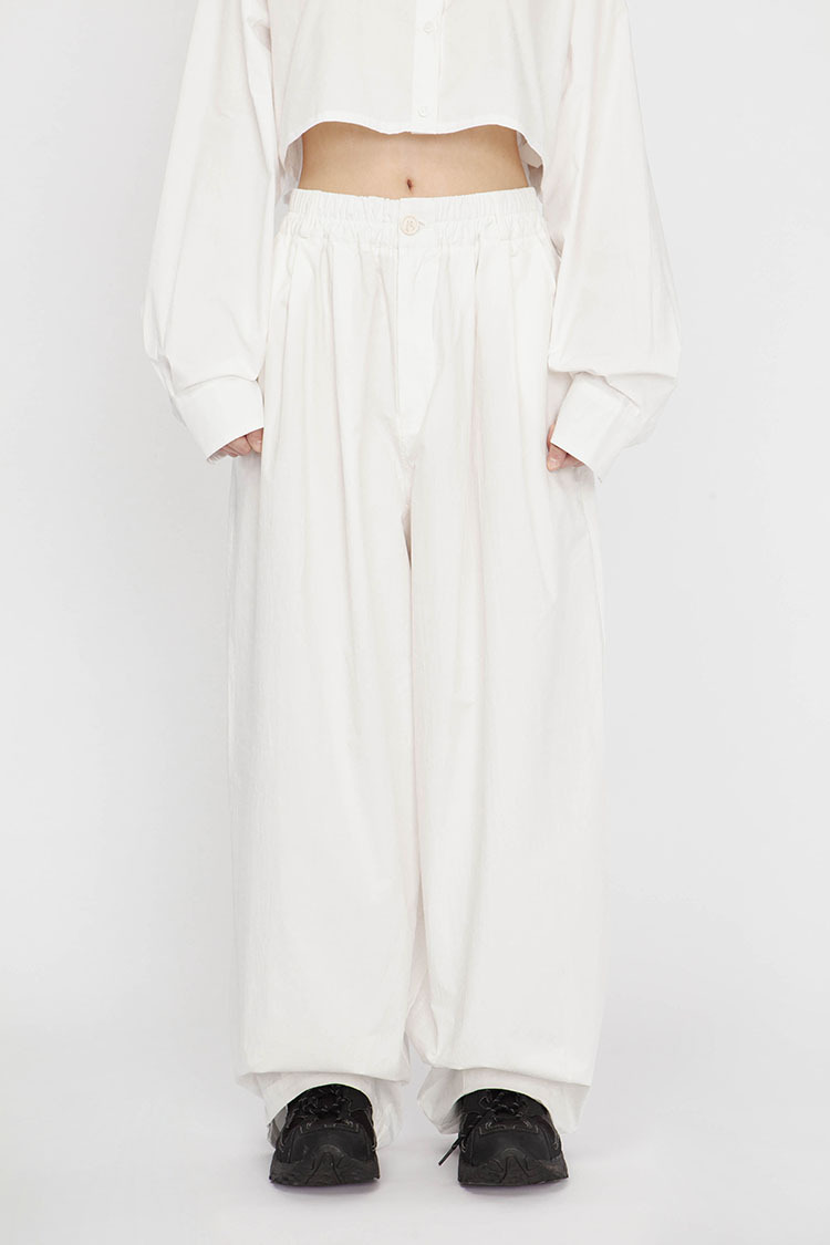 此款闊腿長褲採用全棉材質,非常適合炎熱的夏季,觸感舒適,微透,鬆緊褲頭,鈕釦拉鍊閉合,上部有抓褶設計,兩側斜插袋,褲口縮摺細節,背面裝飾口袋,乾淨女孩必備。