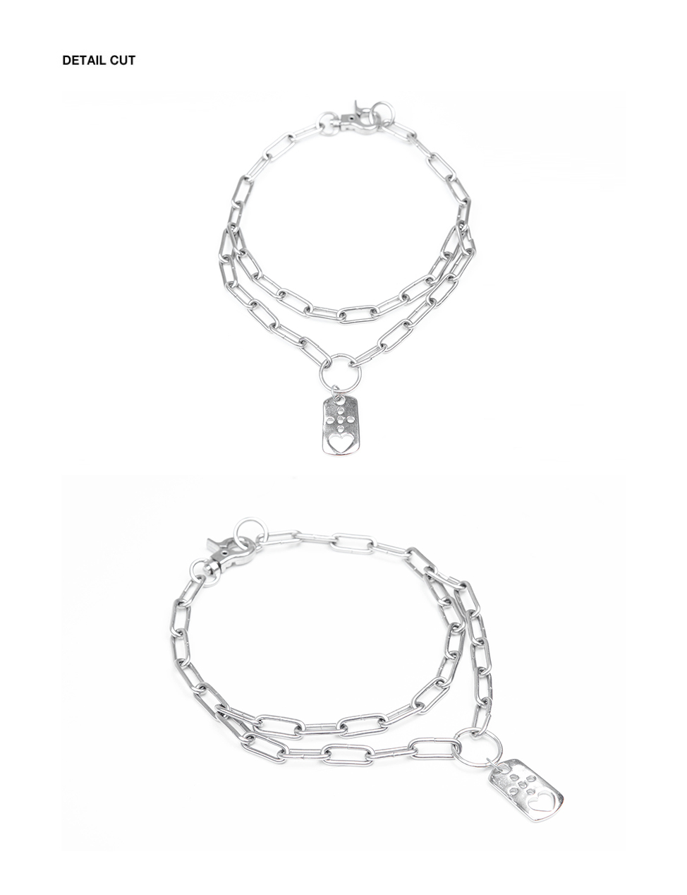 採用不鏽鋼雙鏈條組合,增加層次,中間飾有鏤空心型盾牌。